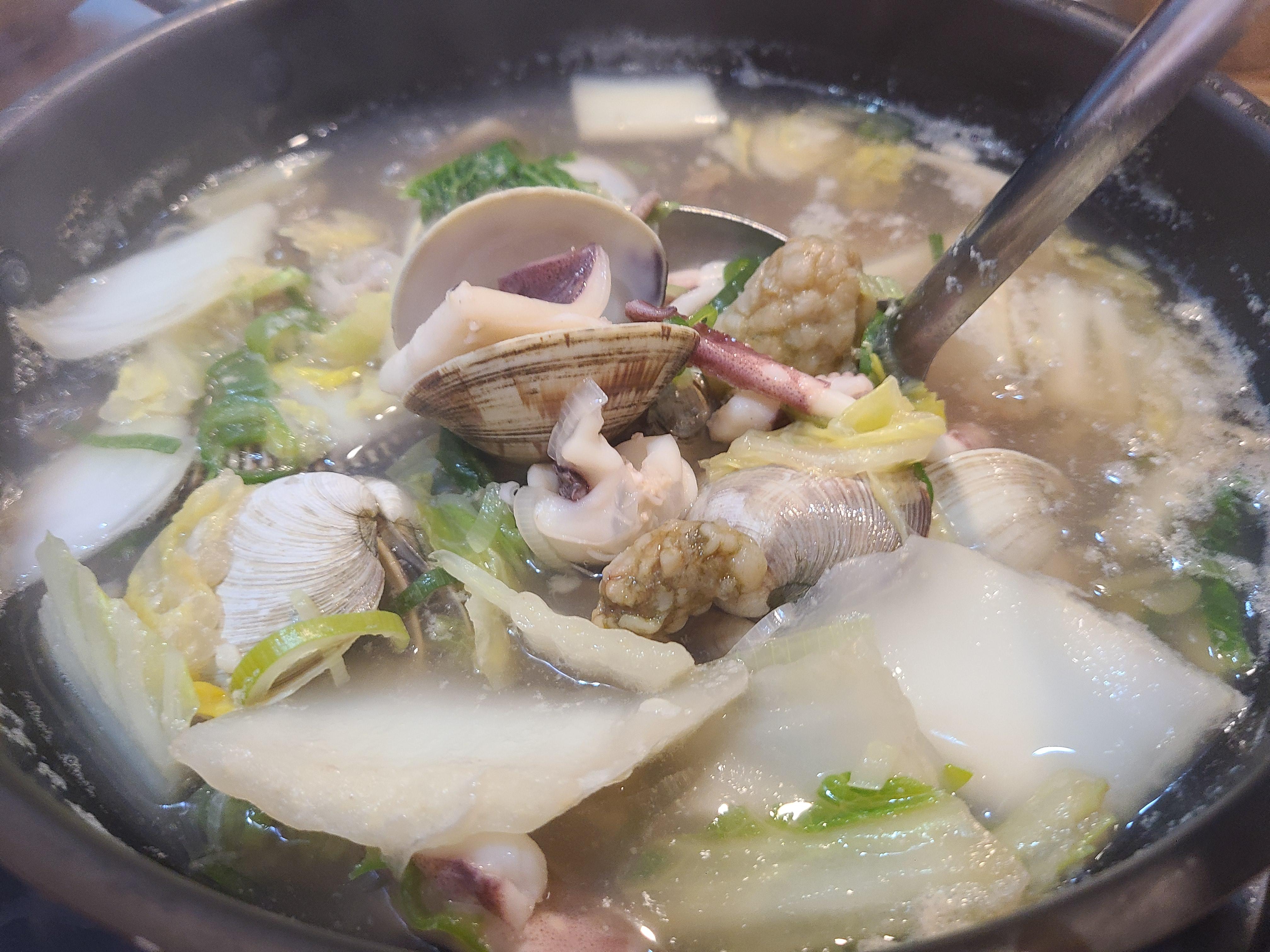 야채와 버섯 해산물이 듬뿍 들어가 있기에 국물은 당연히 시원하고 맛이 있다.