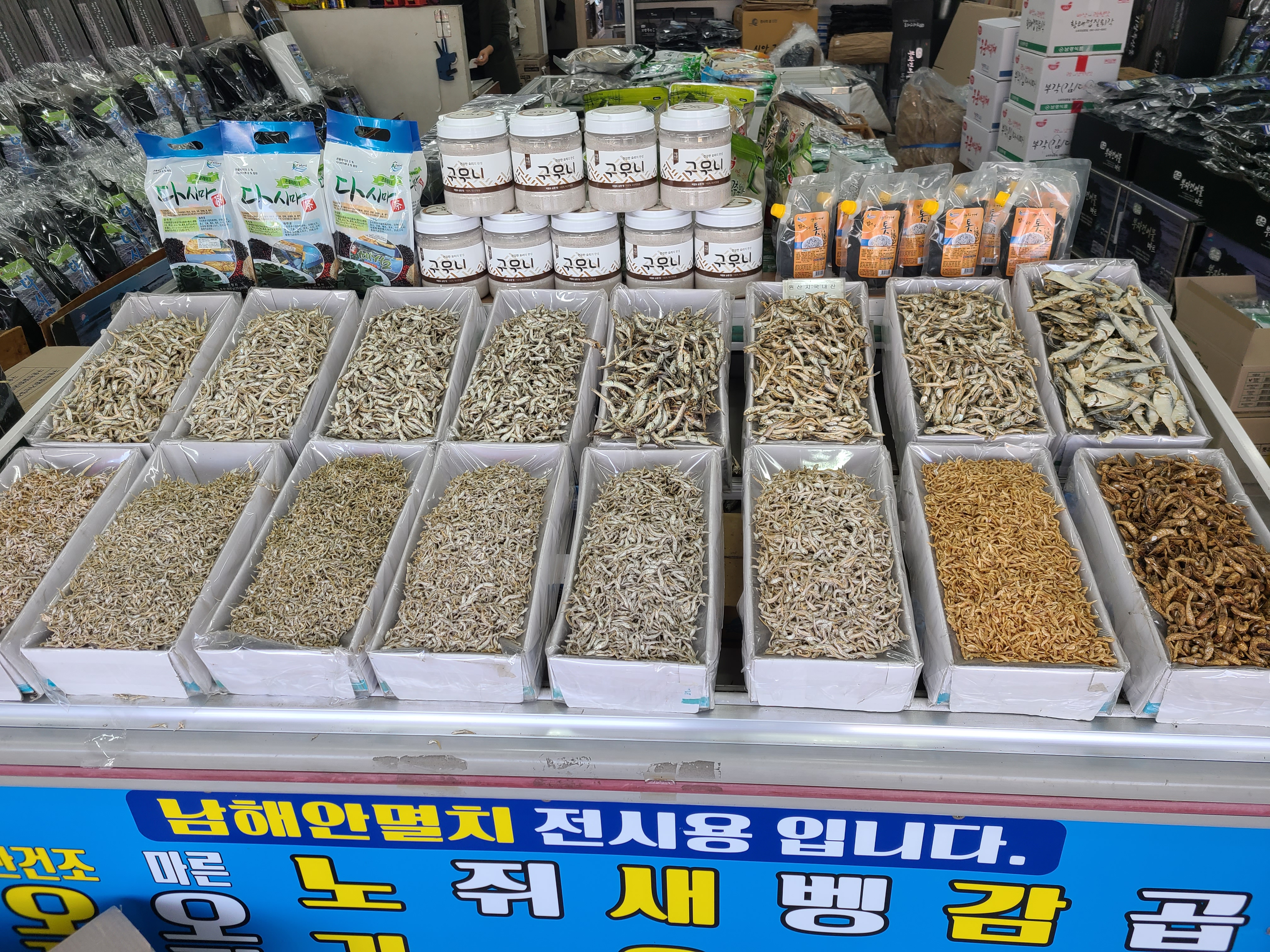 멸치를 구입한 후 건어물 가게에서 기장 미역과 국물용 멸치를 한 박스 구입했다.