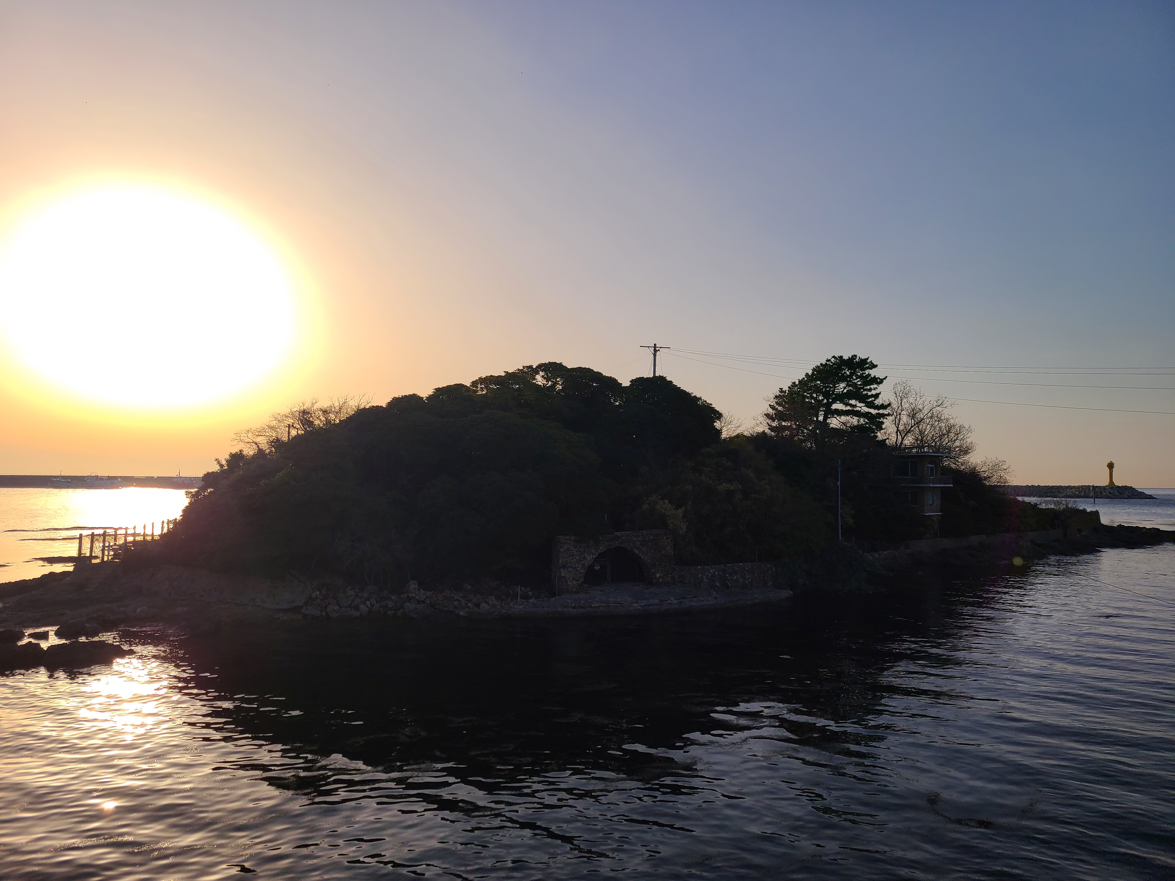 기장의 8경 중 2 경이라는 죽도는 대나무가 많아 죽도로 불렸지만 현재는 동백나무가 울창하게 자라 동백섬이라고도 불린다고 하는데 건널 수가 없어 맞은편에서 바라만 보았다.