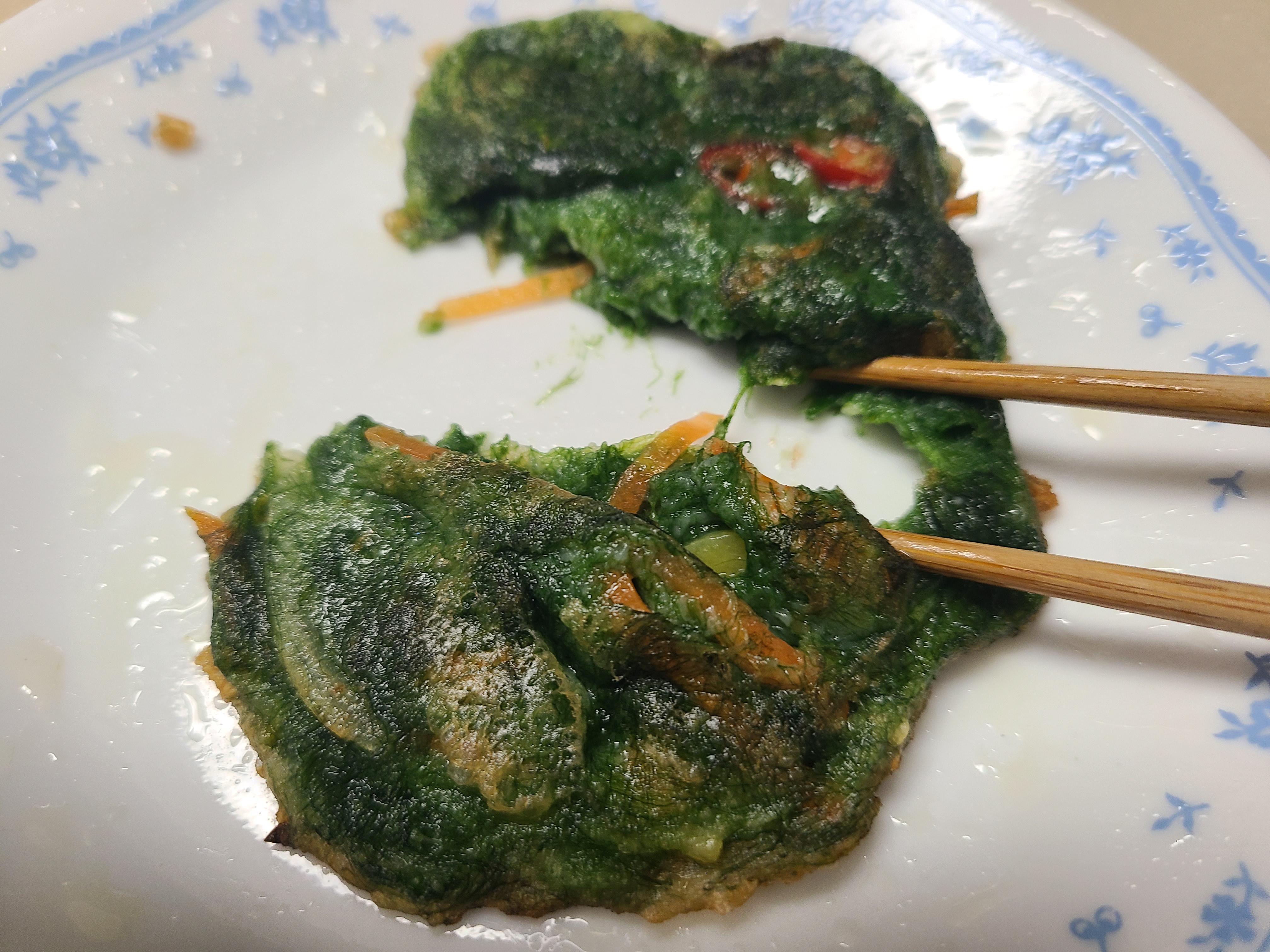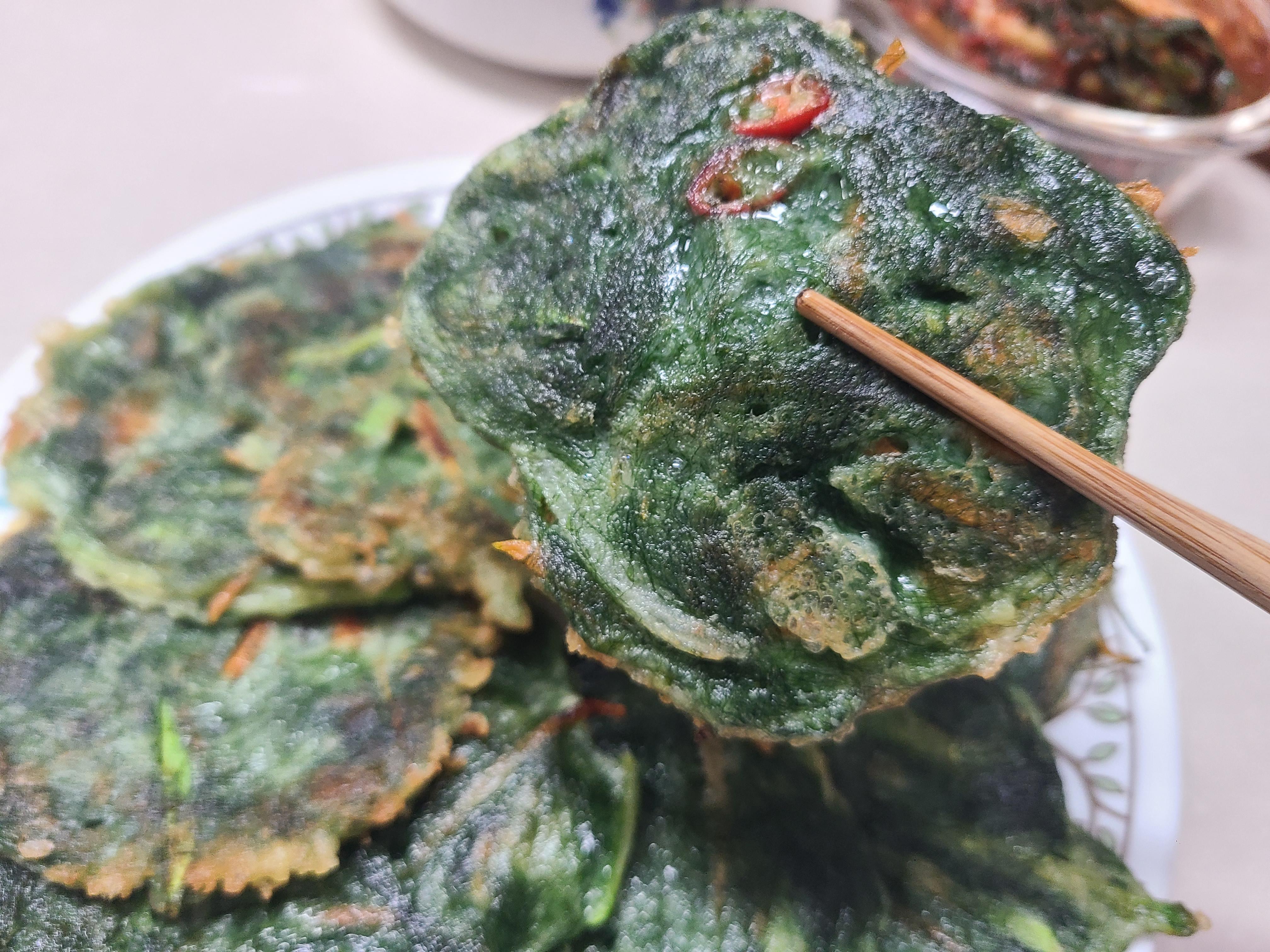매생이를 듬뿍 넣어서 전을 부치니 바다향이 나는 듯하다. 마른 새우가 씹히니 식감이 살아 있는 듯해 좋은데 남편은 싫다고 한다.