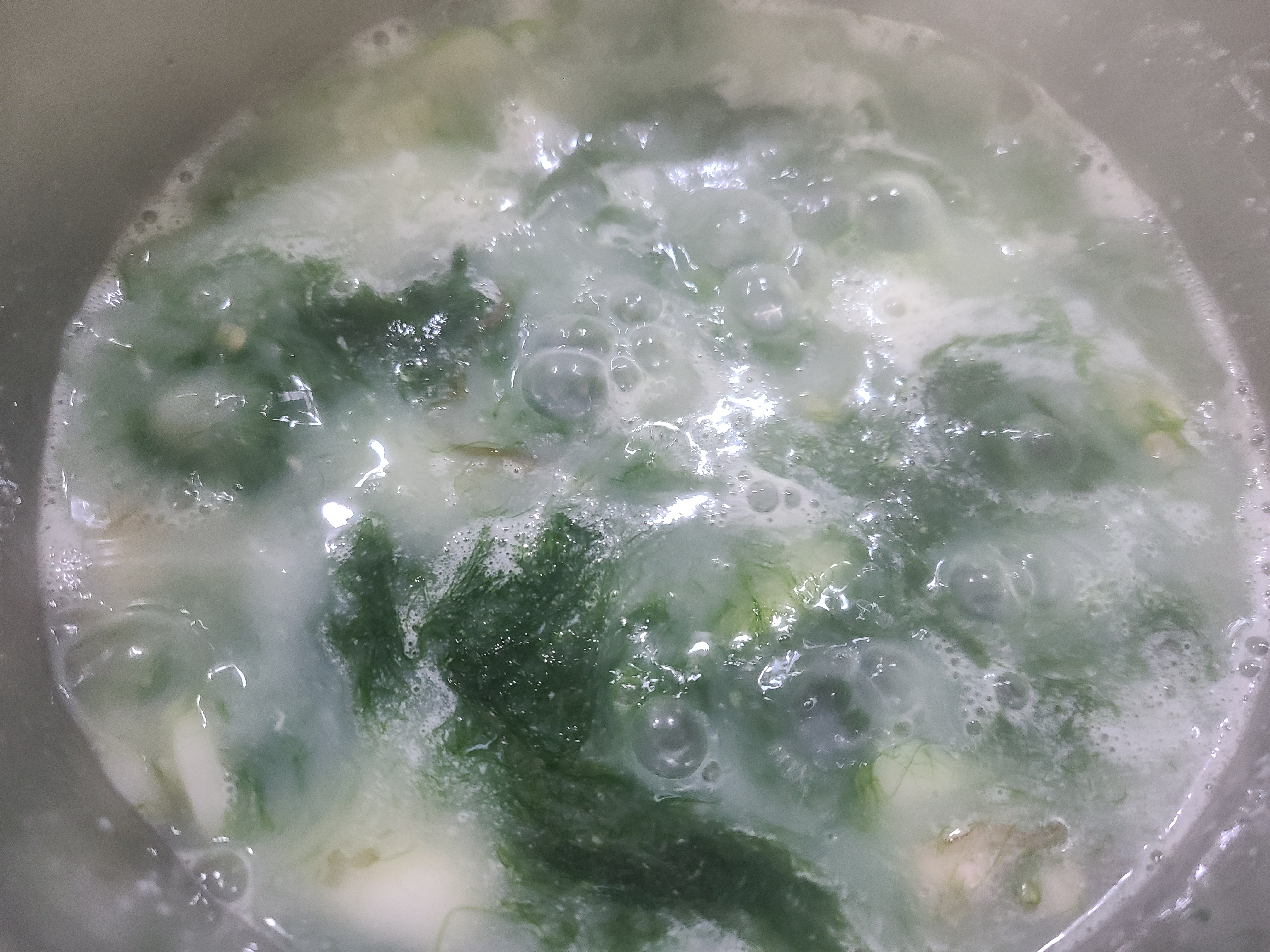 8. 매생이는 끓일수록 녹으니 한소끔 끓으면 불을 꺼준다. 사골육수에 간이 되어 있어 추가 간을 하지 않아도 된다.