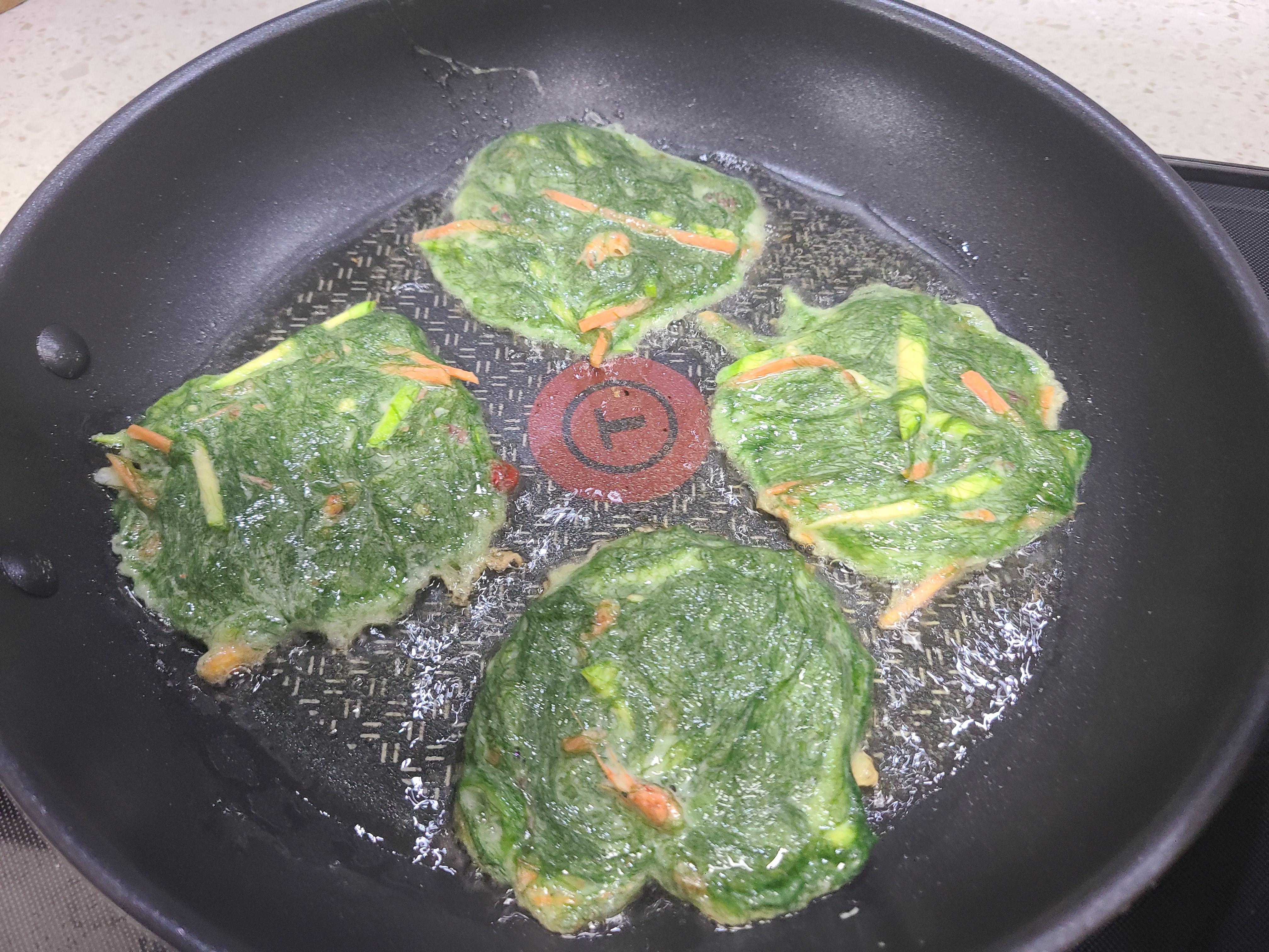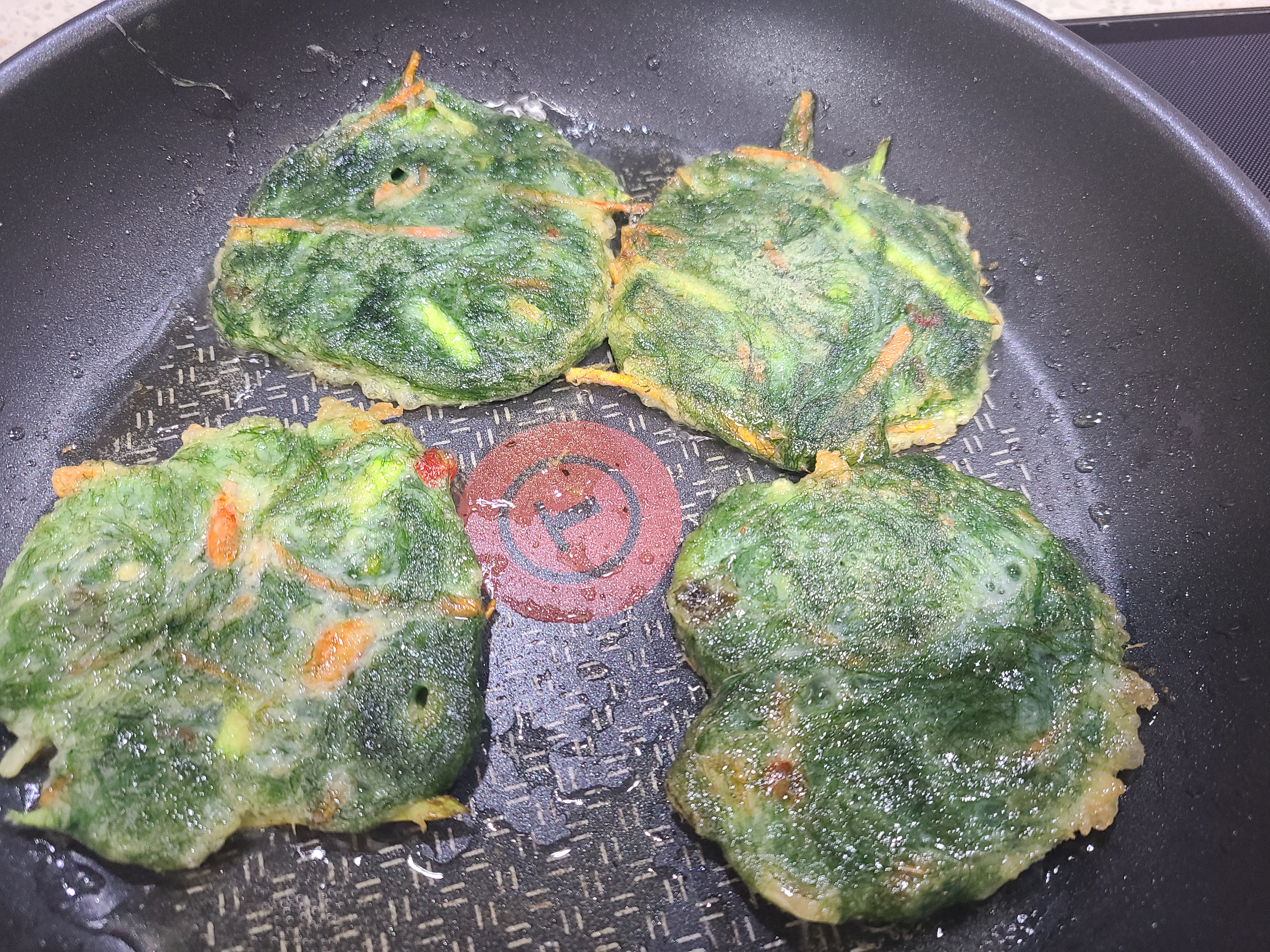 9. 후라 애팬을 달궈 식용유를 부어준 후 반죽을 한 스푼씩 떠서 올려준다.