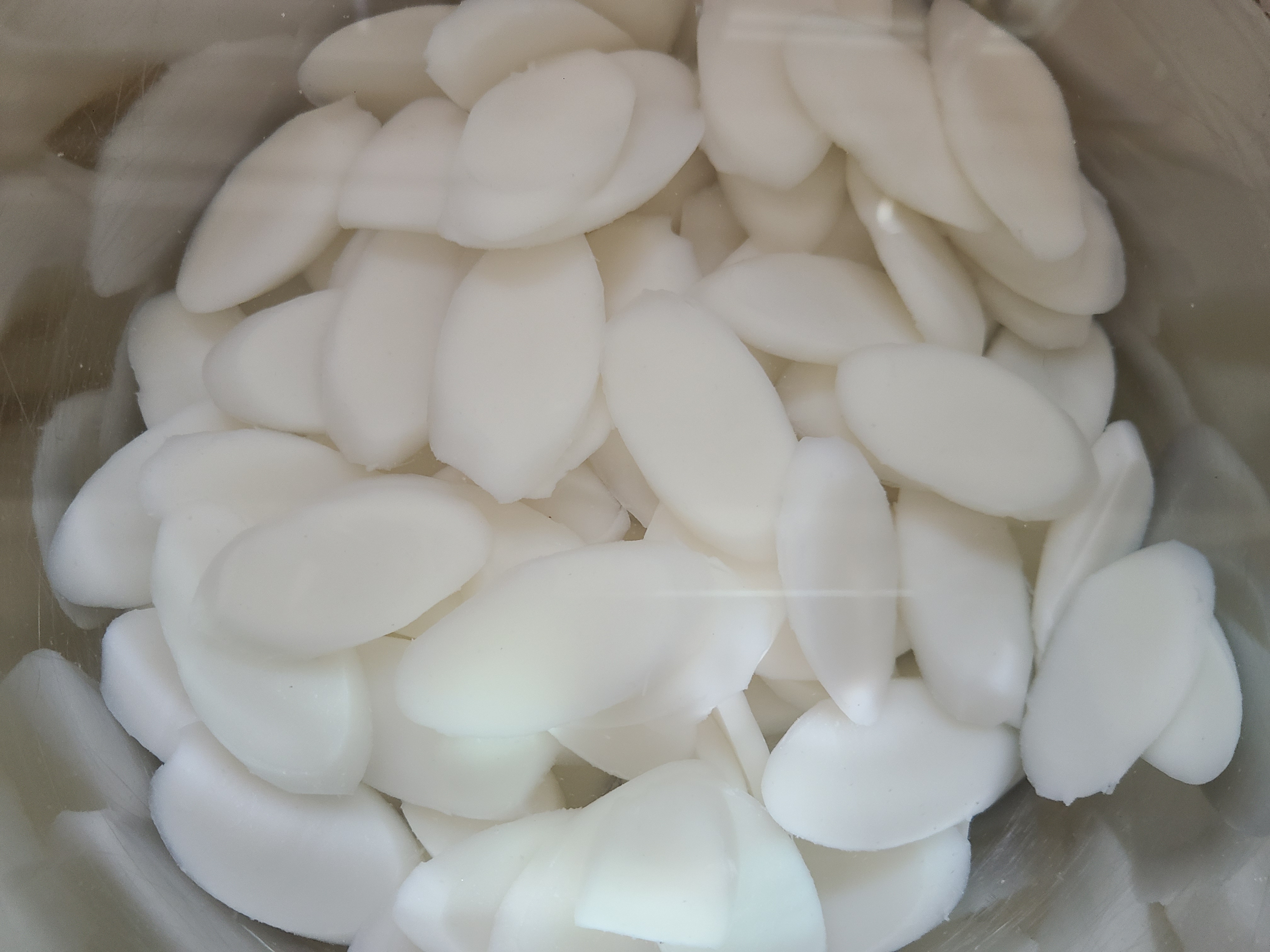 3. 흰떡을 물에 한번 헹군 후 맑은 물에 담가 놓는다.