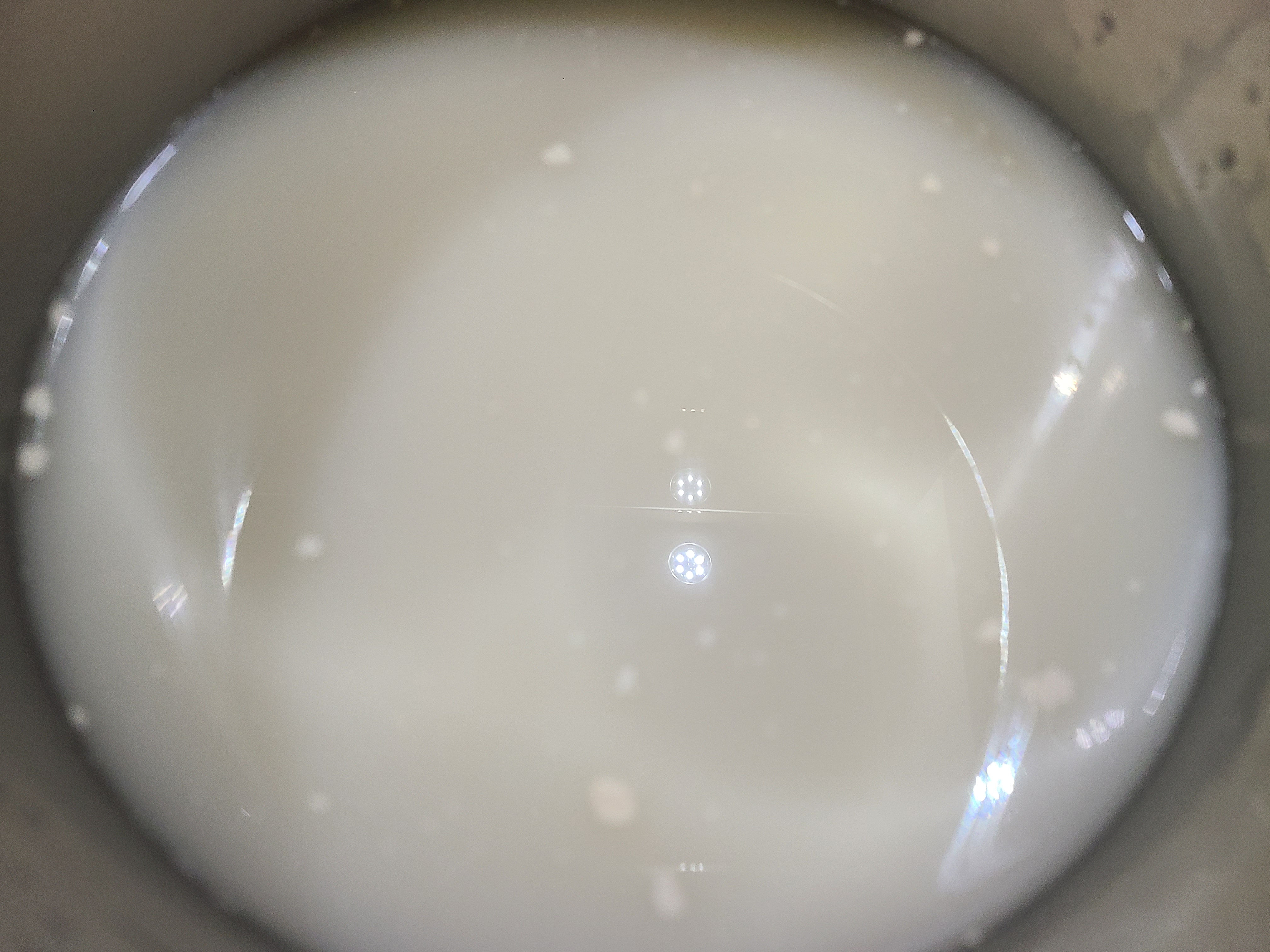 4. 봉지에 들은 사골을 개봉하기 전에 흔들어 준 후 냄비에 옮겨 담고 불을 켜준다.