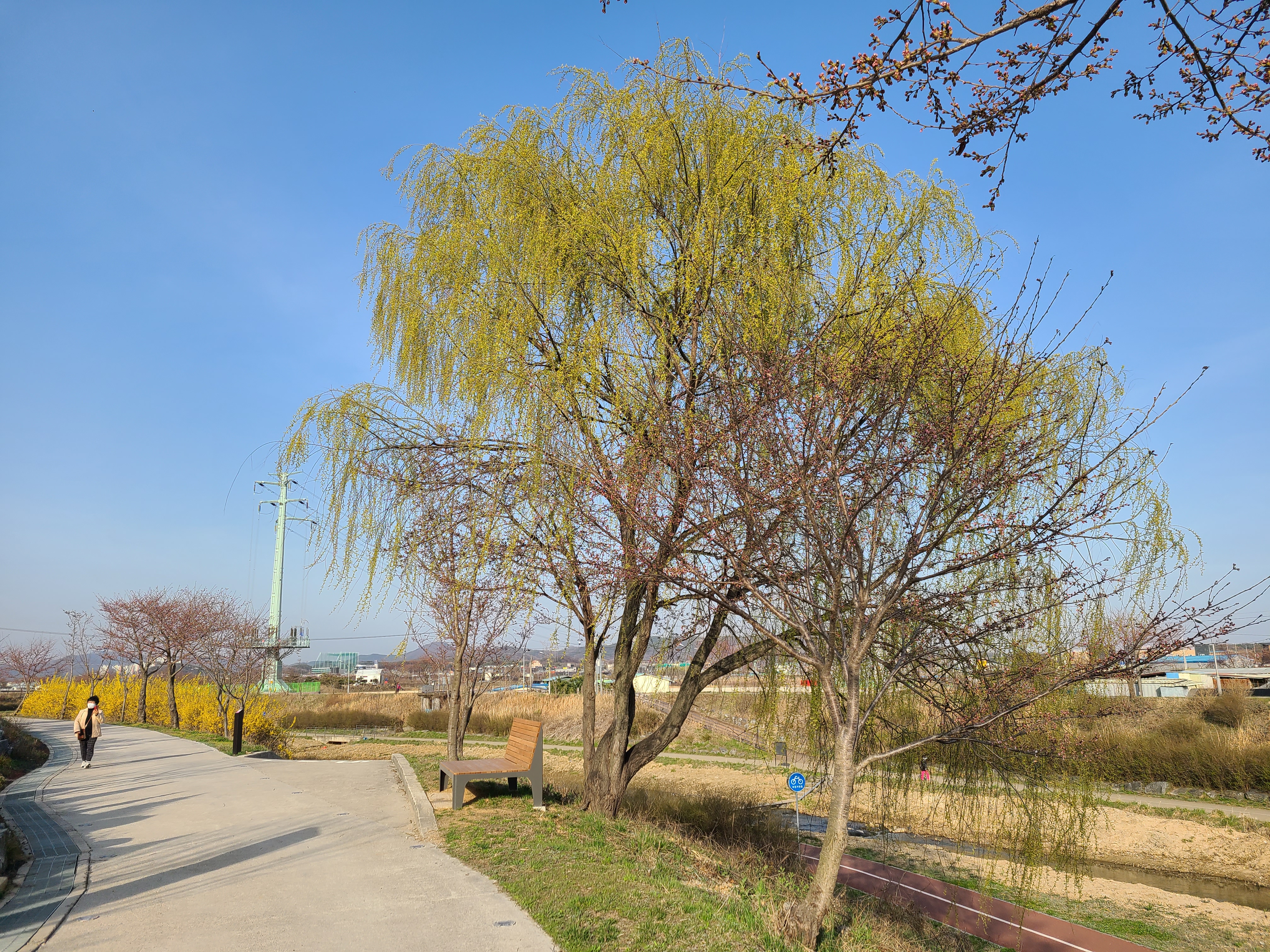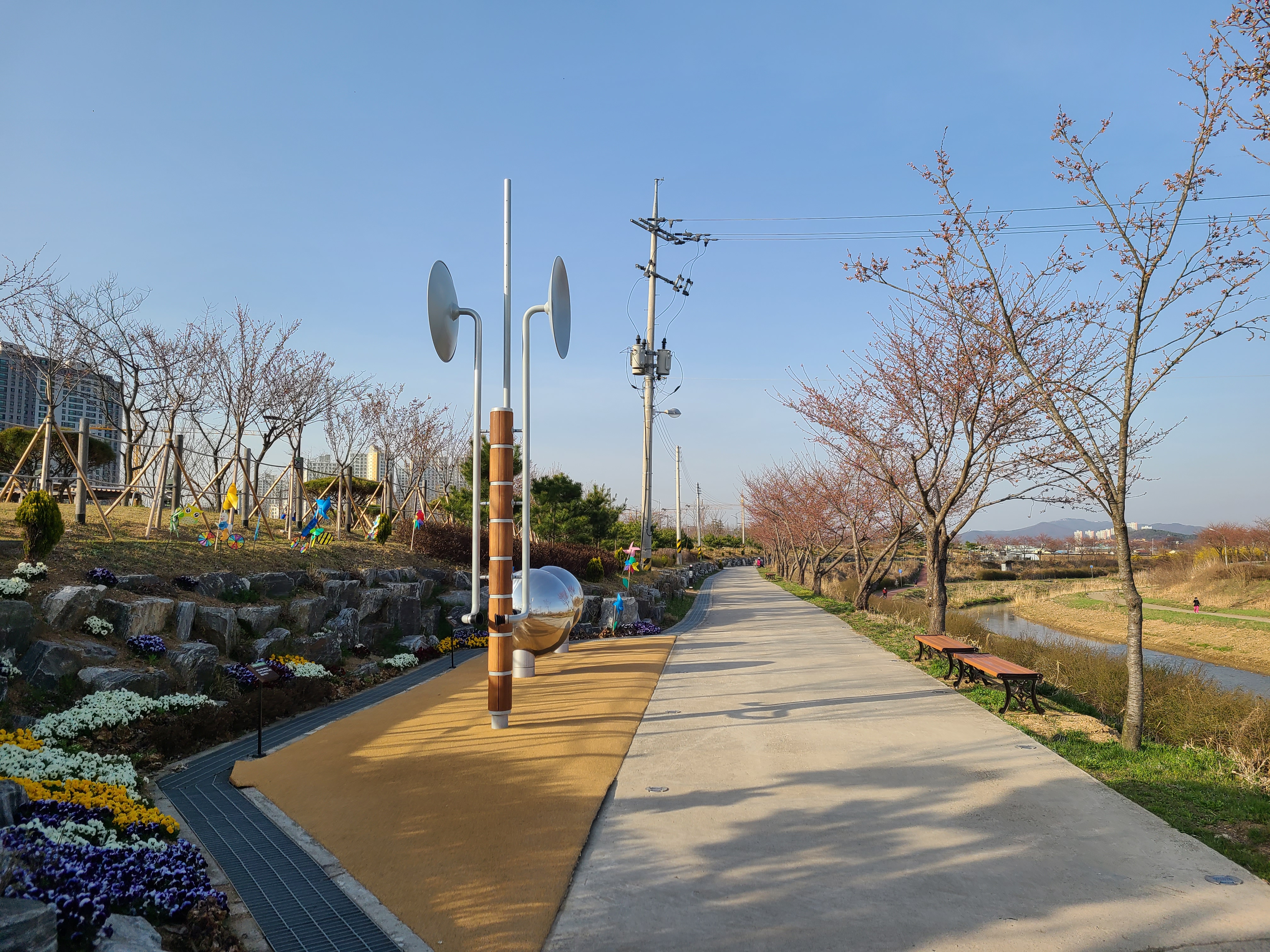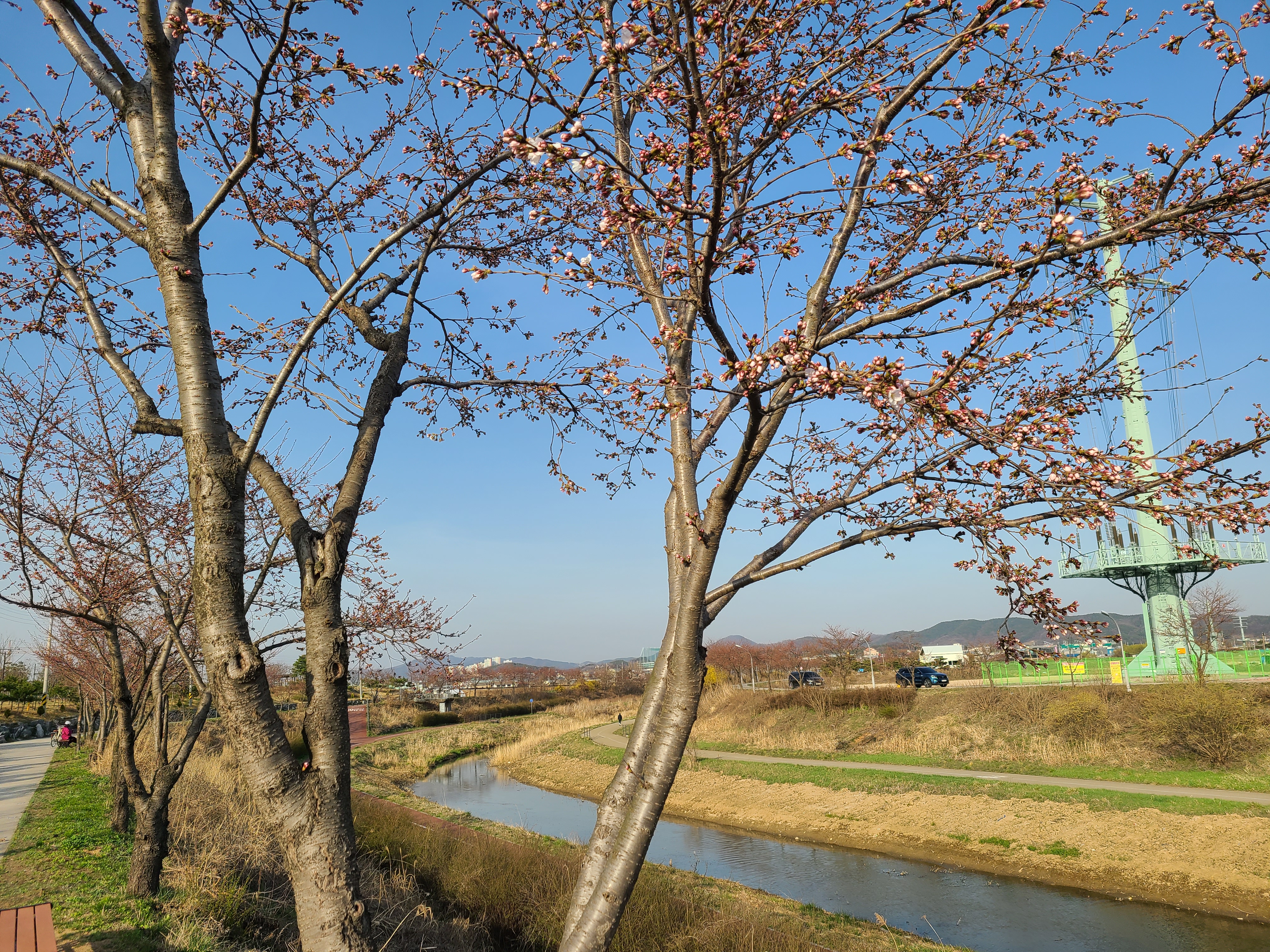 동삭교 주변에 있는 벚나무보다 수령은 작지만 이곳도 벚꽃이 피기 시작하면 둑방길을 따라 꽃을 바라보며 걷기에 아주 좋은 곳이다.