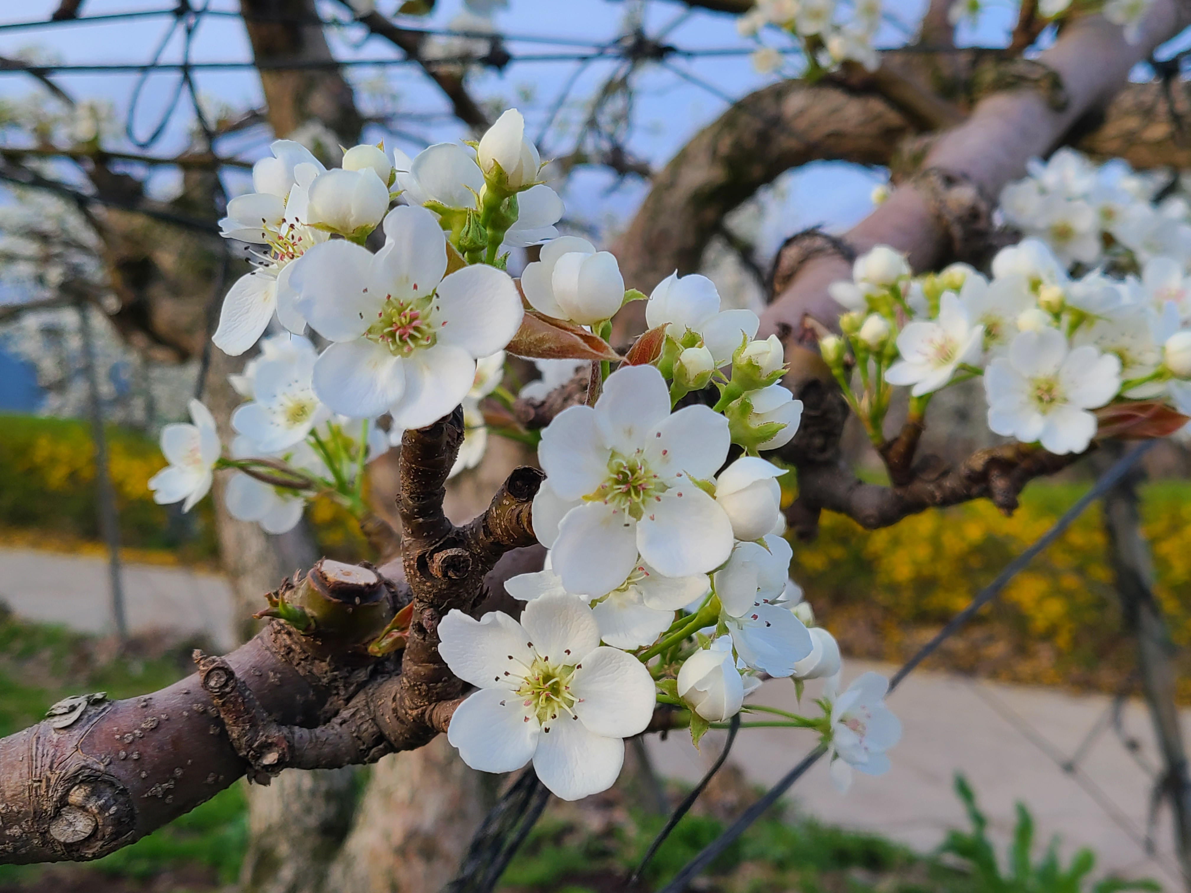 어릴 적에는 늘 배꽃을 보며 자라서 예쁘다는 생각을 못했던 것 같은데 요즘 배꽃을 보면 그 아름다움이 매화나 벚꽃에 뒤지지 않는다는 생각이 든다.