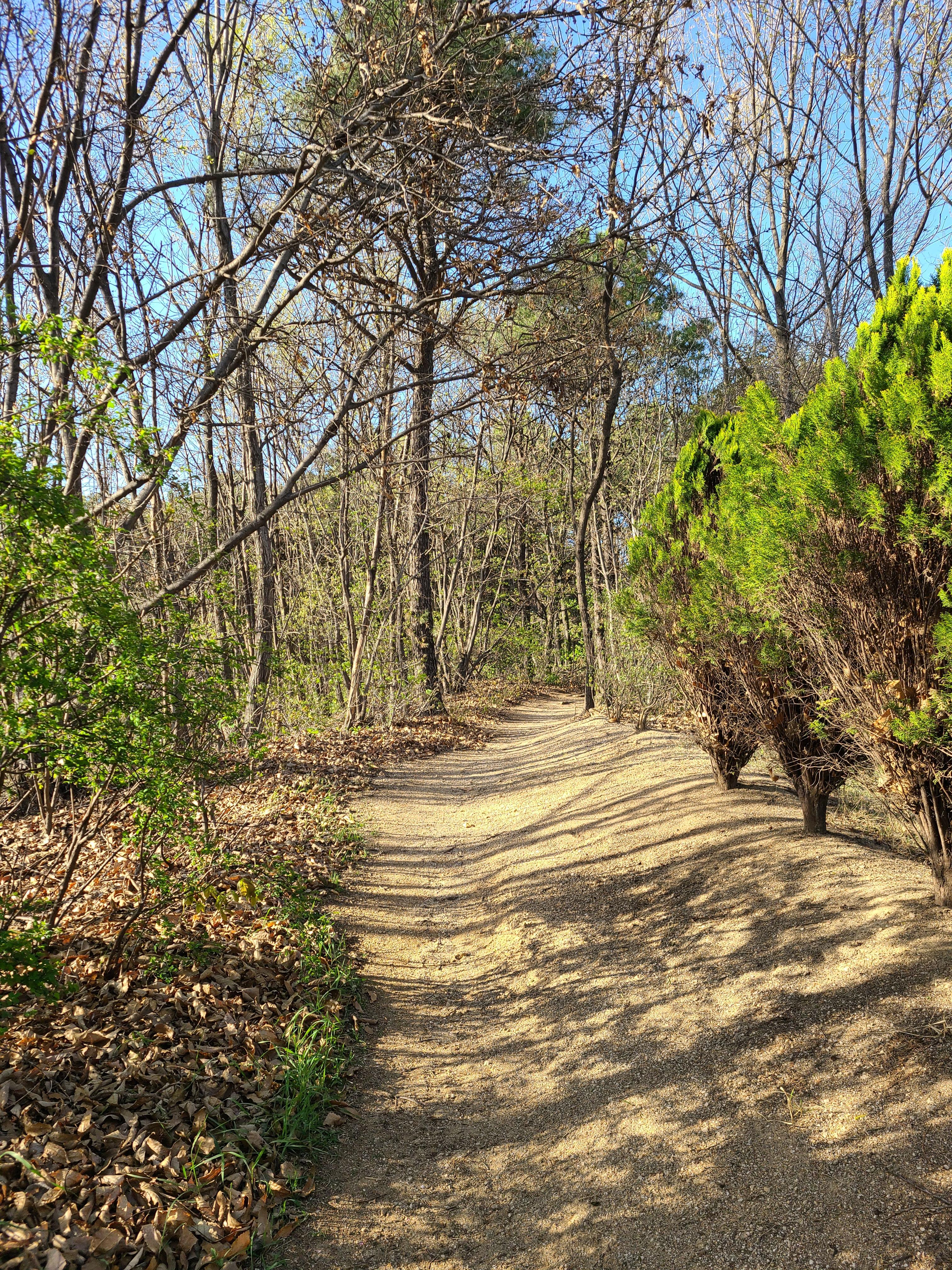 아파트 뒤편 도로를 건너가면 이주단지 상가 가운데로 난 길로 들어서면 왼쪽으로 뒷동산으로 오르는 길이 나온다.