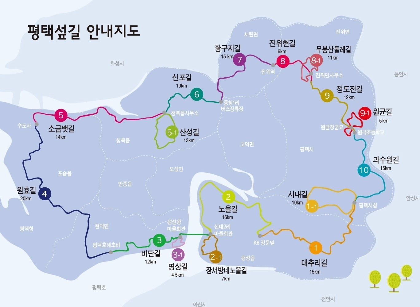 평택시에서는 평택 섶길 500리 둘레길을 조성해 놓았는데 평택시청에서 원균 장군묘까지 걷는 섶길 10코스( 과수원길)에 우리 동네에서 중학교까지 걸어가던 길이 포함되어 있다.