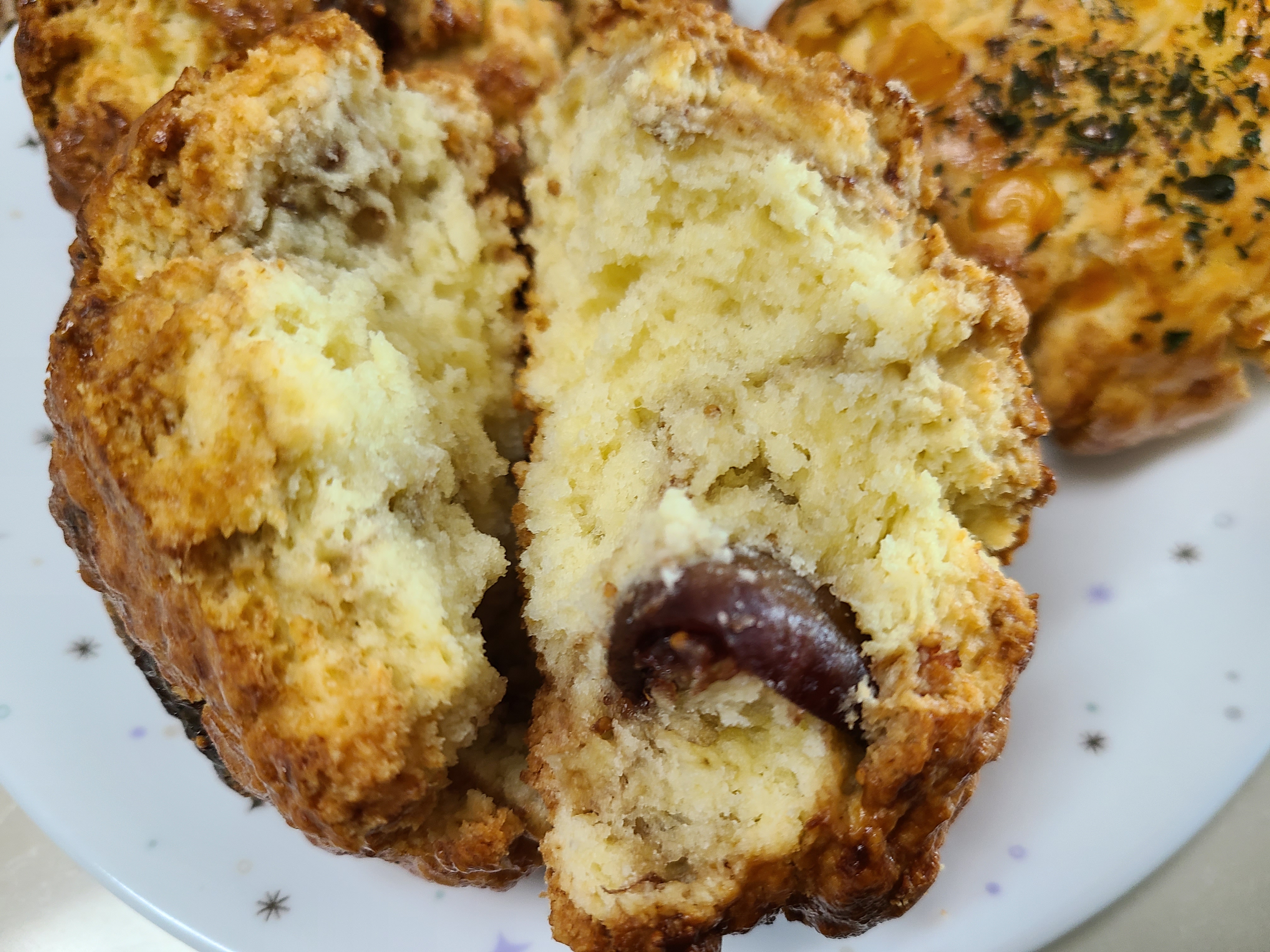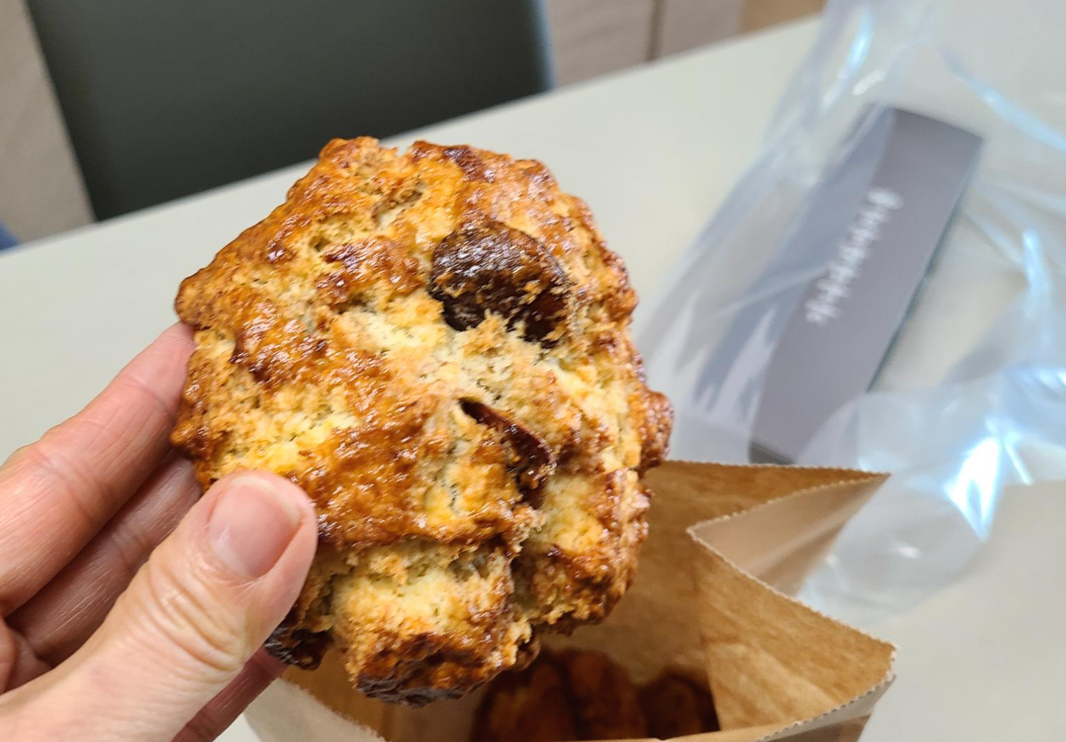 우선 무화과 스콘을 먼저 먹어봤다. 겉은 단단해 보이는데 먹어보니 겉은 바삭하고 속은 촉촉한 게 너무 맛이 있었다. 그동안 먹어본 스콘중 최고인 것 같다. 너무 달지도 않았고 무화과의 씹히는 식감도 좋았다. 커피와 함께 먹으니 더욱 맛이 있다. 다른 맛이 궁금했던 나는 식이요법을 어기고 콘치즈 폭탄 스콘과 대왕 플레인 스콘을 반으로 잘라서 먹기 시작했다. 대왕 플레인 스콘은 그냥 먹어도 맛있지만 함께 주는 수제 딸기잼과 먹는 맛도 아주 좋다. 콘치즈 폭탄스 콘도 치즈 폭탄이라는 말이 어울리게 치즈가 듬뿍 들어 있었다. 내 입맛에는 무화과 스콘이 최고다!!