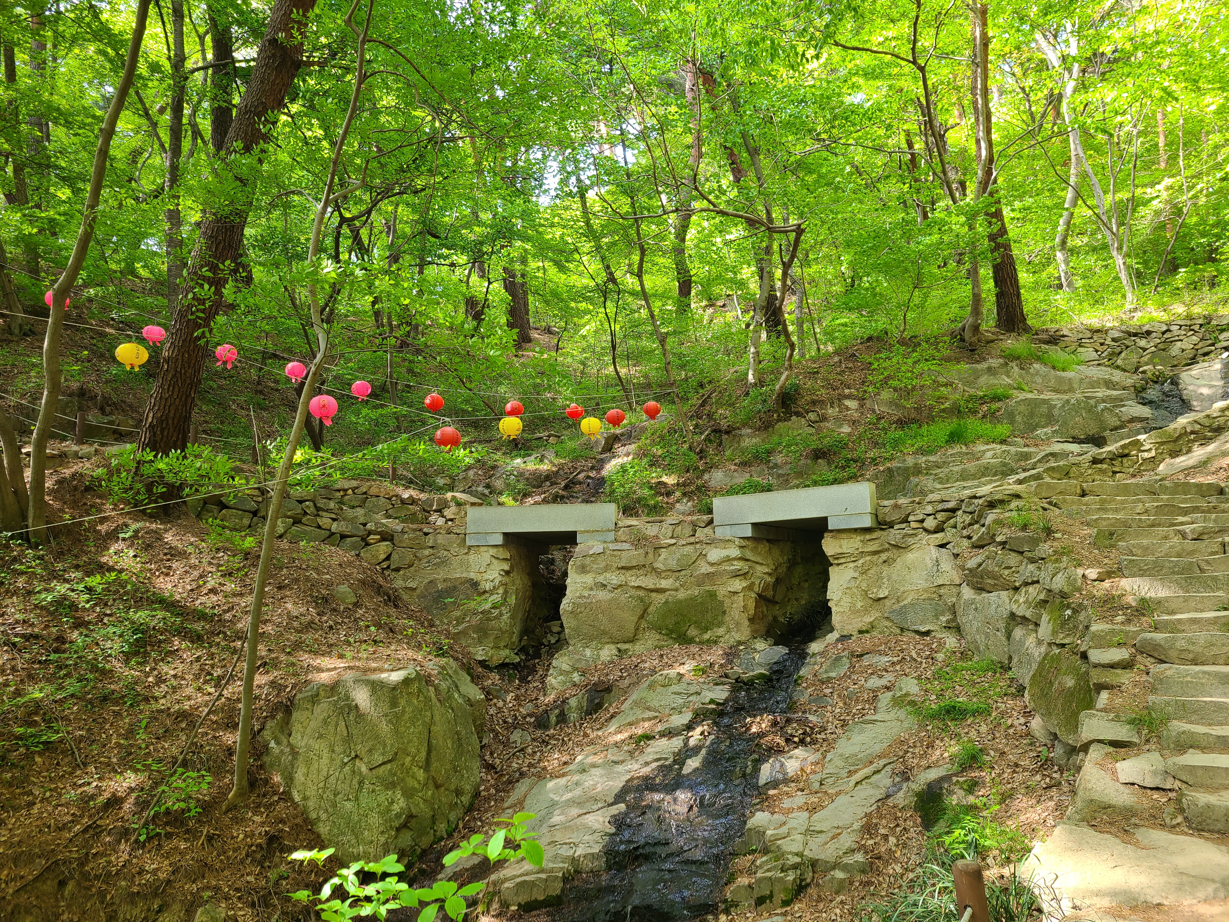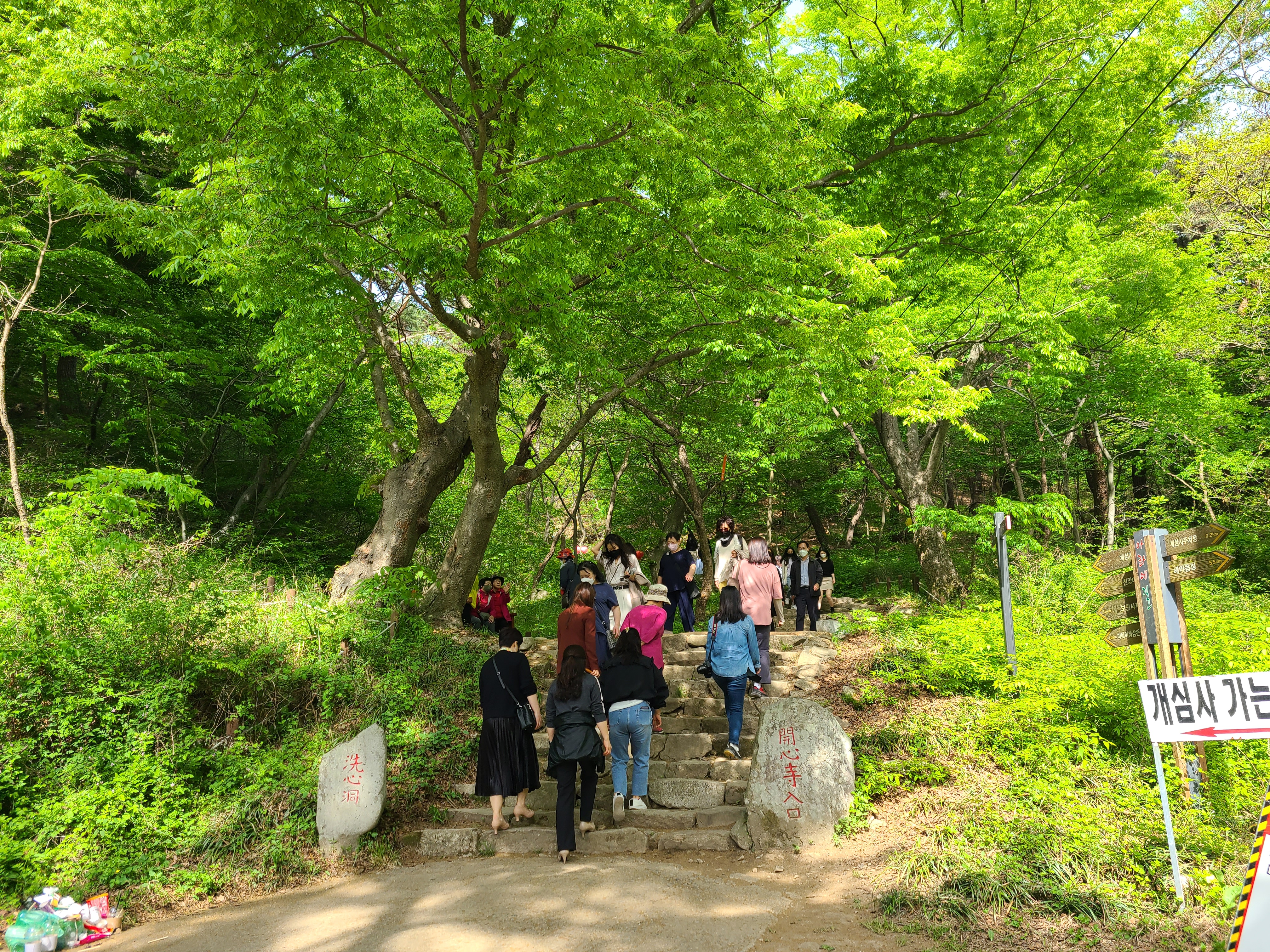개심사 입구 상점이 있는 곳부터 이곳까지 걸어서 5~6분 걸리는데 이곳부터 개심사까지 돌계단을 걸어서 올라가야 한다.