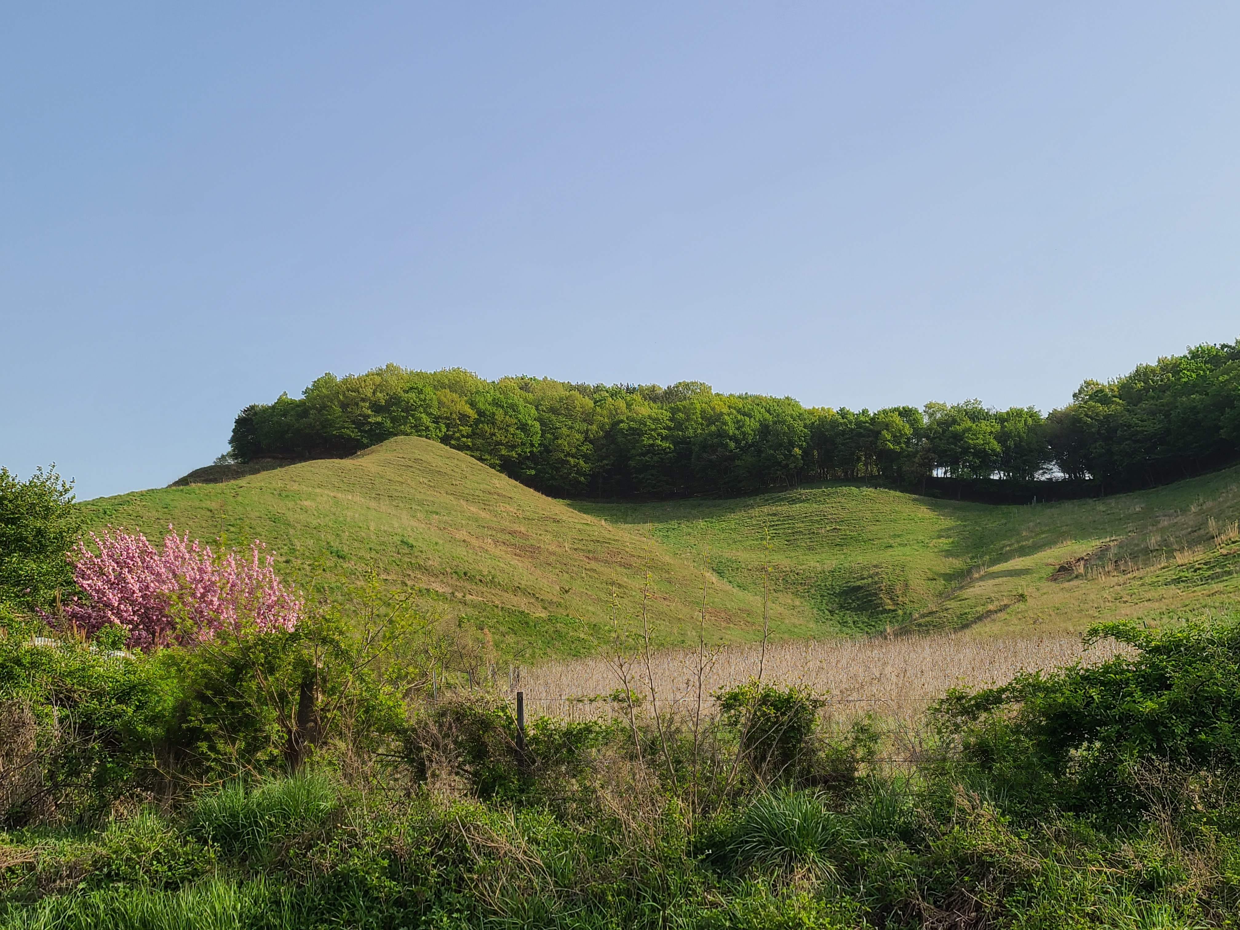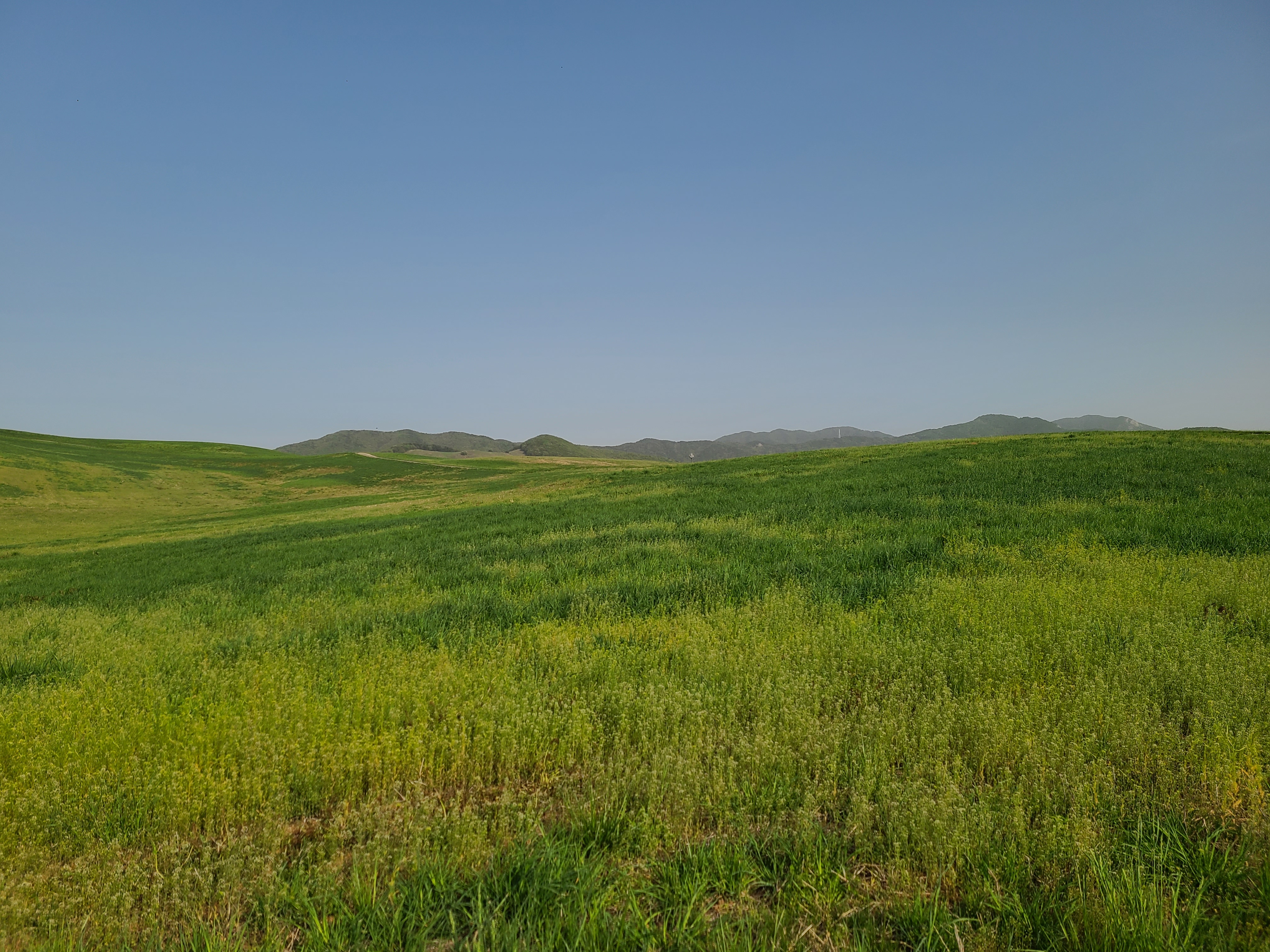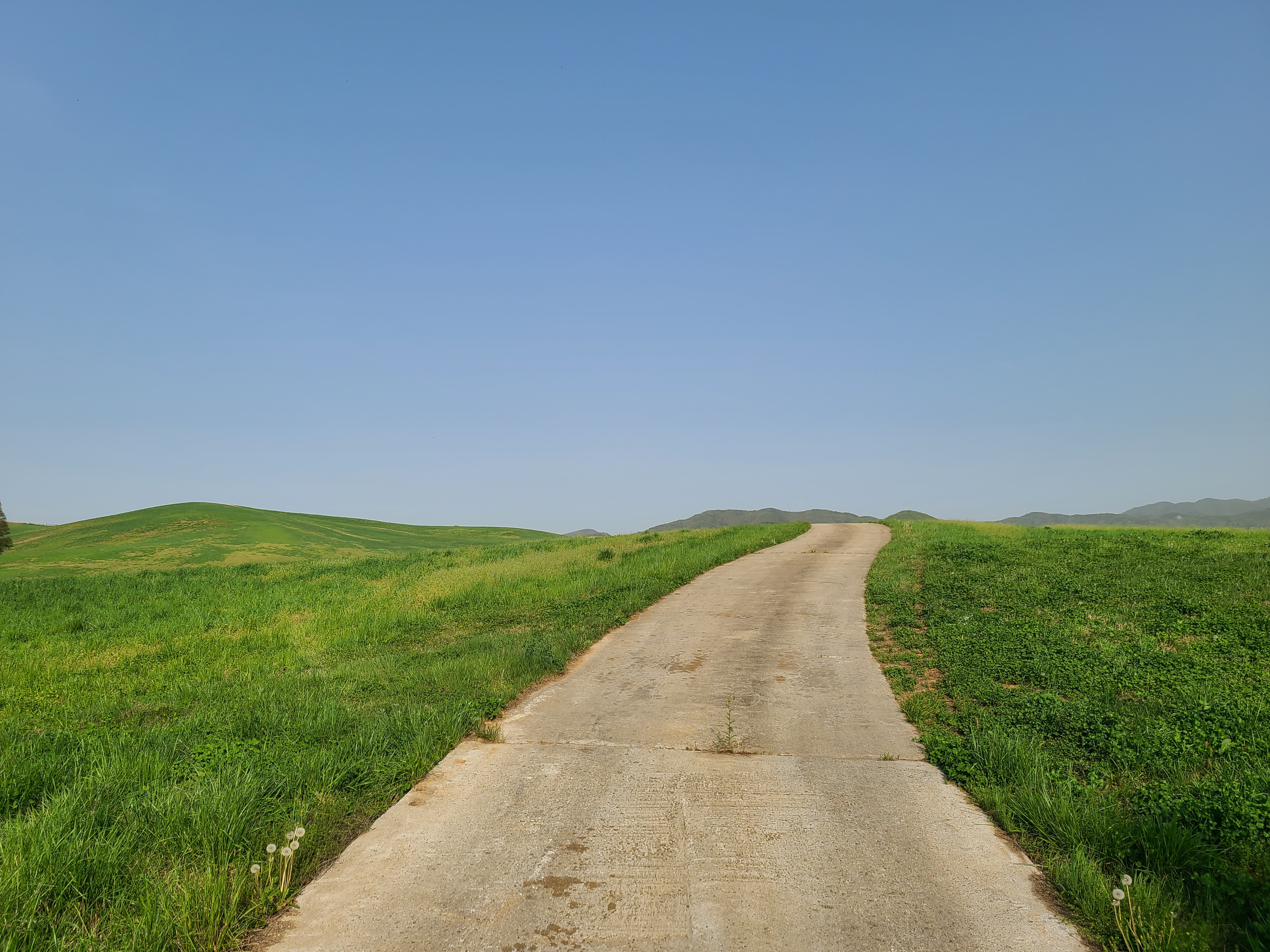 개심사에서 운산으로 나가는 길에 서산 한우목장의 넓은 초원이 한참 이어진다.