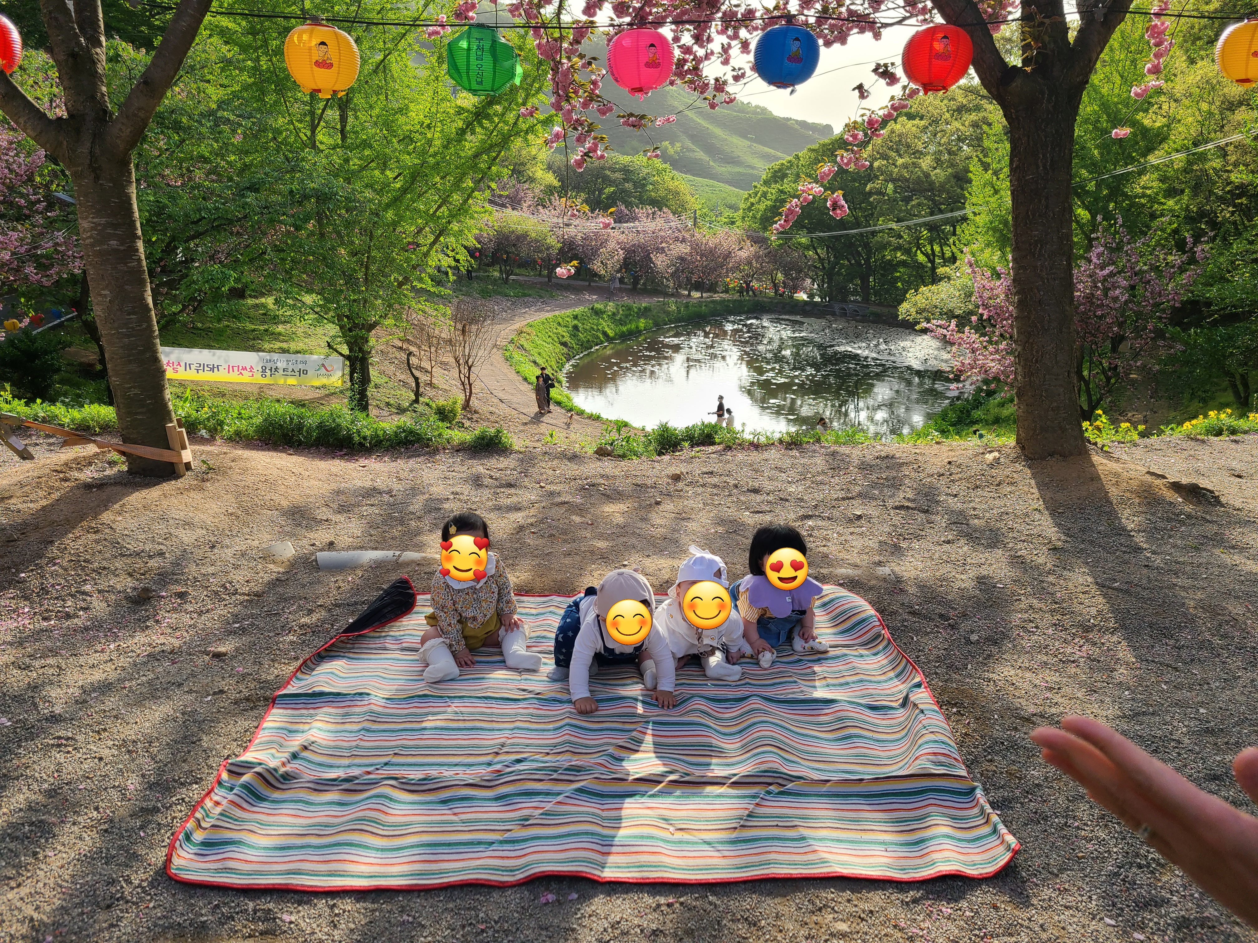 4명의 엄마들이 아기들을 돗자리 위에 앉혀놓고 사진을 찍느냐 손뼉을 치고 소리를 지르고 하는 모습이 봄의 어떤 꽃보다 더 예뻐서 한참을 멈춰 서서 구경했다.