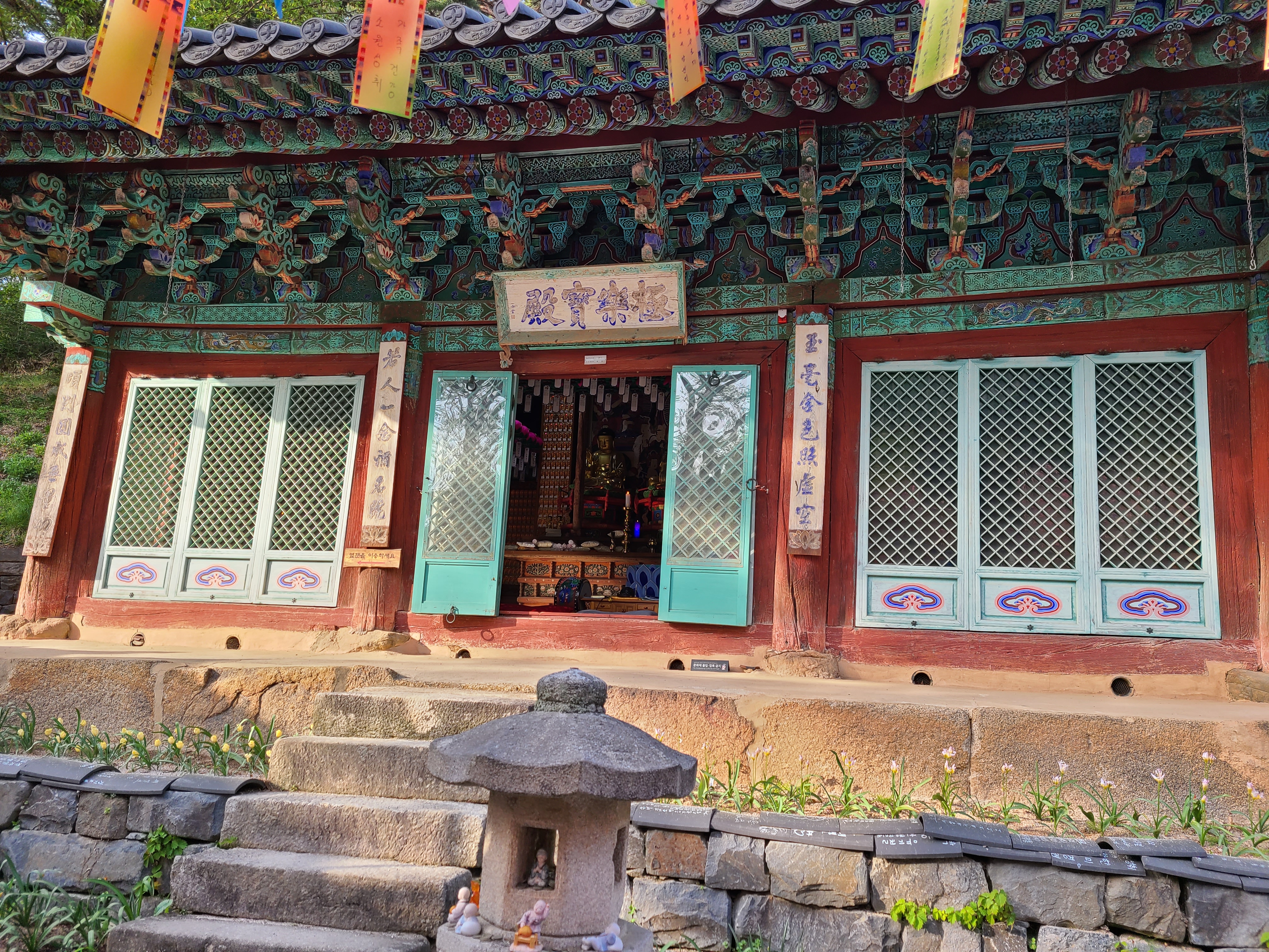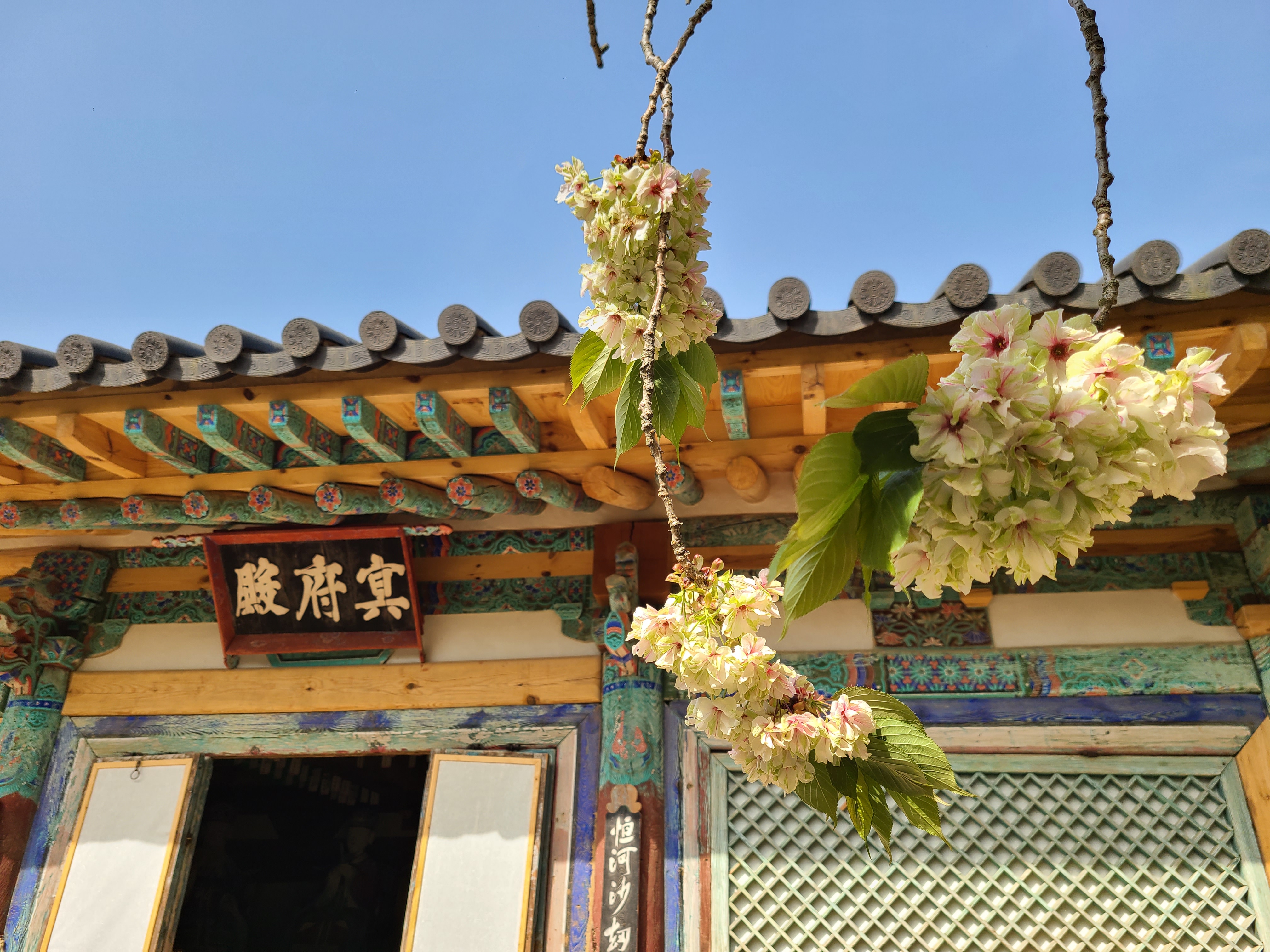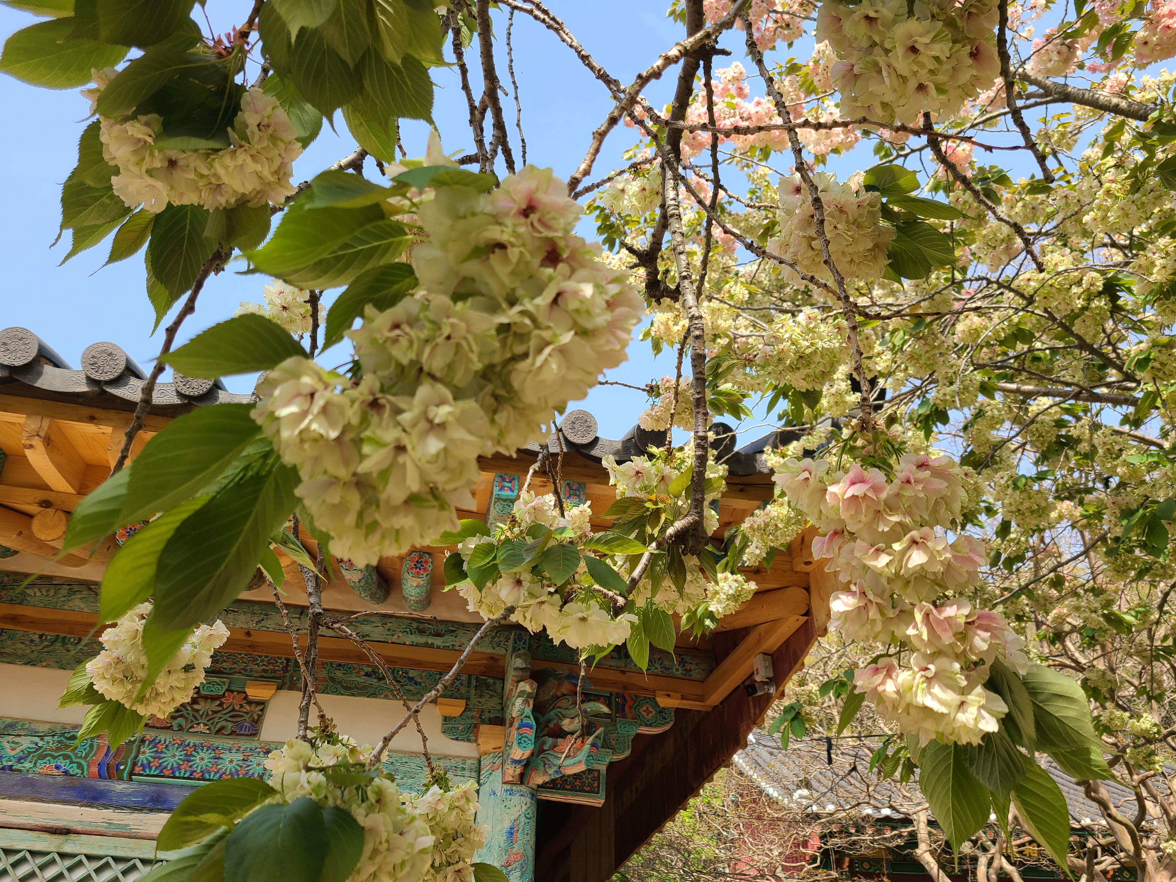 개심사 명부전 앞에 있는 청벚꽃은 연두색과 핑크색의 적절한 조화로 신비로운 빛깔을 띄고 있어 너무도 아름다웠다.