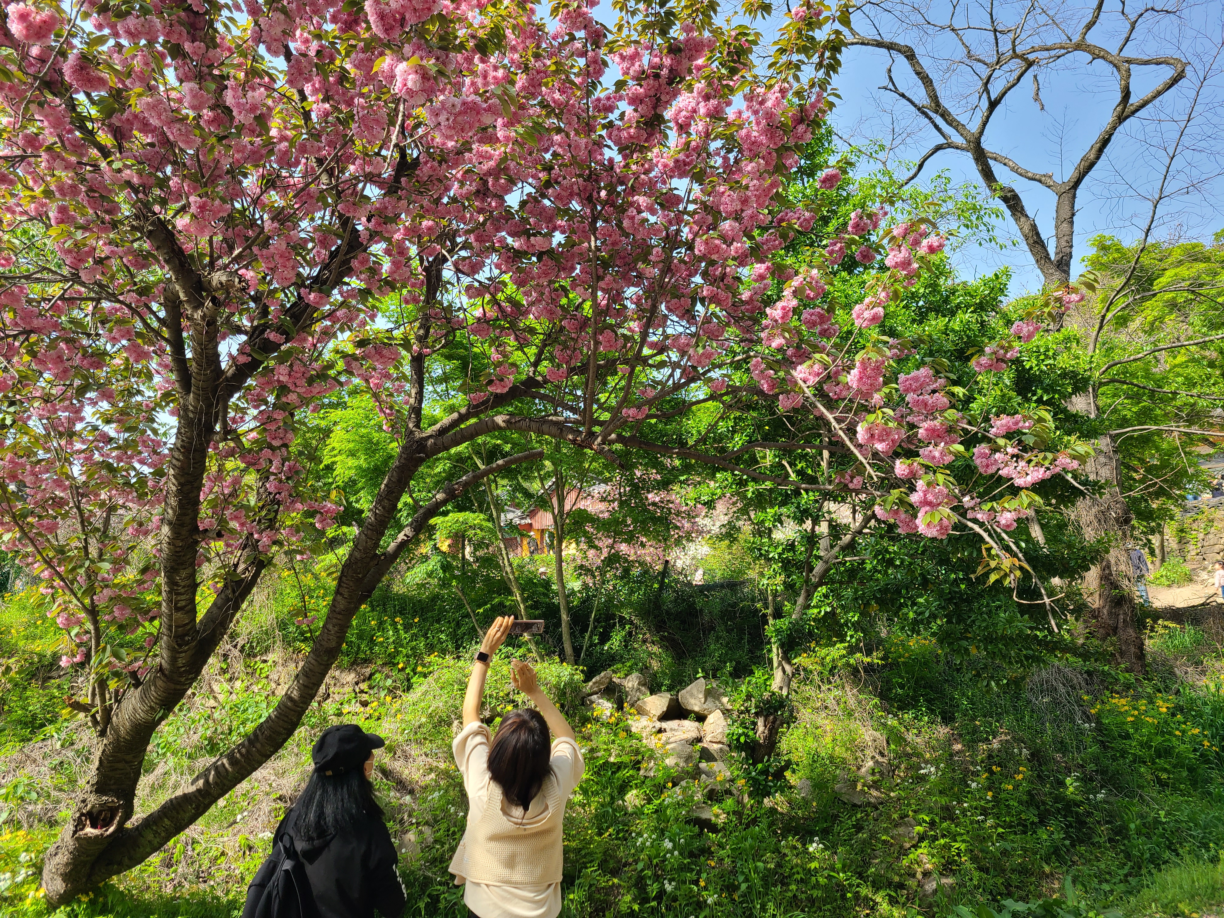 우리가 간 날은 평일 수요일이었는데도 많은 사람들이 왕벚꽃과 청벚꽃을 보기 위해 방문을 했다. 모두가 탐스럽게 피어있는 왕벚꽃과 청벚꽃을 사진에 담느냐 정신이 없다.