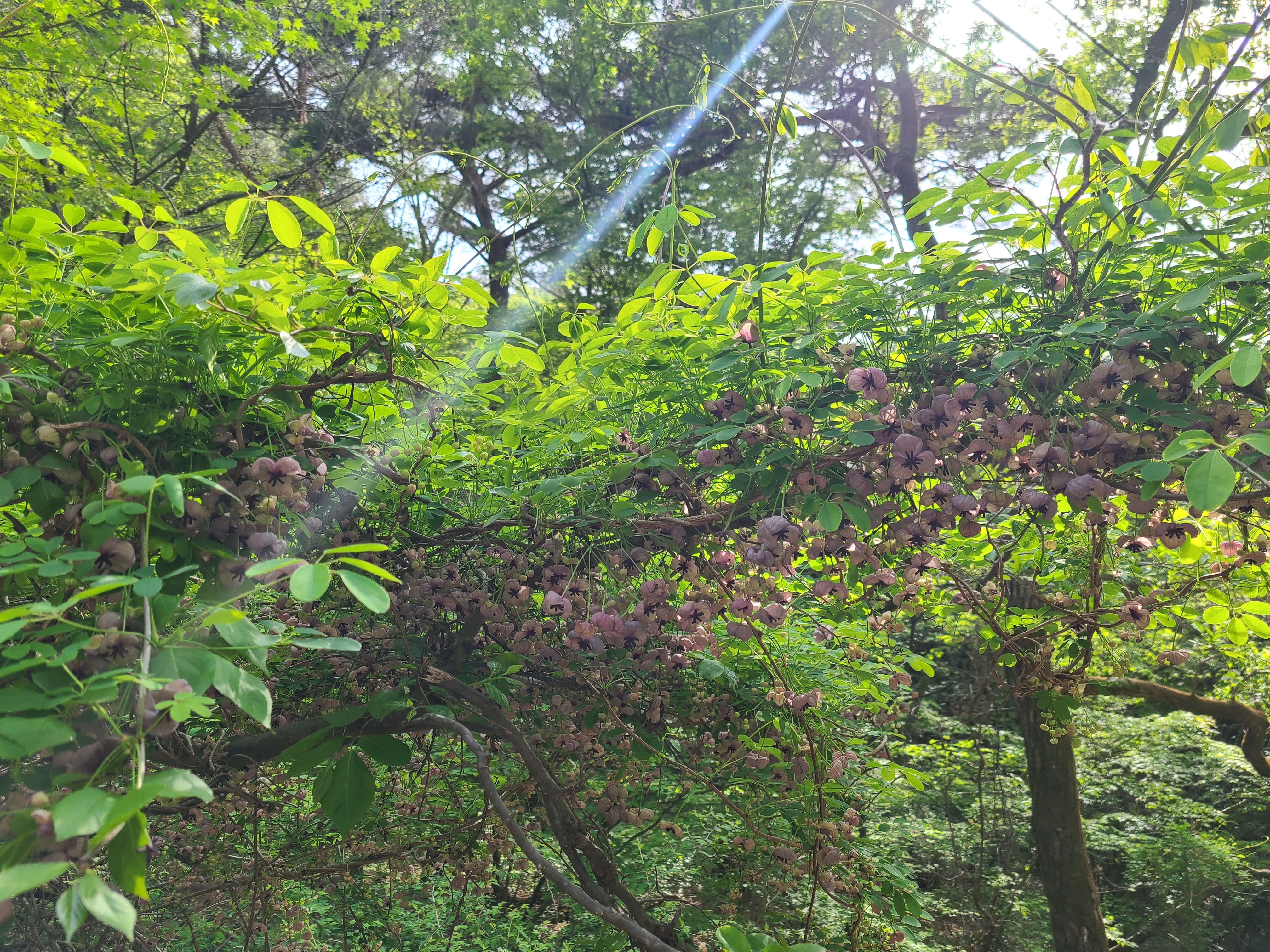 개심사로 올라가는 길 오른쪽에 처음 보는 꽃이 보여 가까이에 가니 다른 분이 사진을 찍으며 으름꽃이라고 가르쳐준다.