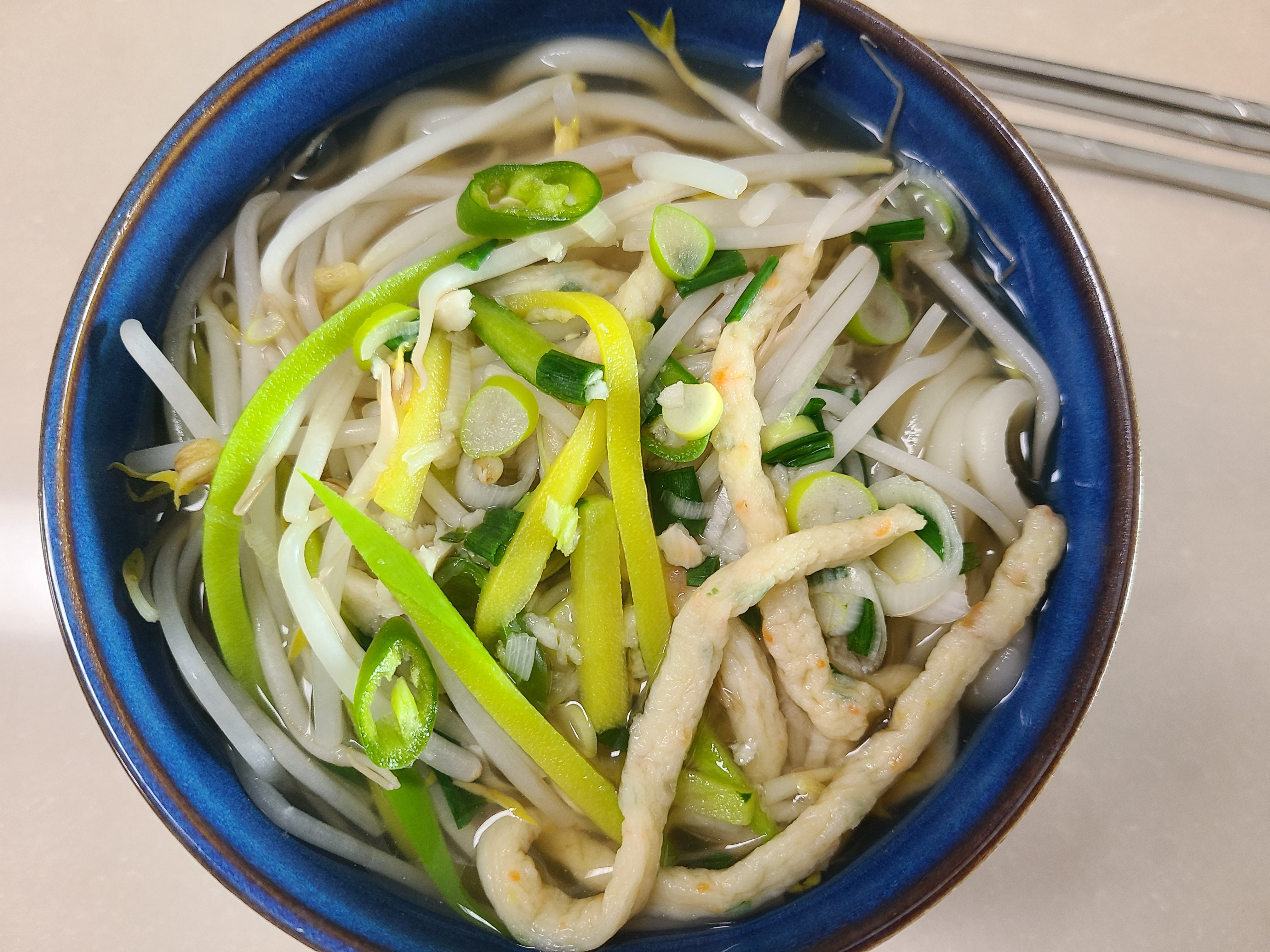 냉동실에 사둔 사누끼우동면이 있다. 어묵우동 면은 이것으로 하면 되고 숙주나물과 청양고추를 발견했다. 순간 몇 년 전 규슈에서 먹었던 숙주가 듬뿍 들었던 우동 생각이 났다. 그래서 오늘 숙주를 추가로 넣고 어묵우동을 끓여보기로 했다.