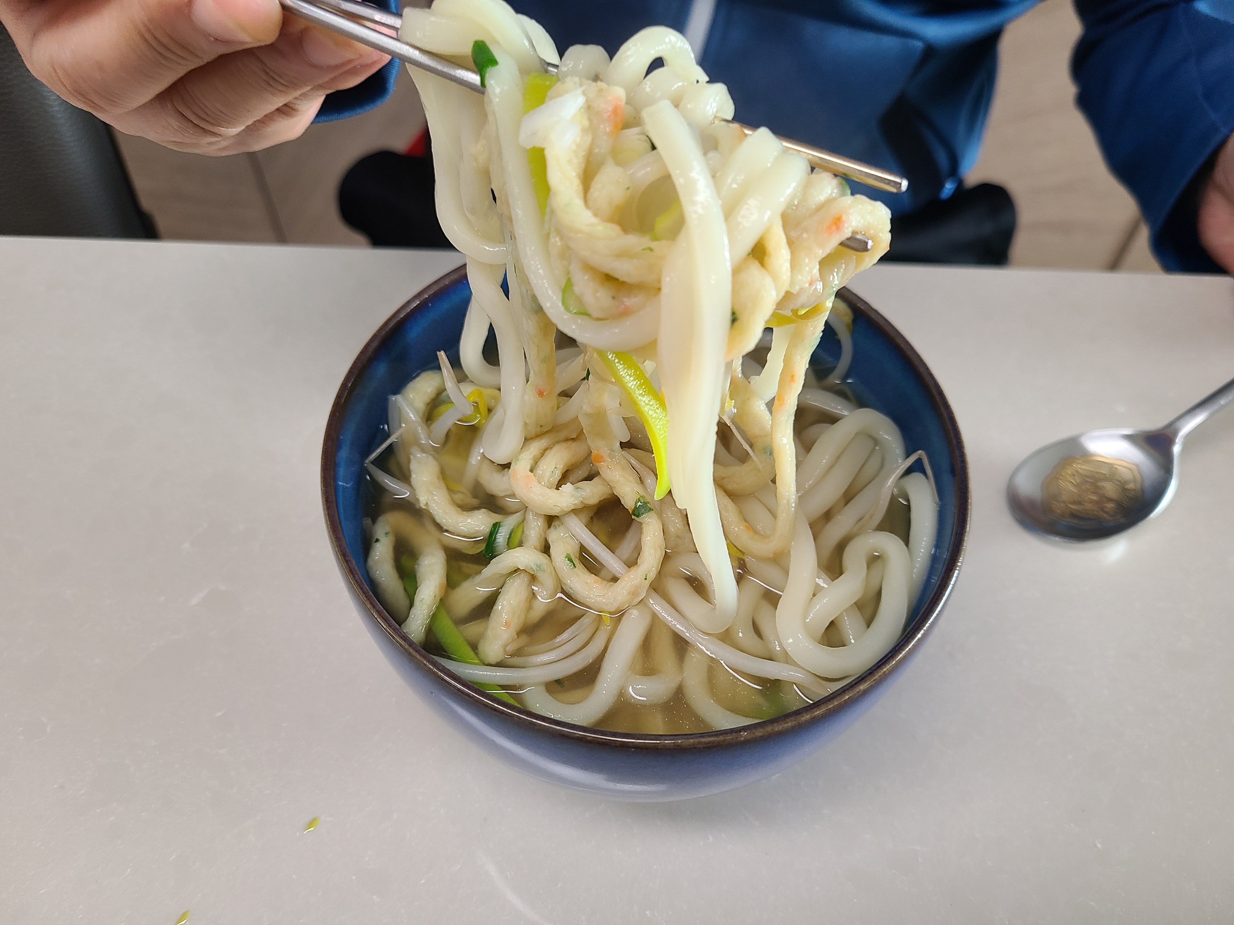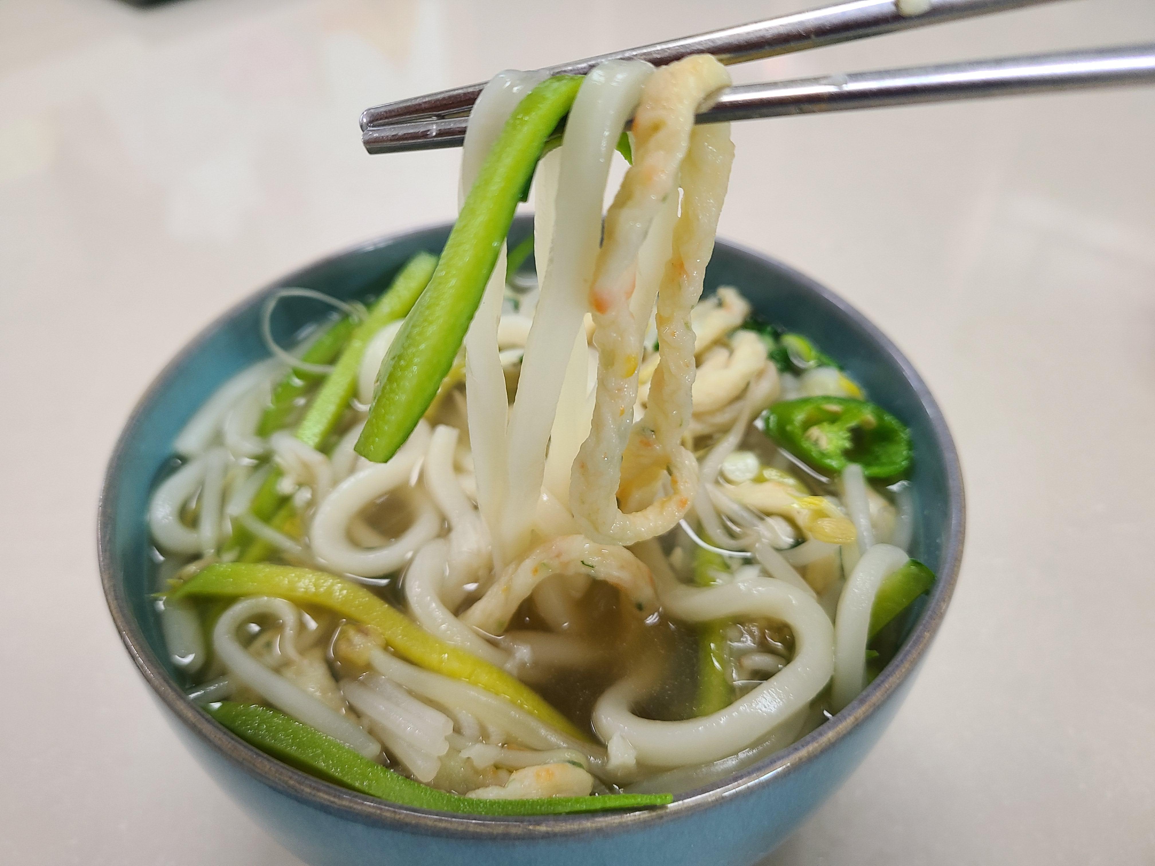 미도면 어묵의 면발도 쫄깃하다. 청양고추를 첨가했더니 매콤하면서도 시원한 어묵우동 국물이 너무 너무 시원하다.