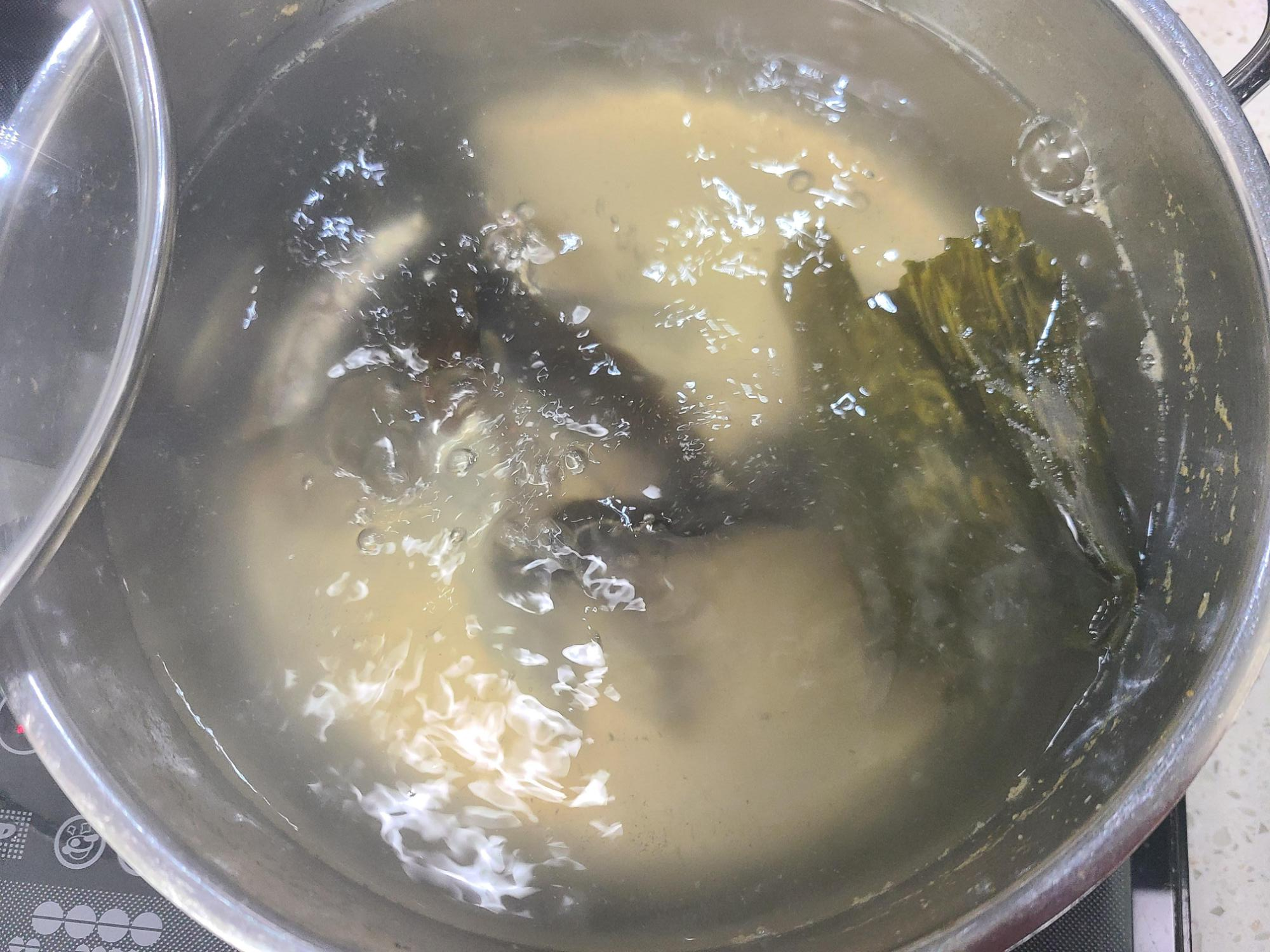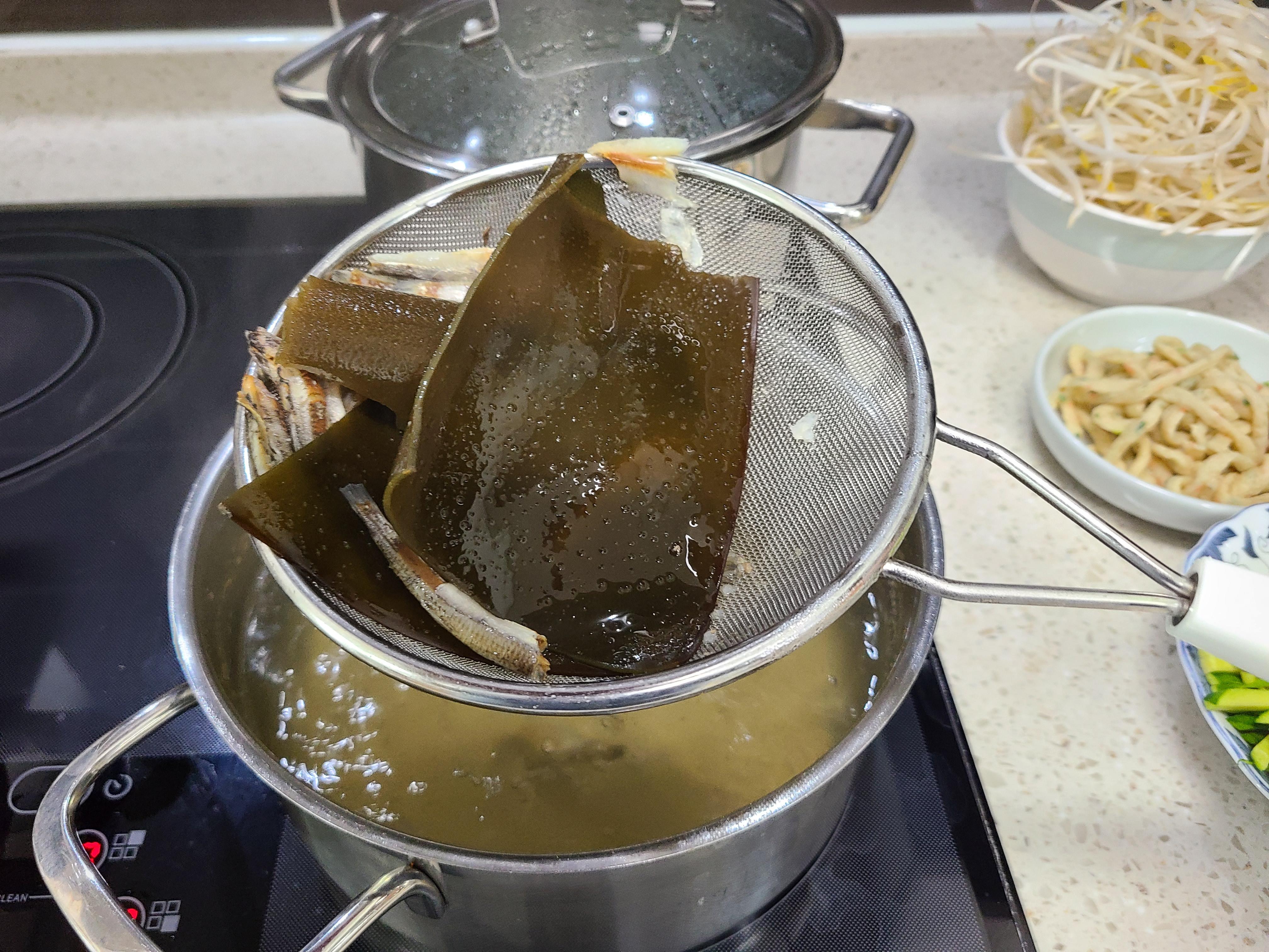 2. 20분 정도 끓인 후 다시마를 넣고 10분 더 끓인 후 멸치와 다시마는 건져준다.