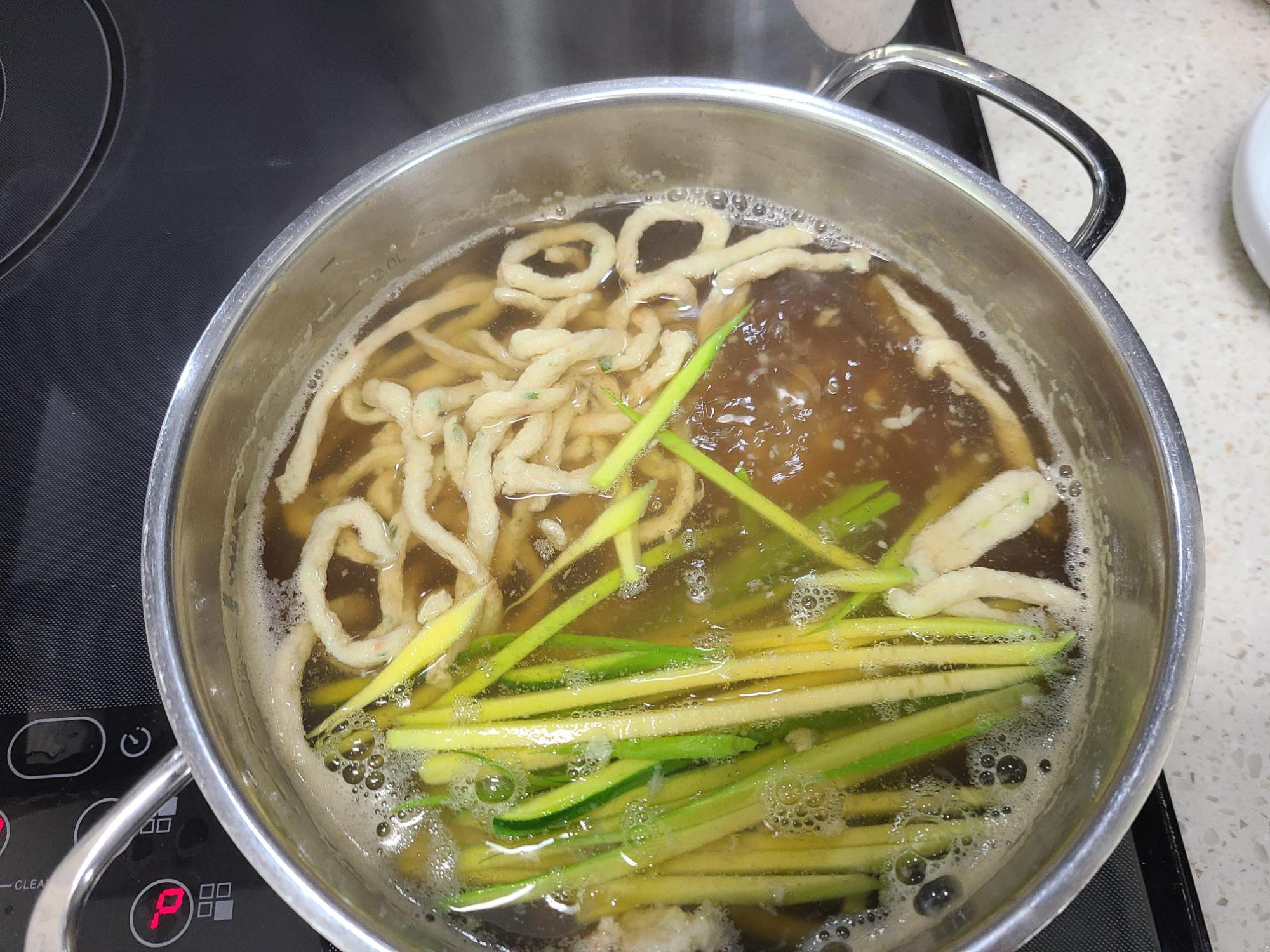 4. 미도면 어묵과 애호박을 넣어준다.