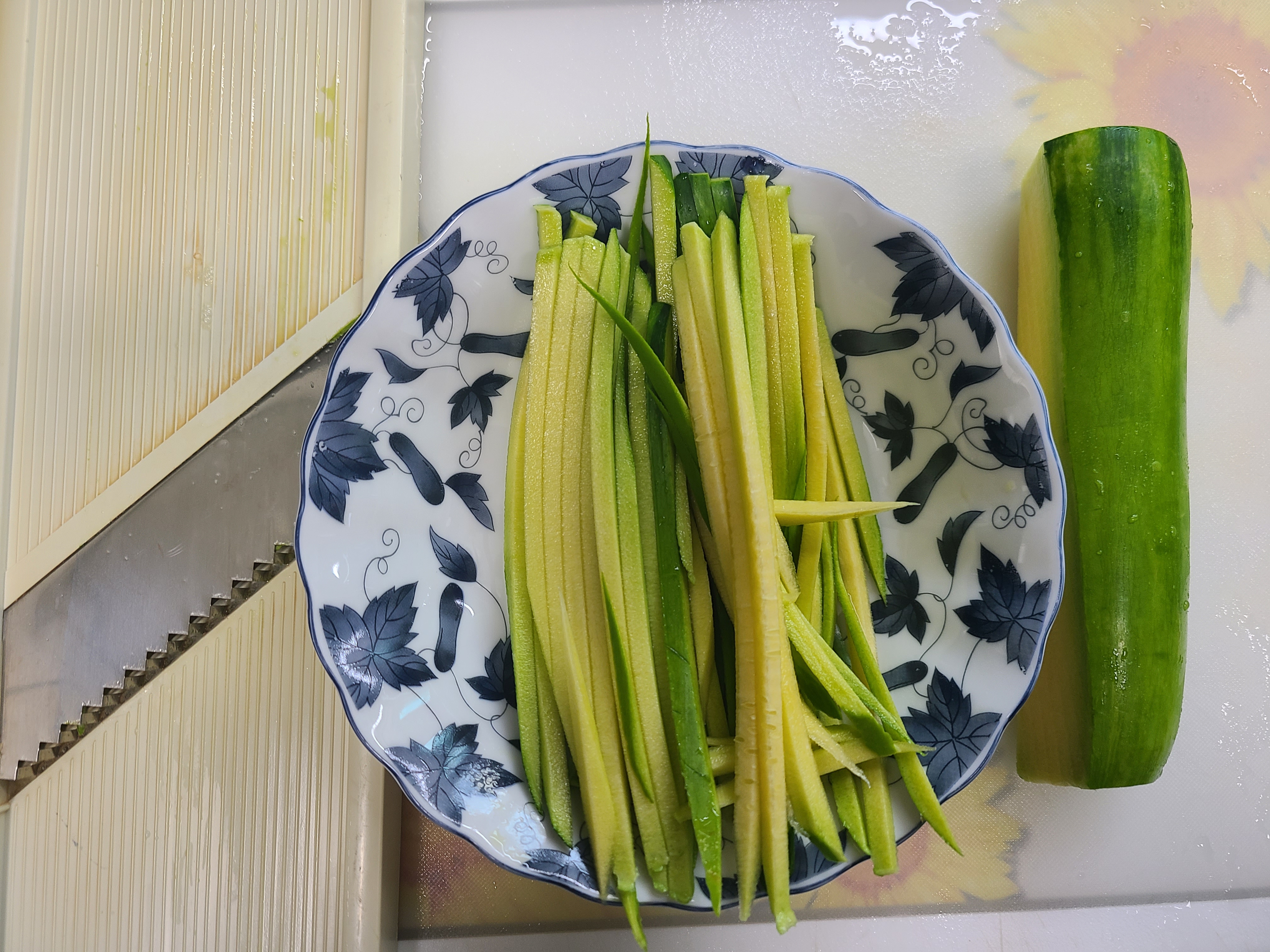 5. 애호박은 채칼을 이용해서 썰면 굵기가 일정해서 좋다.