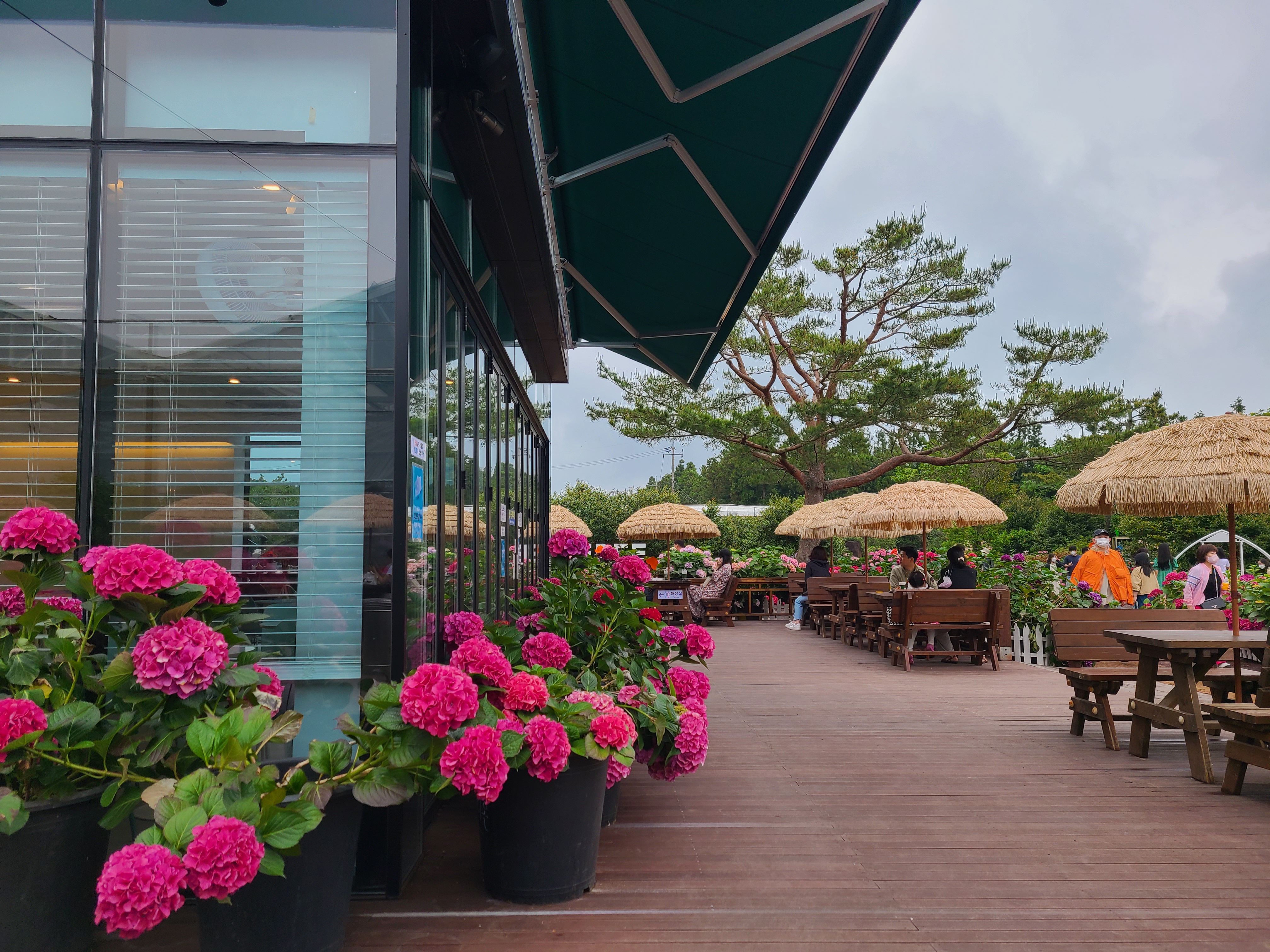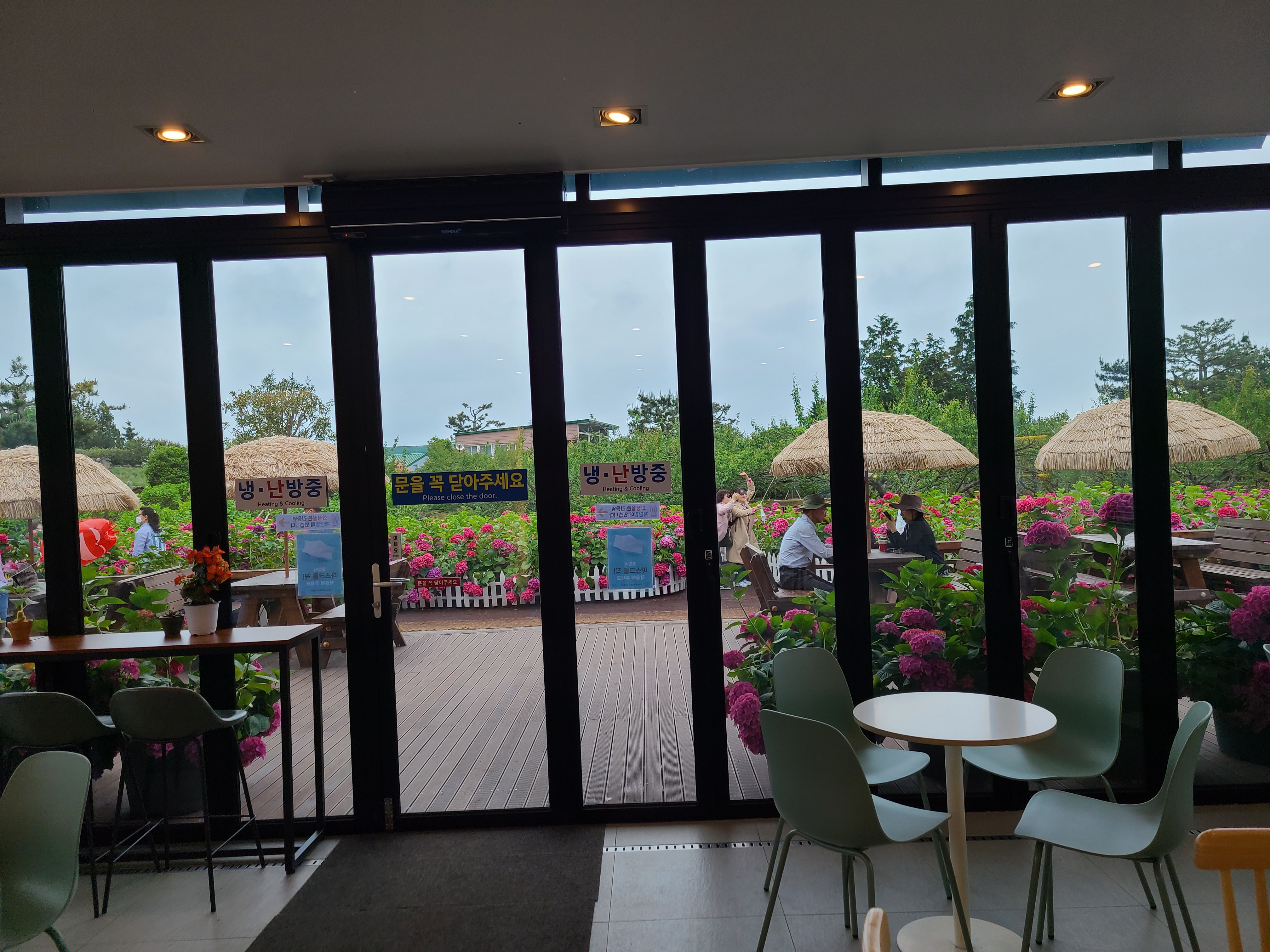 수국 정원을 구경하느냐 대부분의 사람들이 야외테이블을 이용하고 있어 카페 안에 앉아 있는 사람은 아무도 없었다.