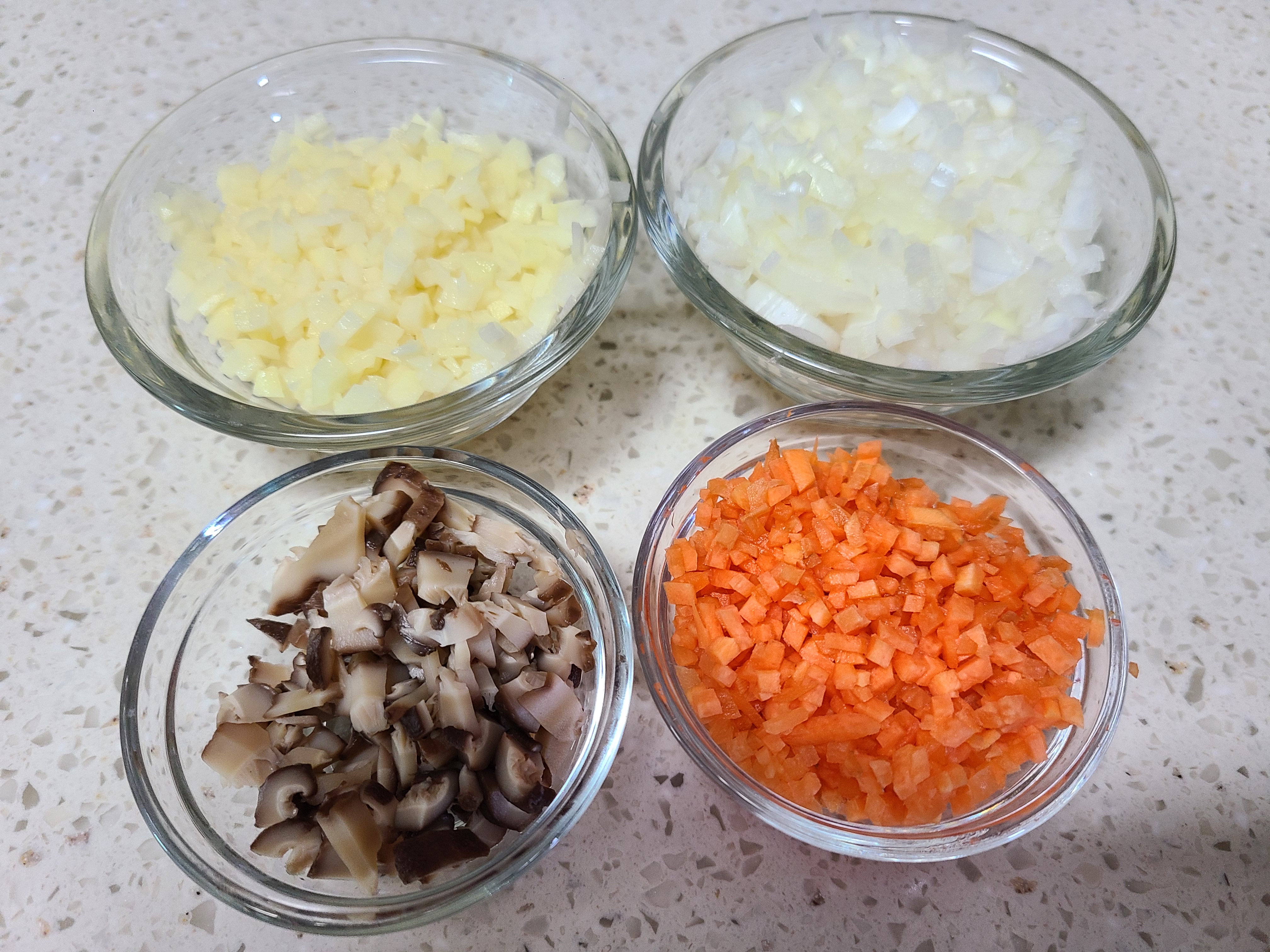 2. 바지락 죽에 넣을 야채를 준비하는데 호박이 없어 감자로 대신했다.(집에 있는 야채로 준비하면 된다.)
