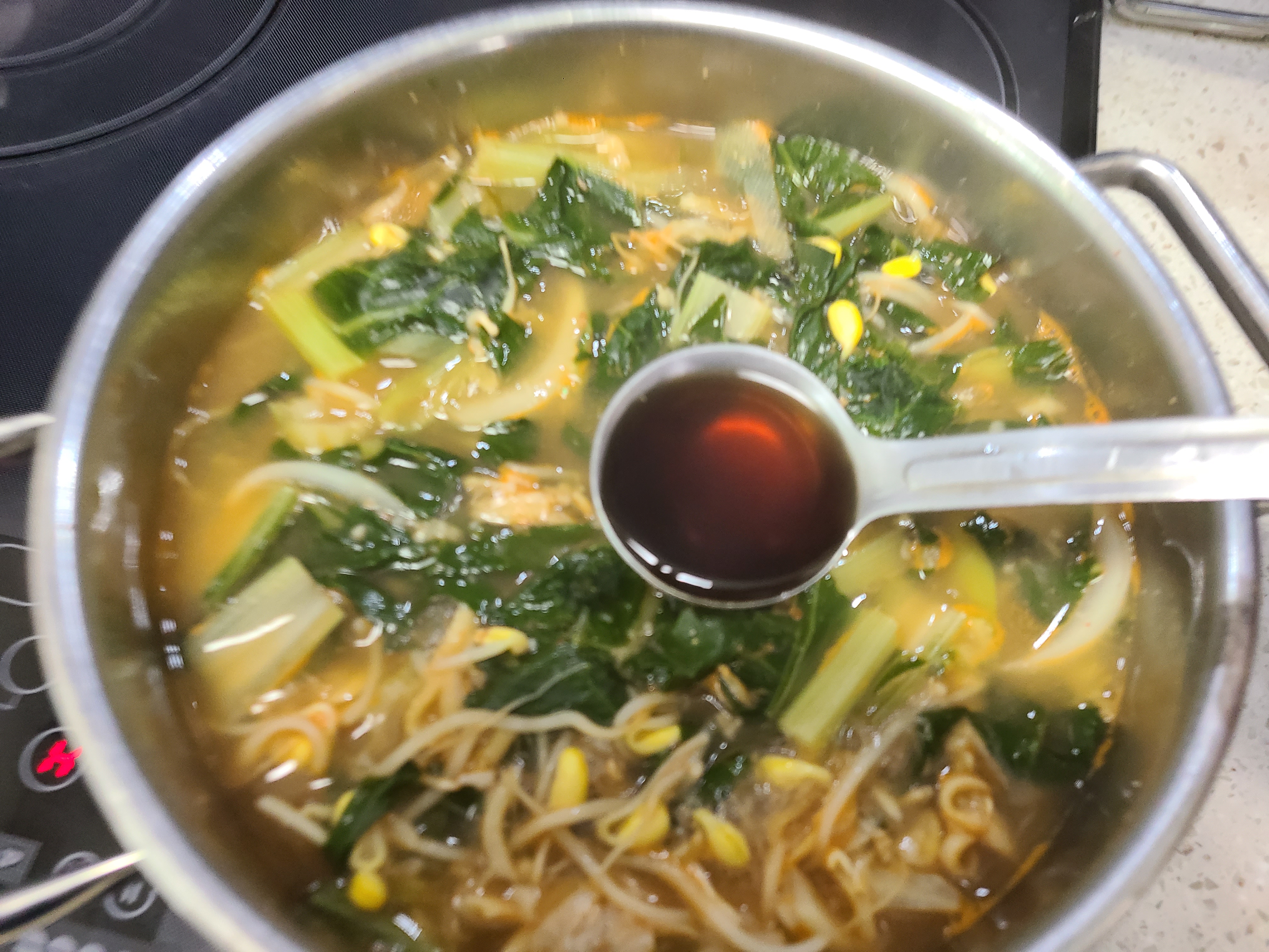 4. 콩나물이 한 줌이 있어 국물이 시원하라고 넣어주었는데 없으면 생략해도 된다.