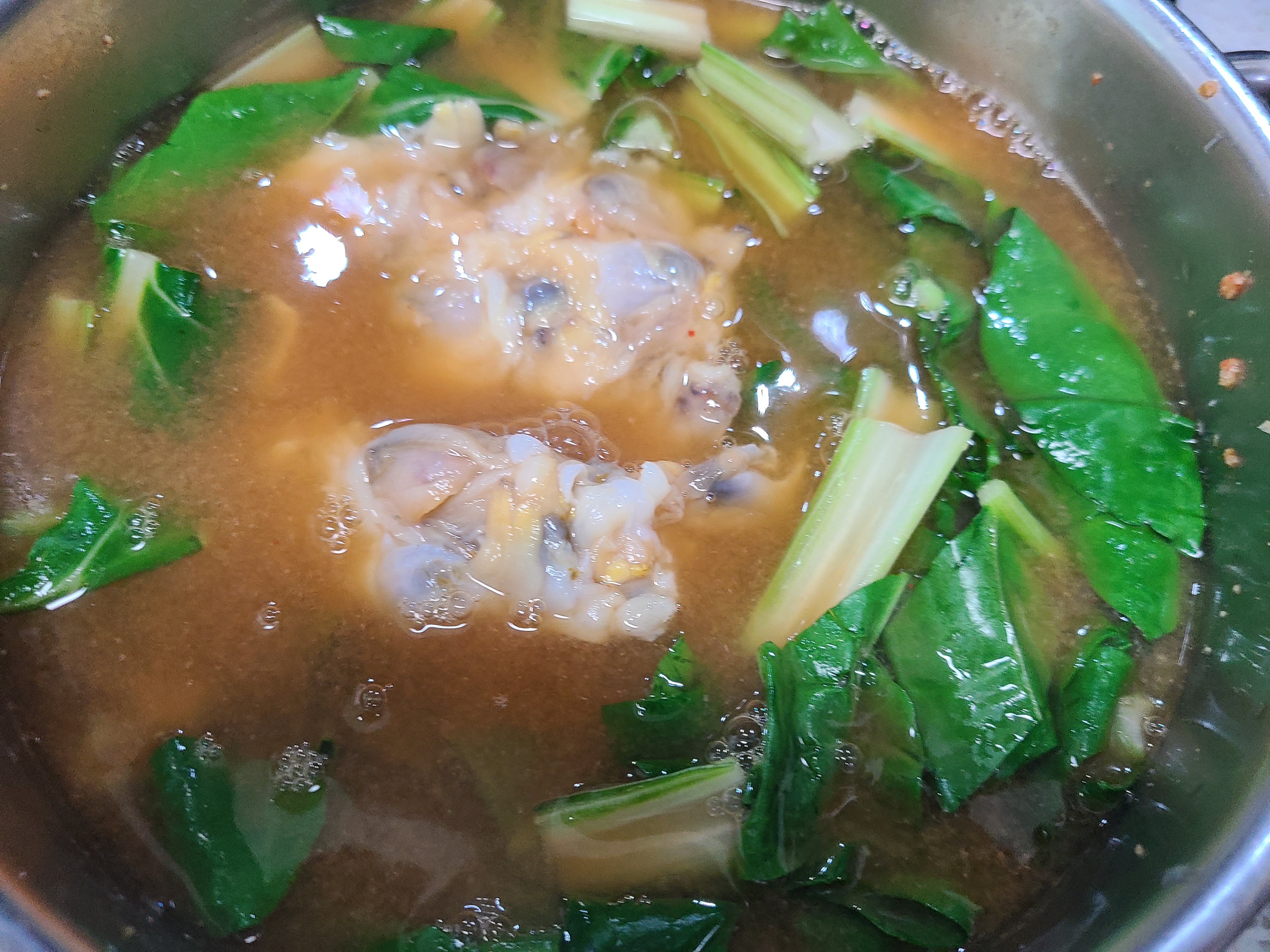 바지락을 넣은 근대 된장국이 시원하면서도 달큼하다. 바지락 식감이 쫄깃하다.