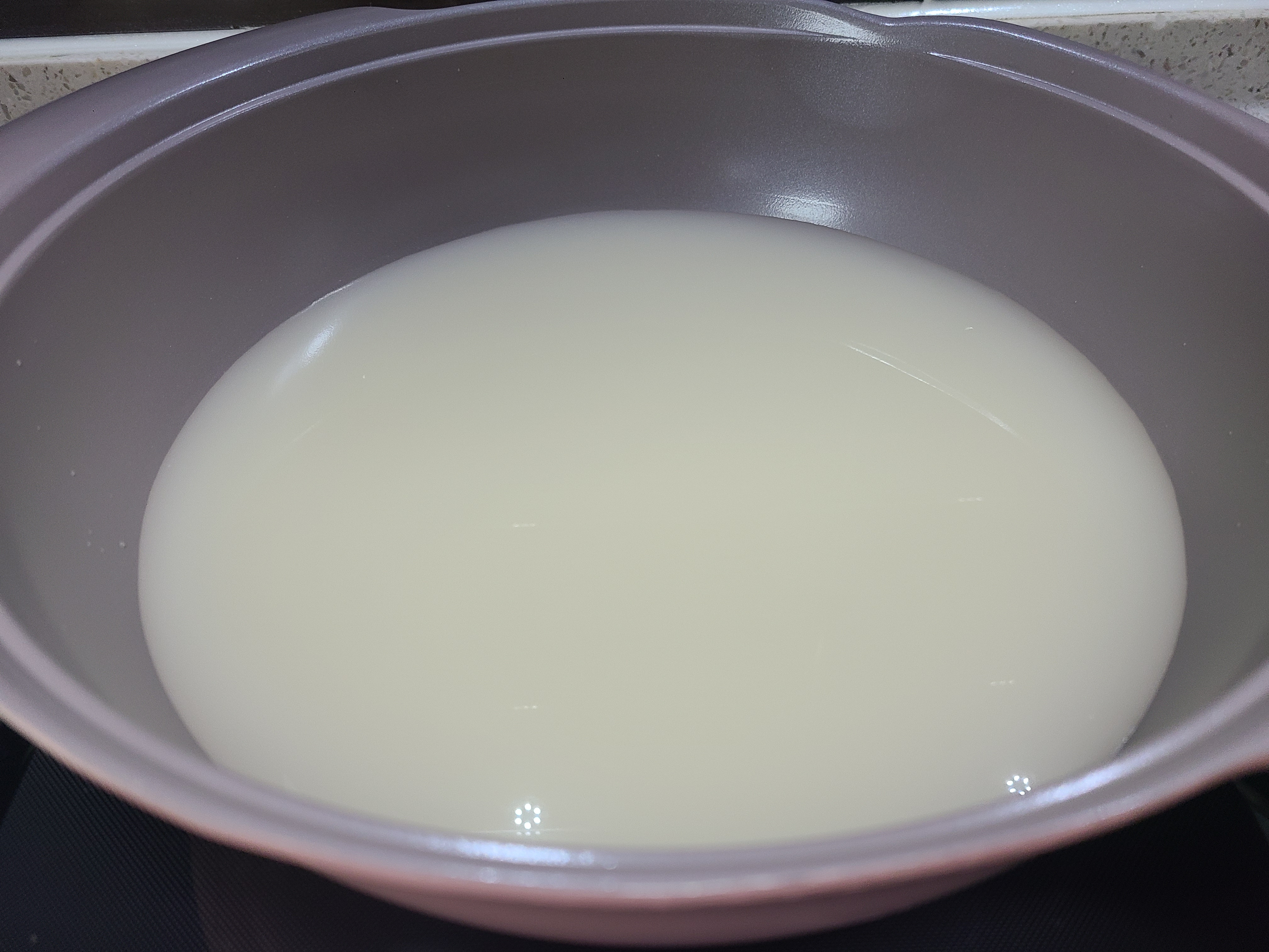 1. 명절에 끓여놓은 육수 1리터를 전골냄비에 넣고 먼저 끓여준다.(끓여놓은 육수가 없어 시판하는 사골곰탕 500g에 생수 500ml를 넣었다.)