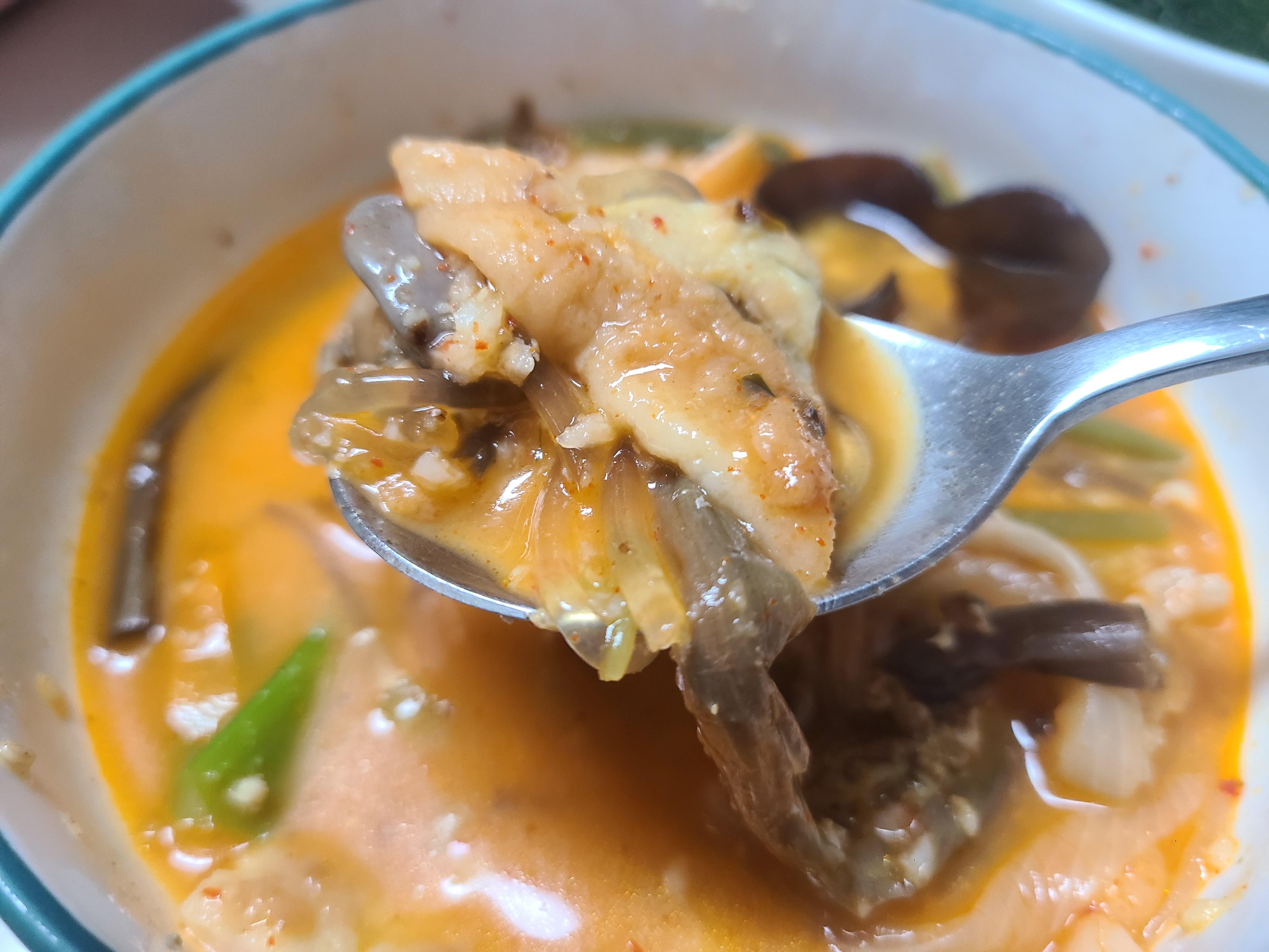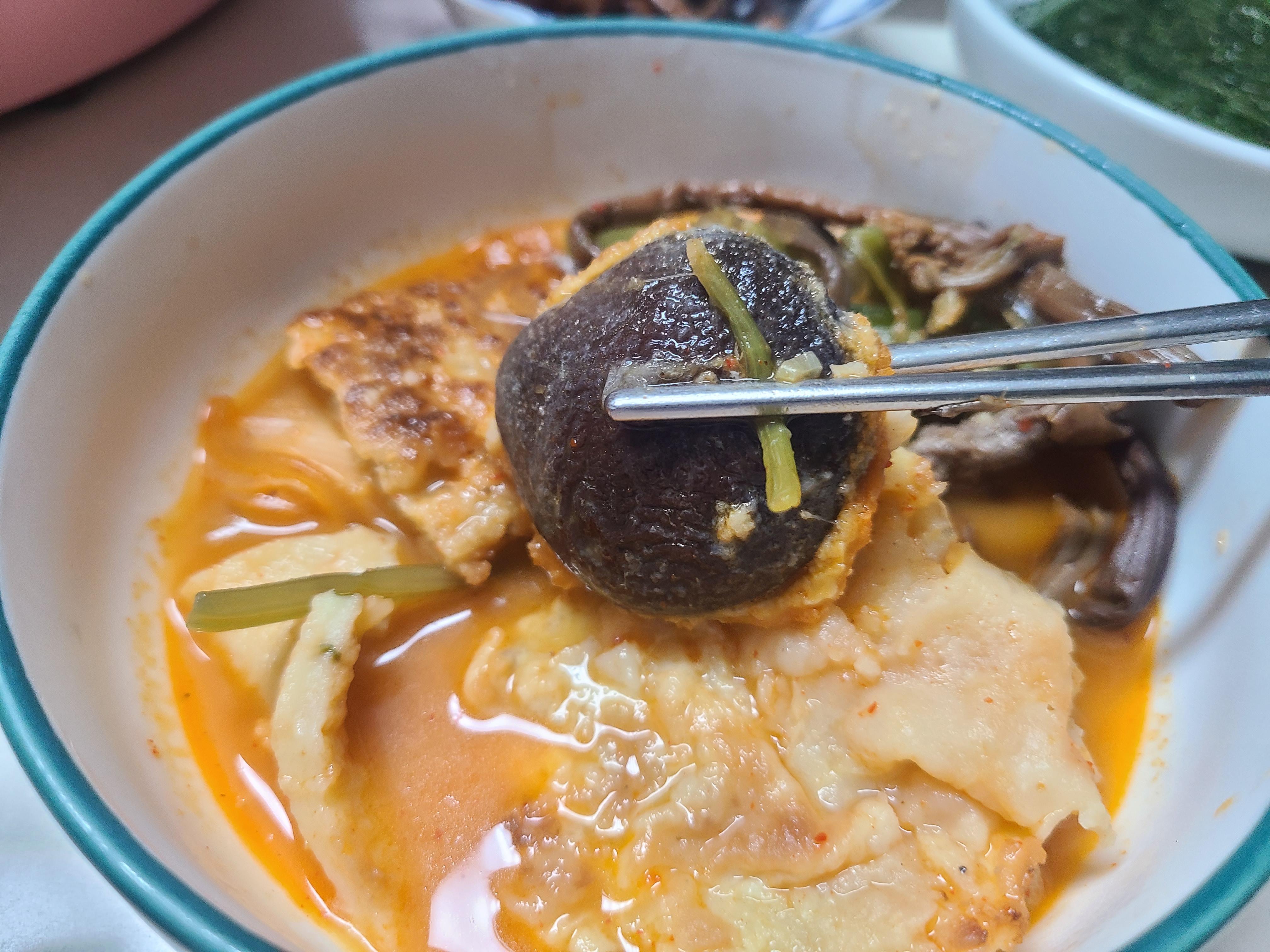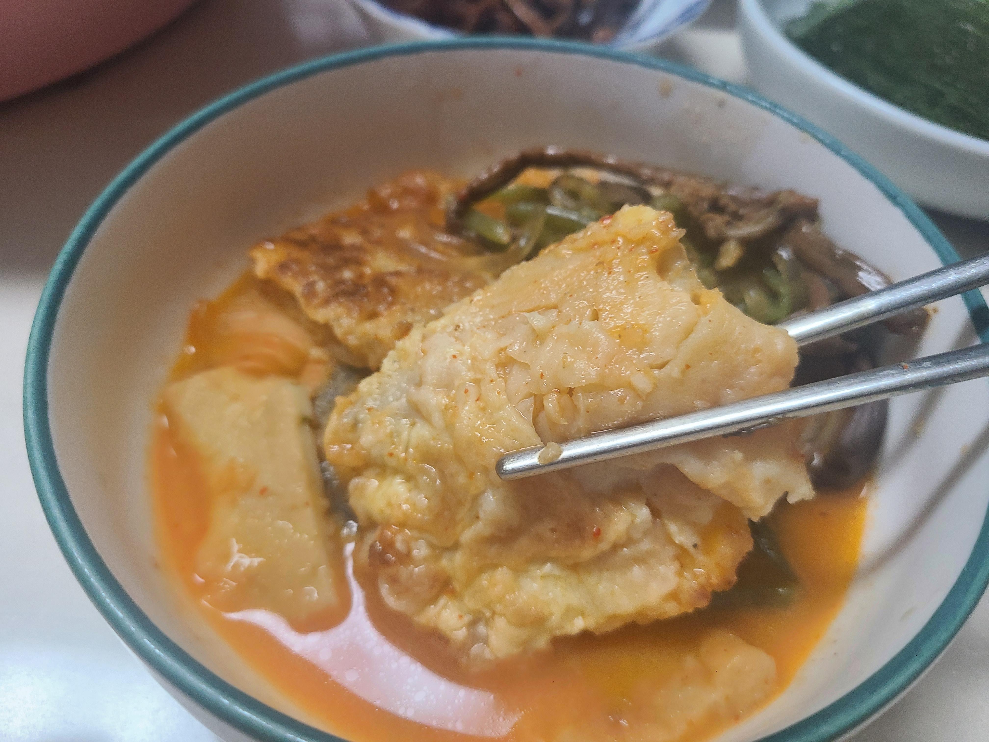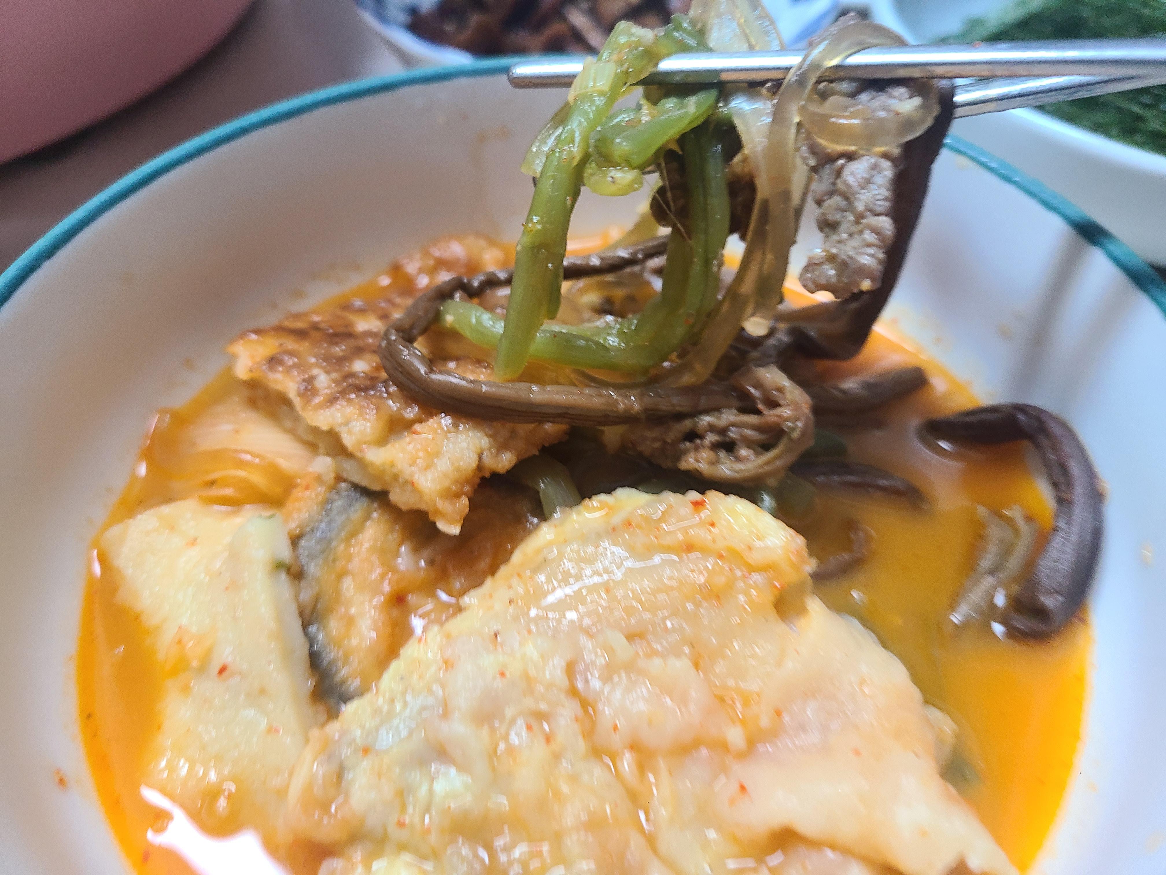 전의 모양이 크게 흐트러지지 않았고 전골에 넣었기에 아주 부드럽다.
