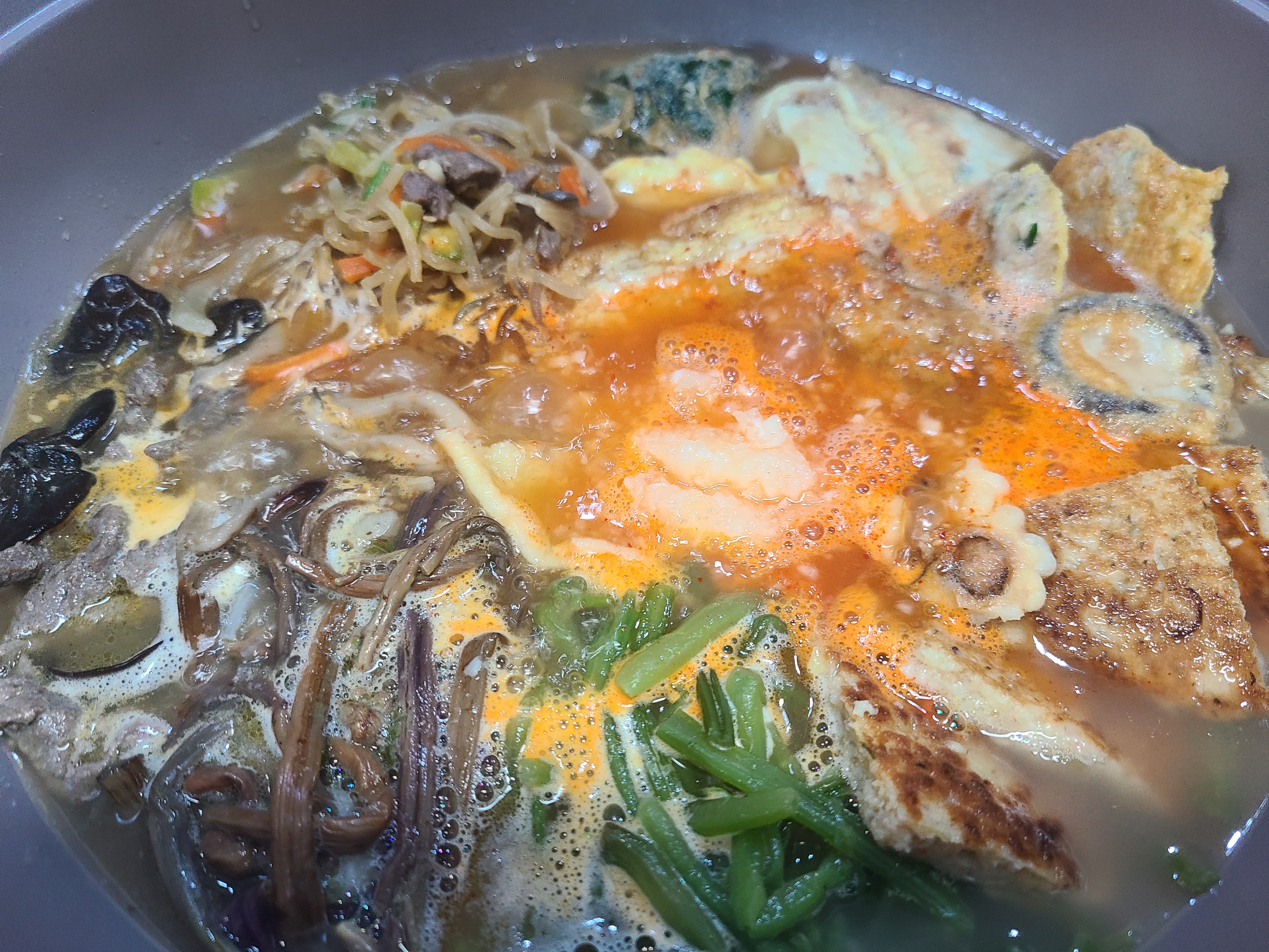 시댁 식구들이 일찍 돌아가서 명절 연휴 동안에는 잡탕찌개를 끓여먹지 못하고 며칠이 지나서야 끓여 먹게 되었다.