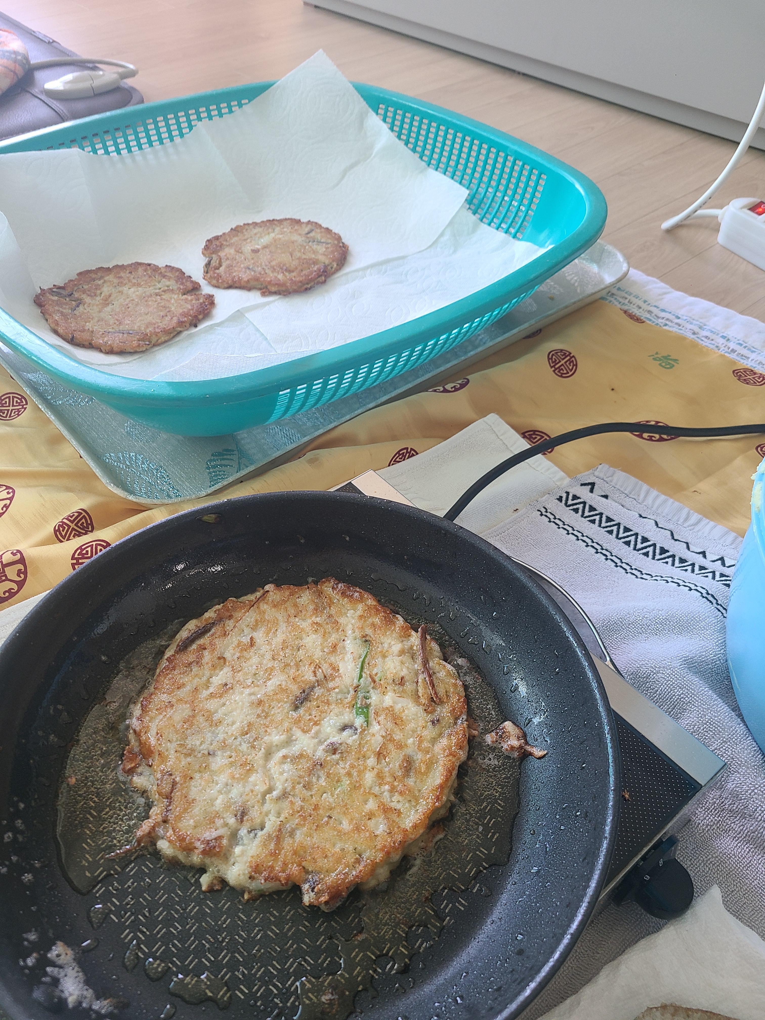 명절 음식을 많이 해서 냉장고가 가득 찼고, 냉장고에 넣지 못한 전이 상할까 봐 명절 기간 전을 여러 번 반복해서 프라이팬에 굽게 했다. 그러다 보니 나중에는 전이 뻣뻣해져서 먹기가 나빴는데 잡탕찌개를 끓이면 순식간에 다 먹을 수 있었다.
