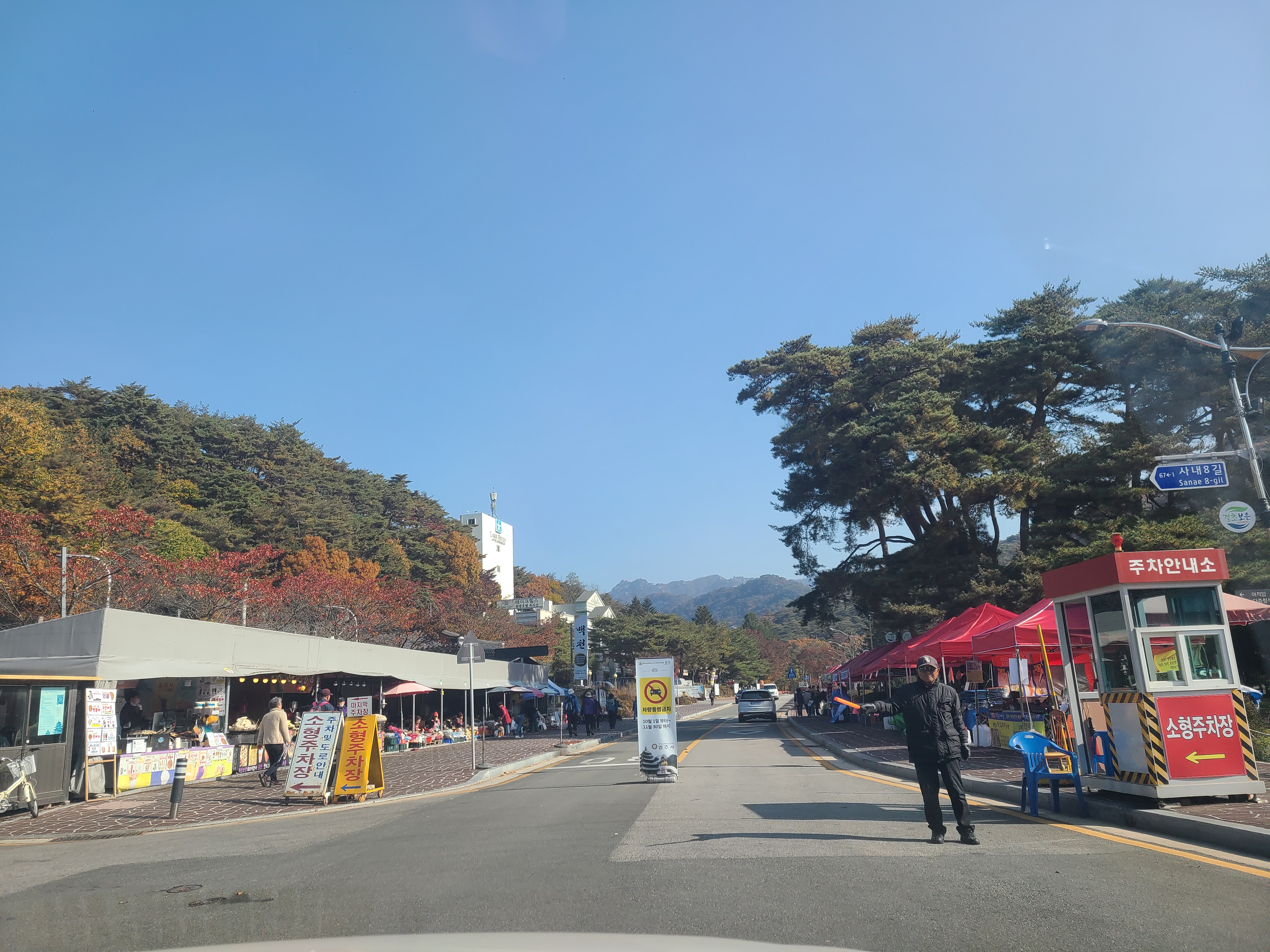 속리산 법주사 세조길을 가기 위해 법주사 소형 주차장을 목적지로 설정하고 도착하니 직진하지 못하게 차단되어 있는 입구 오른쪽에 소형 주차장이 있었다.