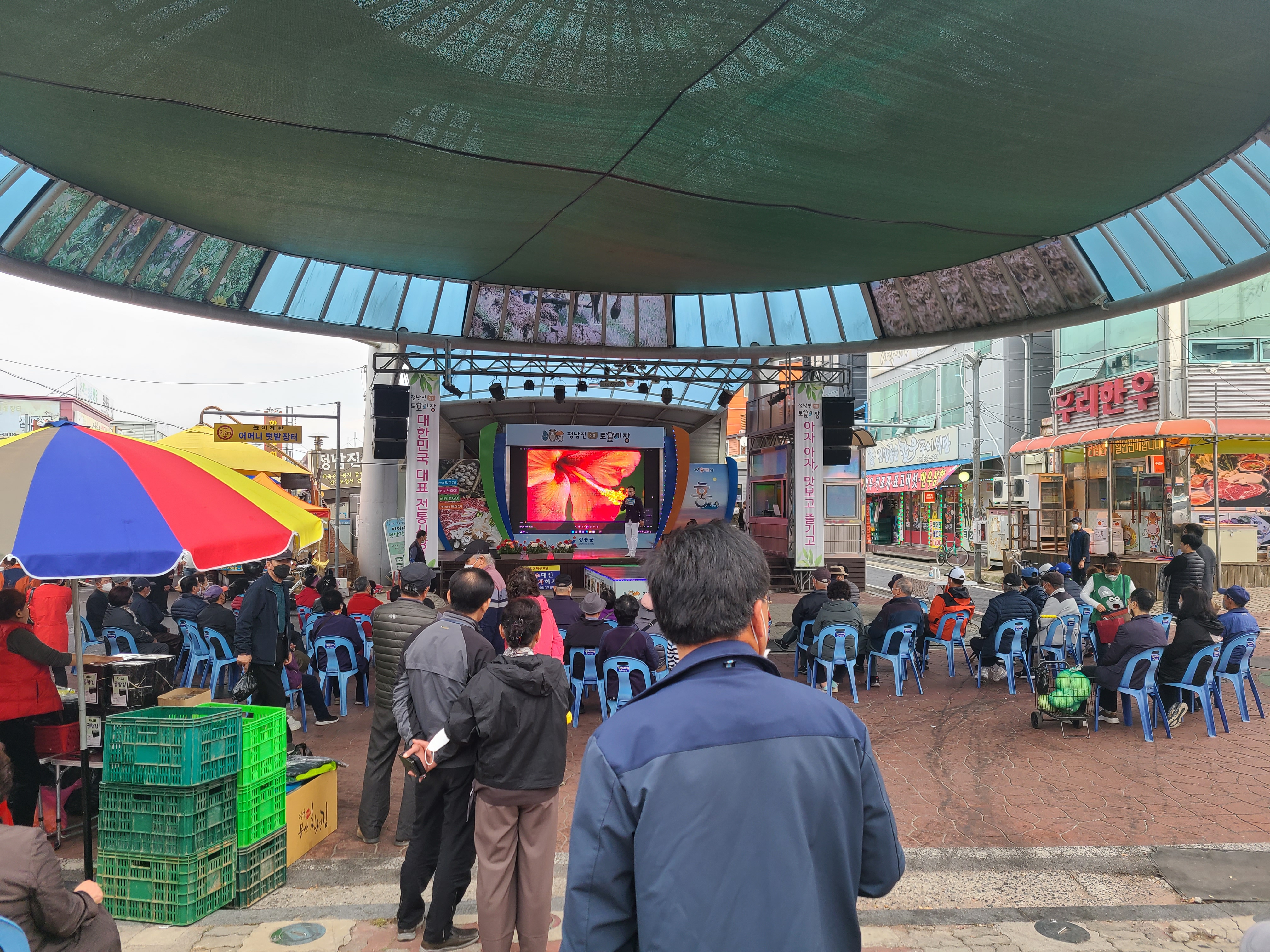 장흥 삼합으로 점심을 맛있게 먹고 나오니 장흥 토요시장 중앙에 있는 공연장에서 공연이 시작되고 있었다.