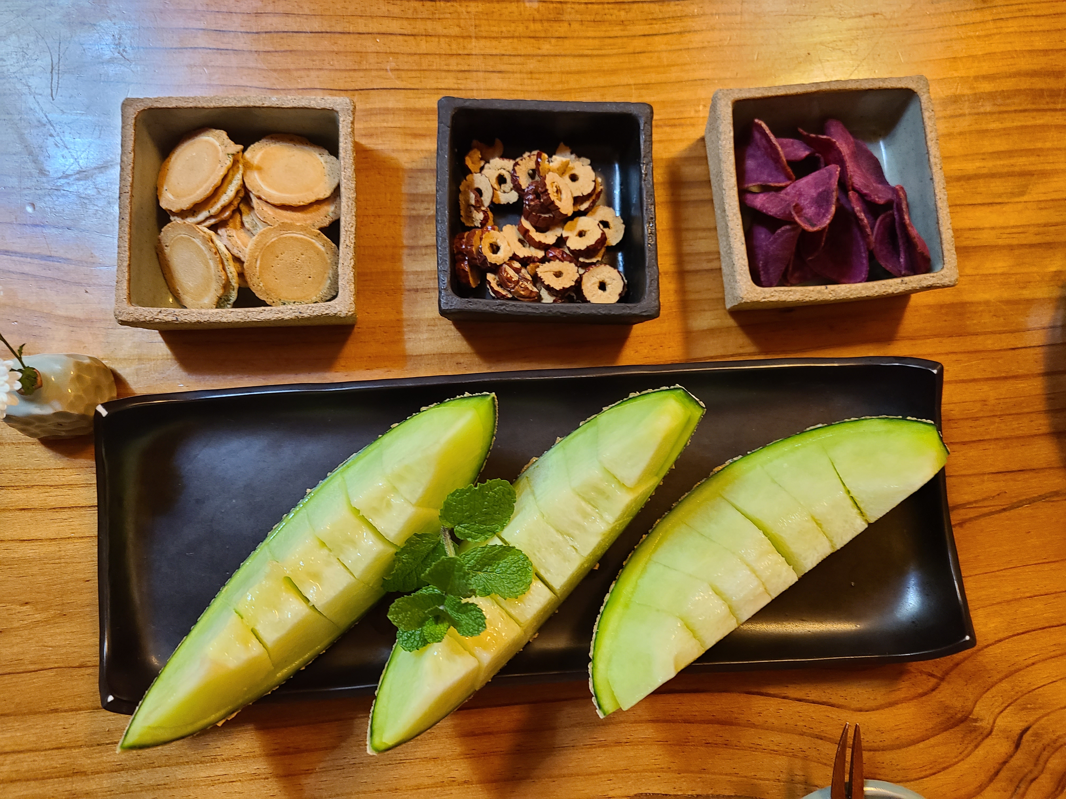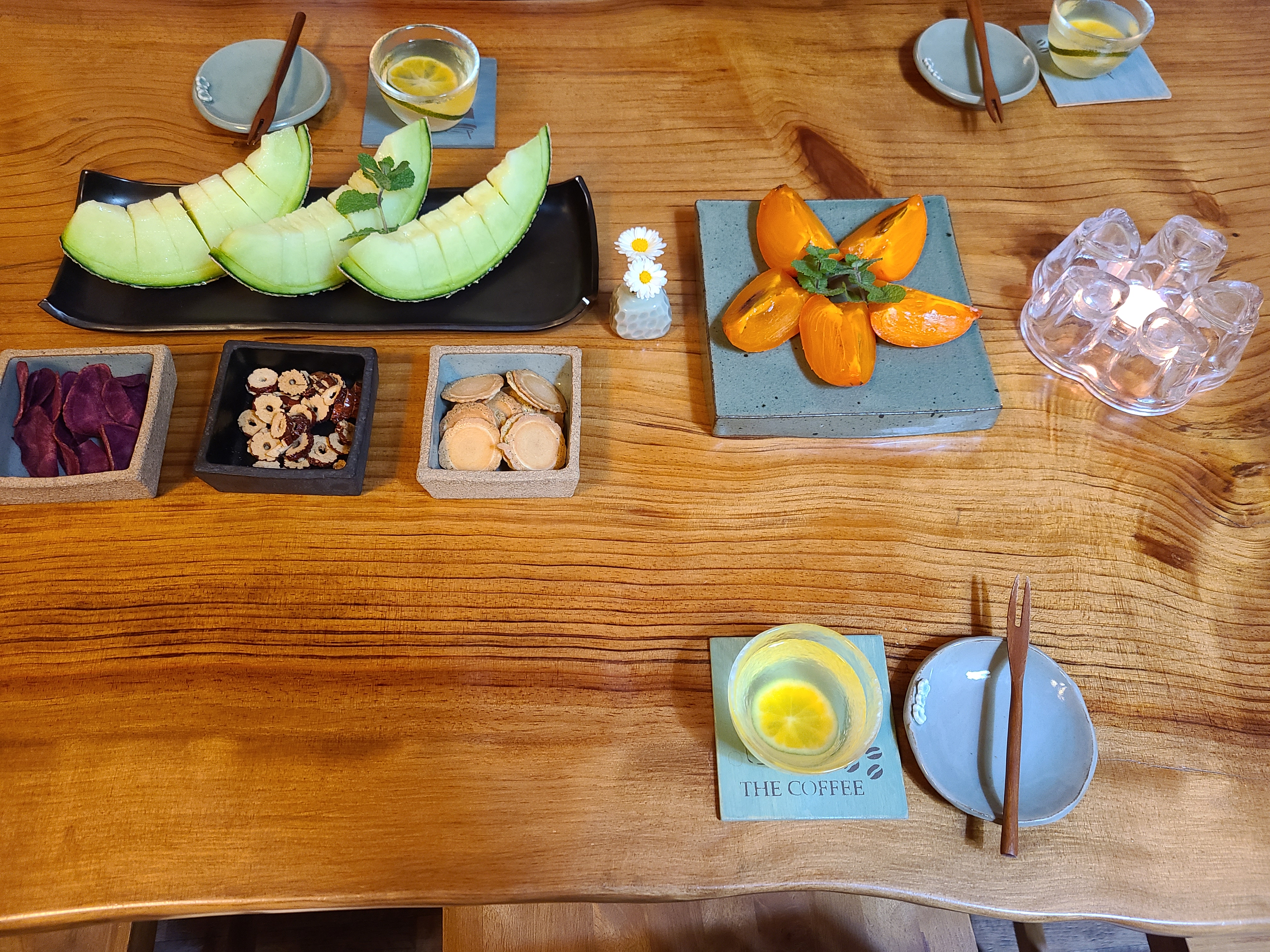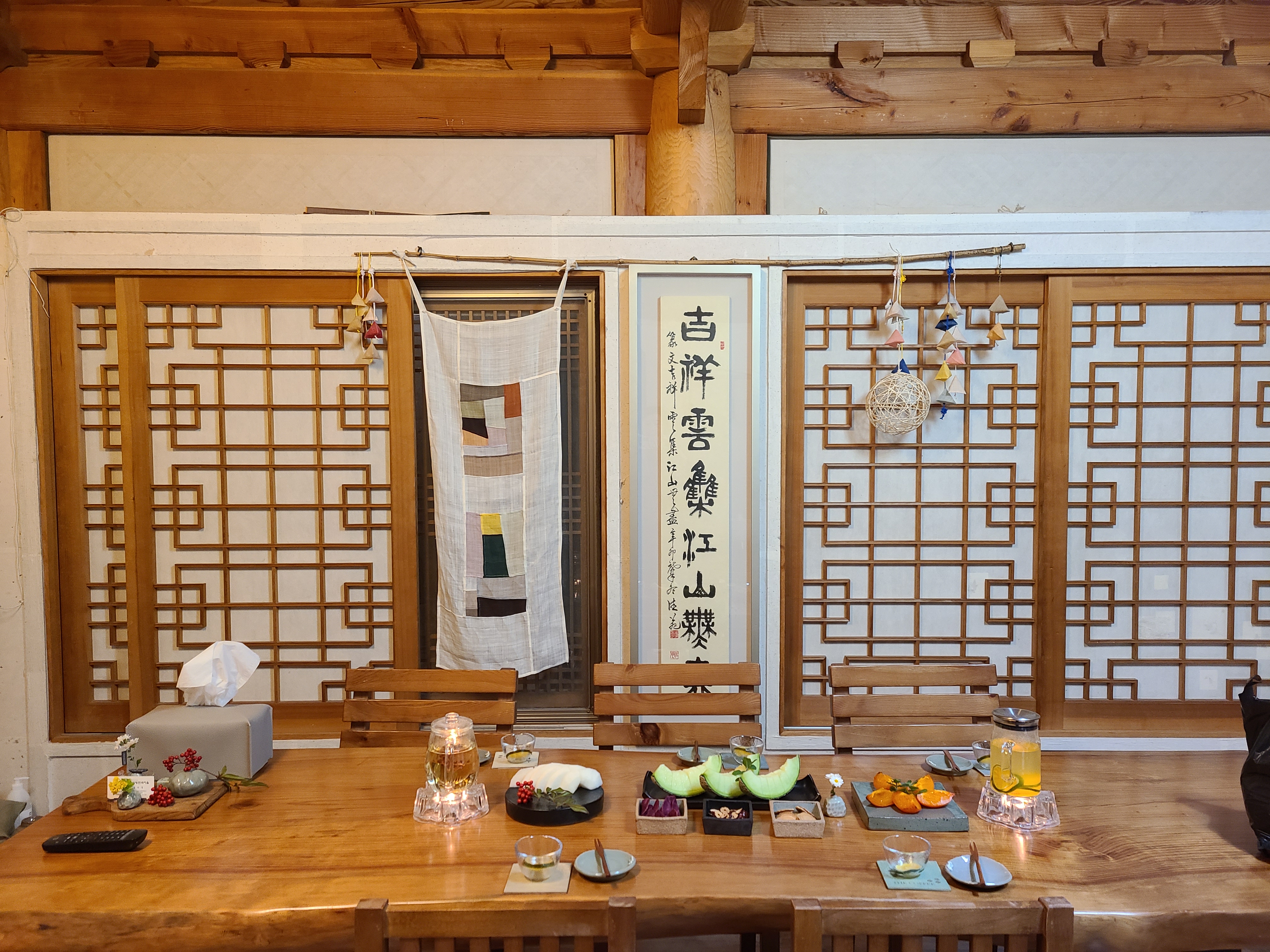 일행들은 집안의 따뜻한 공기와 거실 전체 분위기, 그리고 정성껏 준비해놓은 다과상에 감탄을 했다.