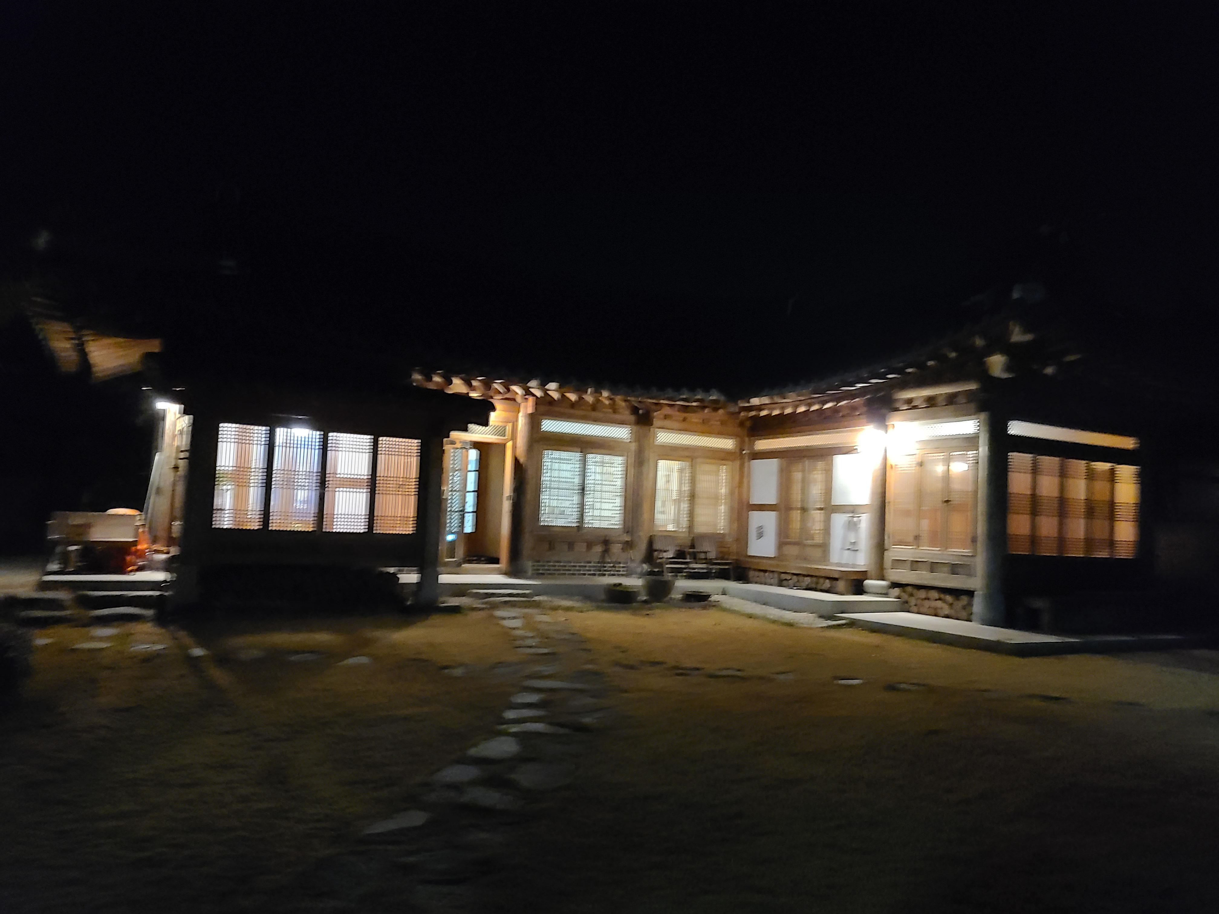 첫날 여행을 마치고 월출산 아래에 잇는 강진 달빛한옥마을 내에 수류화개에 도착한 시간은 저녁 6시 50분경이었다. 이미 마을은 어둠이 내렸고 수류화개에는 아직 도착하지 않은 우리를 위해 불을 환히 밝혀놓고 있었다.