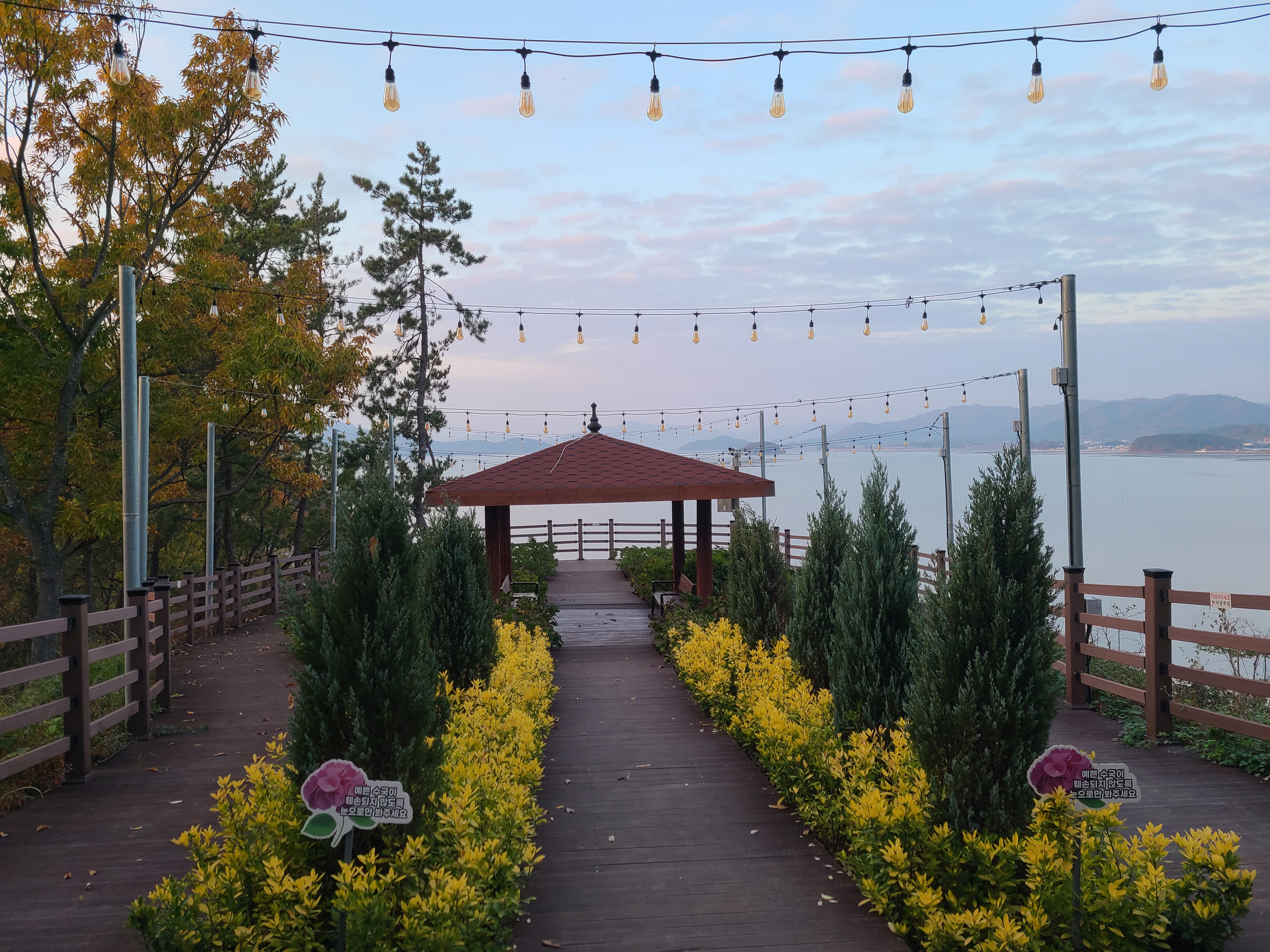 해가 지면서 주변이 어두워지기 시작했고 가우도 청자 다리에 조명이 켜지기 시작했다.