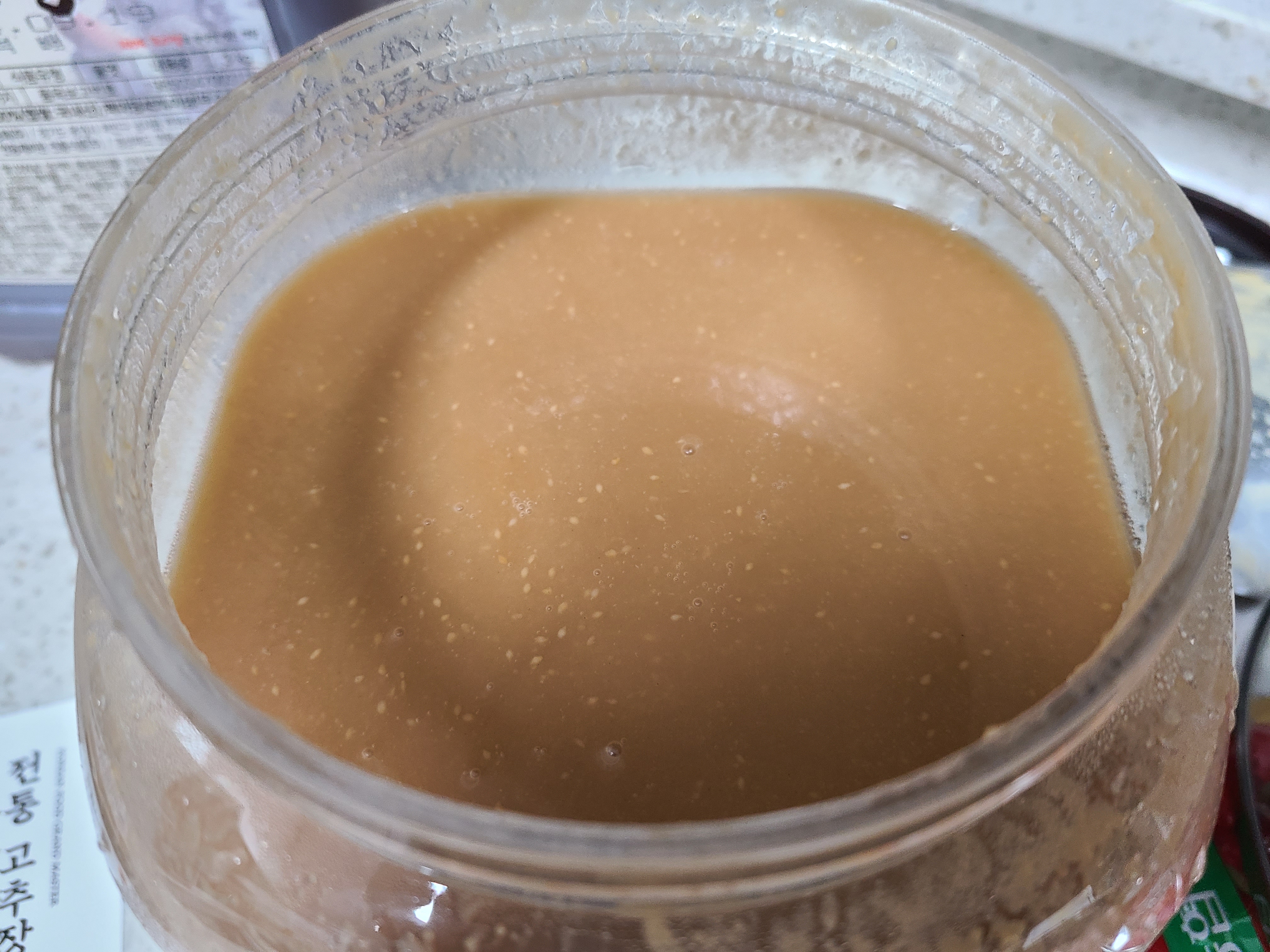 다음날 아침에 보니 고춧가루 망울이 전혀 없고 고운 고추장이 완성되어 있었다.