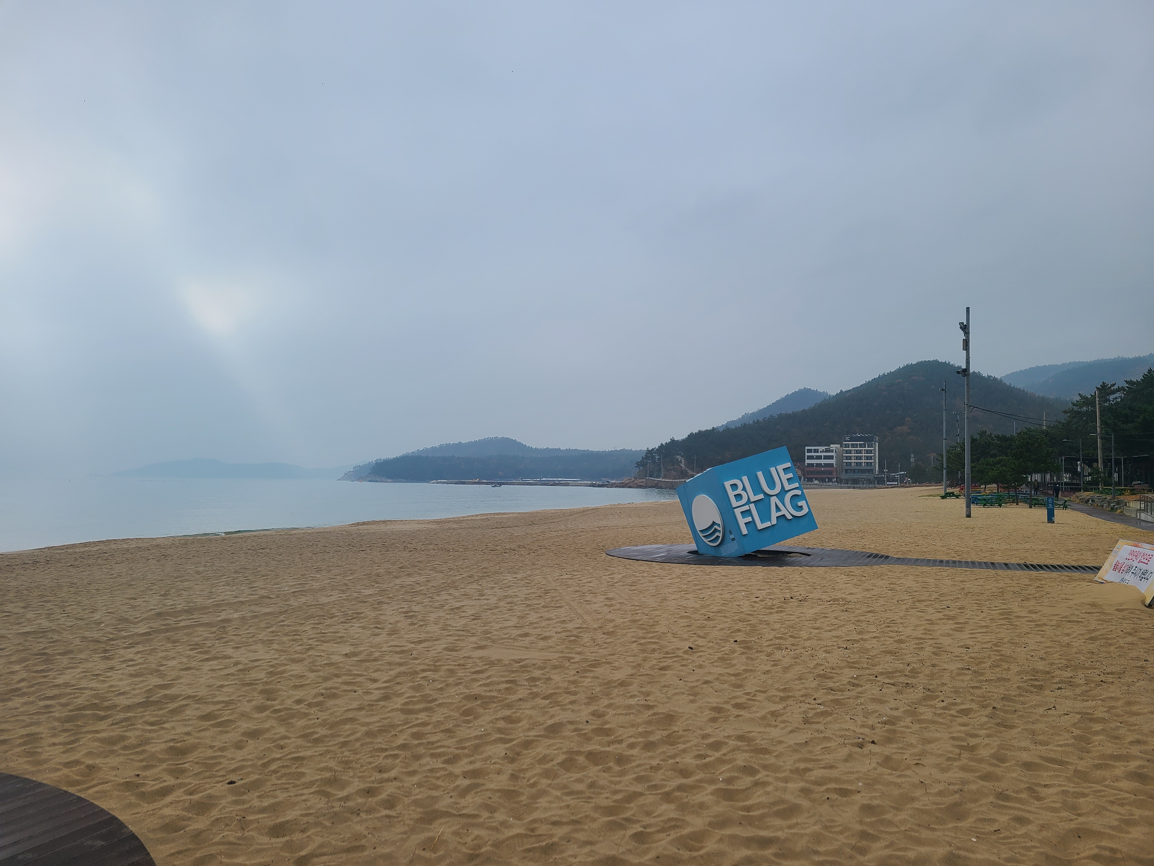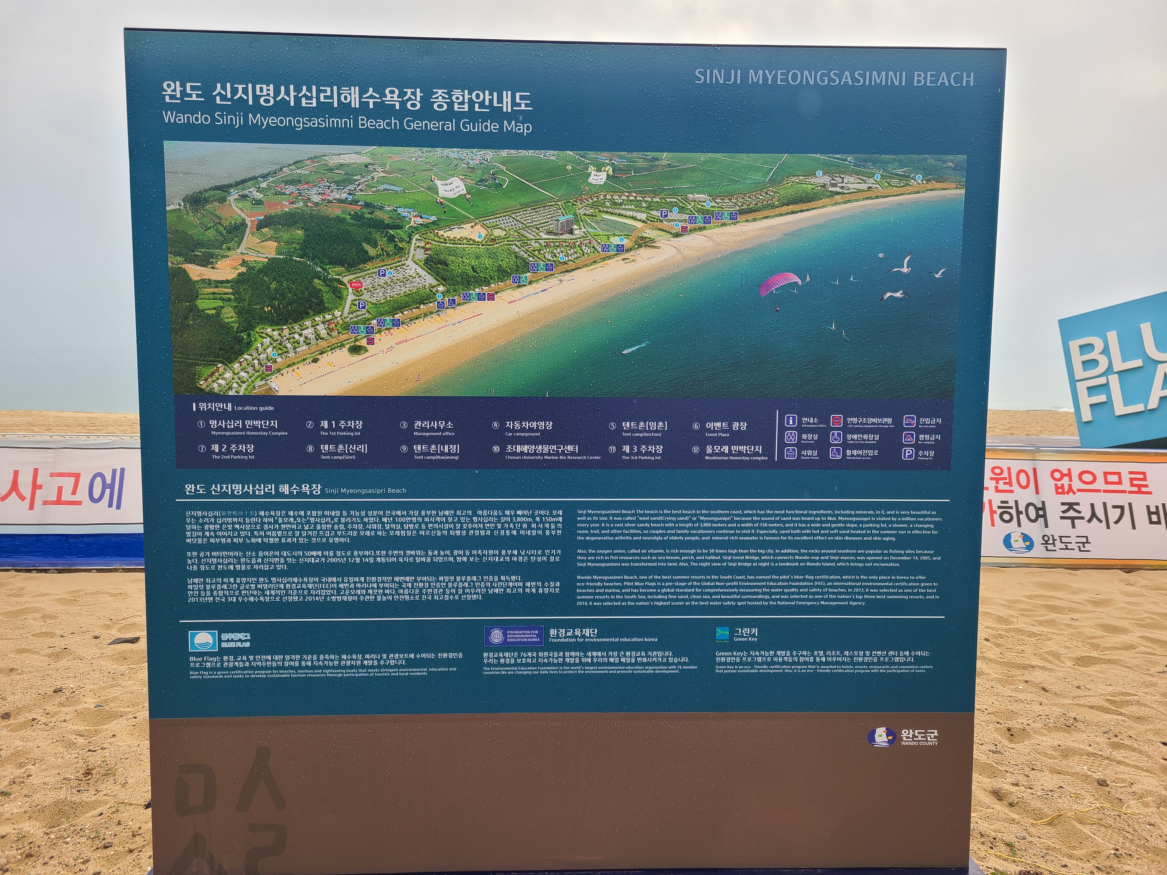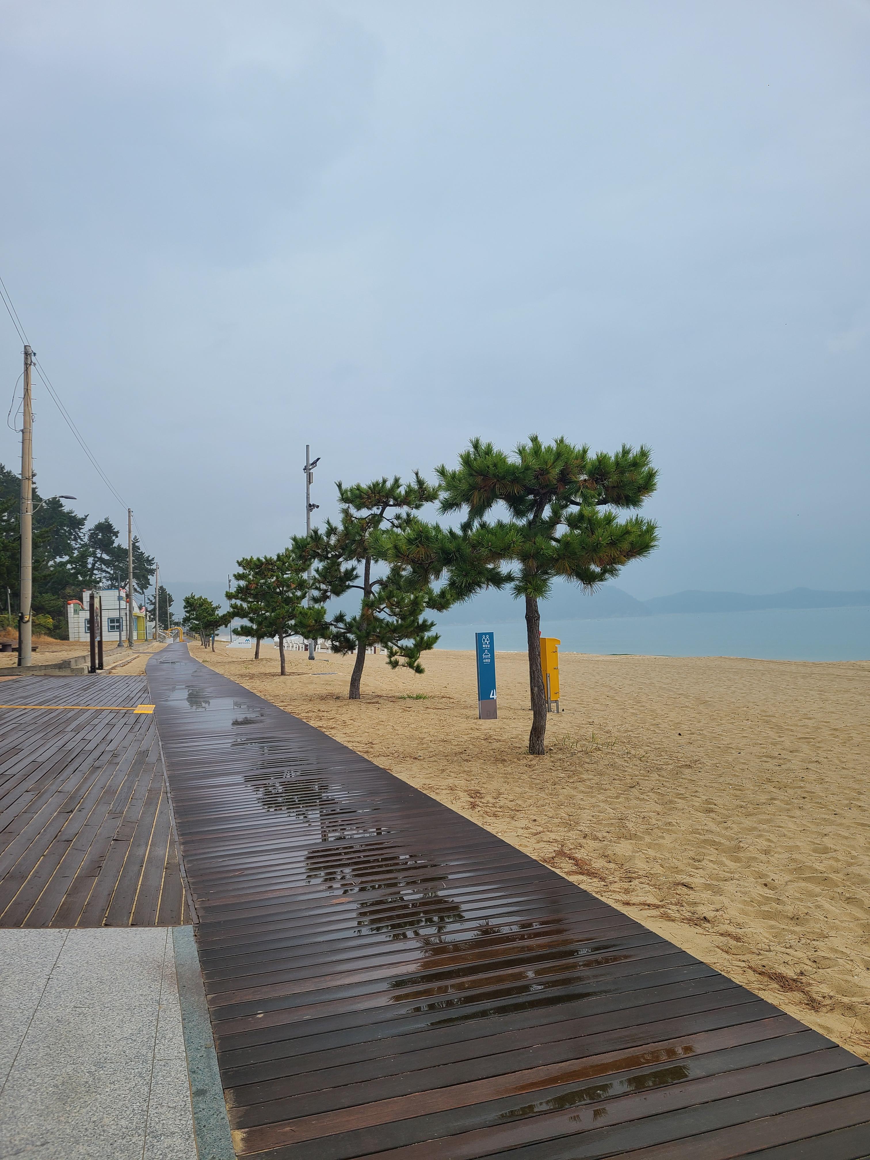 1시간을 넘게 걸려 신지명사십리 해수욕장에 도착했는데 장흥 토요시장에서 출발할 때보다 비가 더 내리고 있었다.