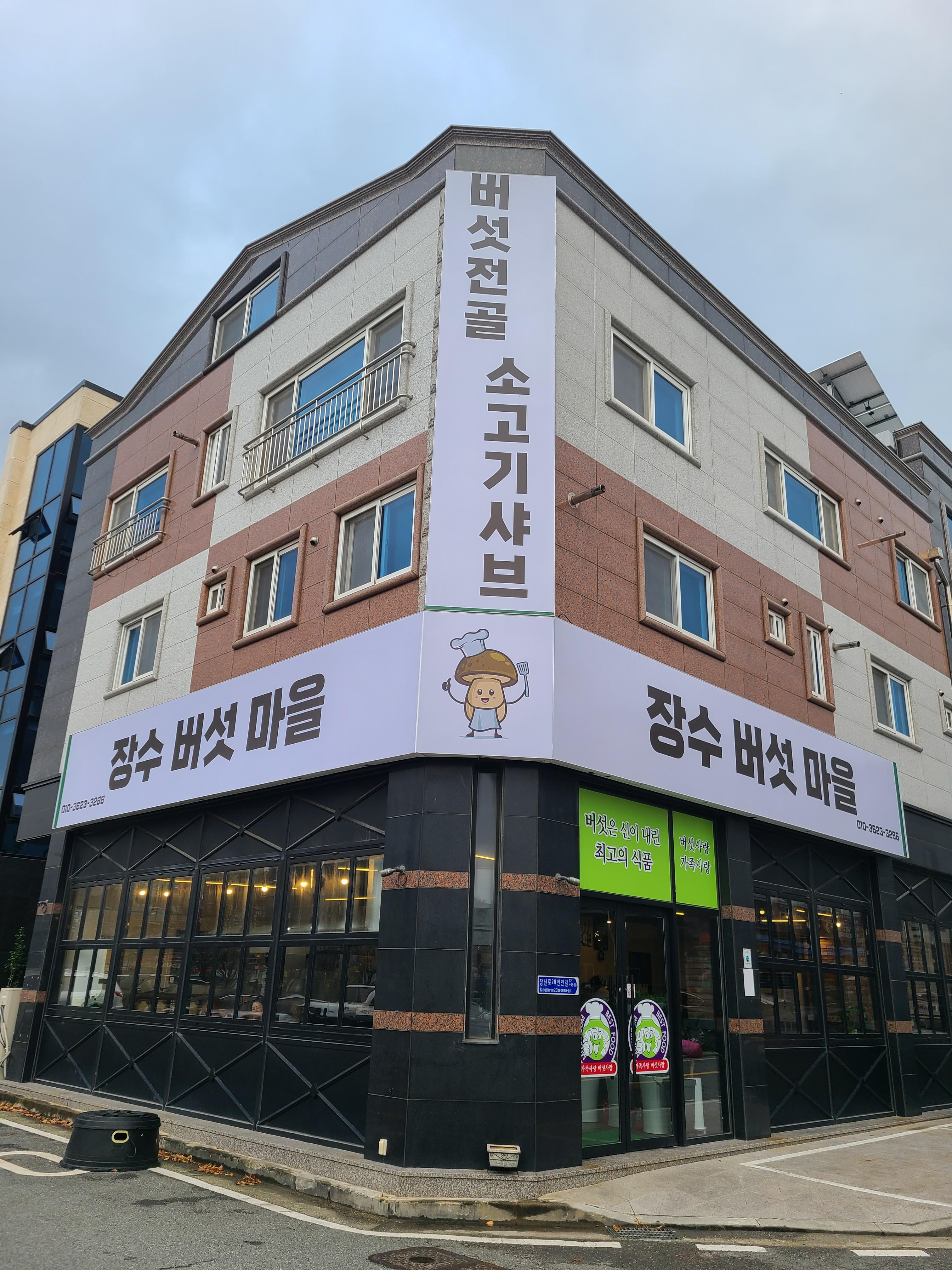 숙소에서 15분 정도 거리의 버섯전골 전문점인 장수버섯마을에 갔다.