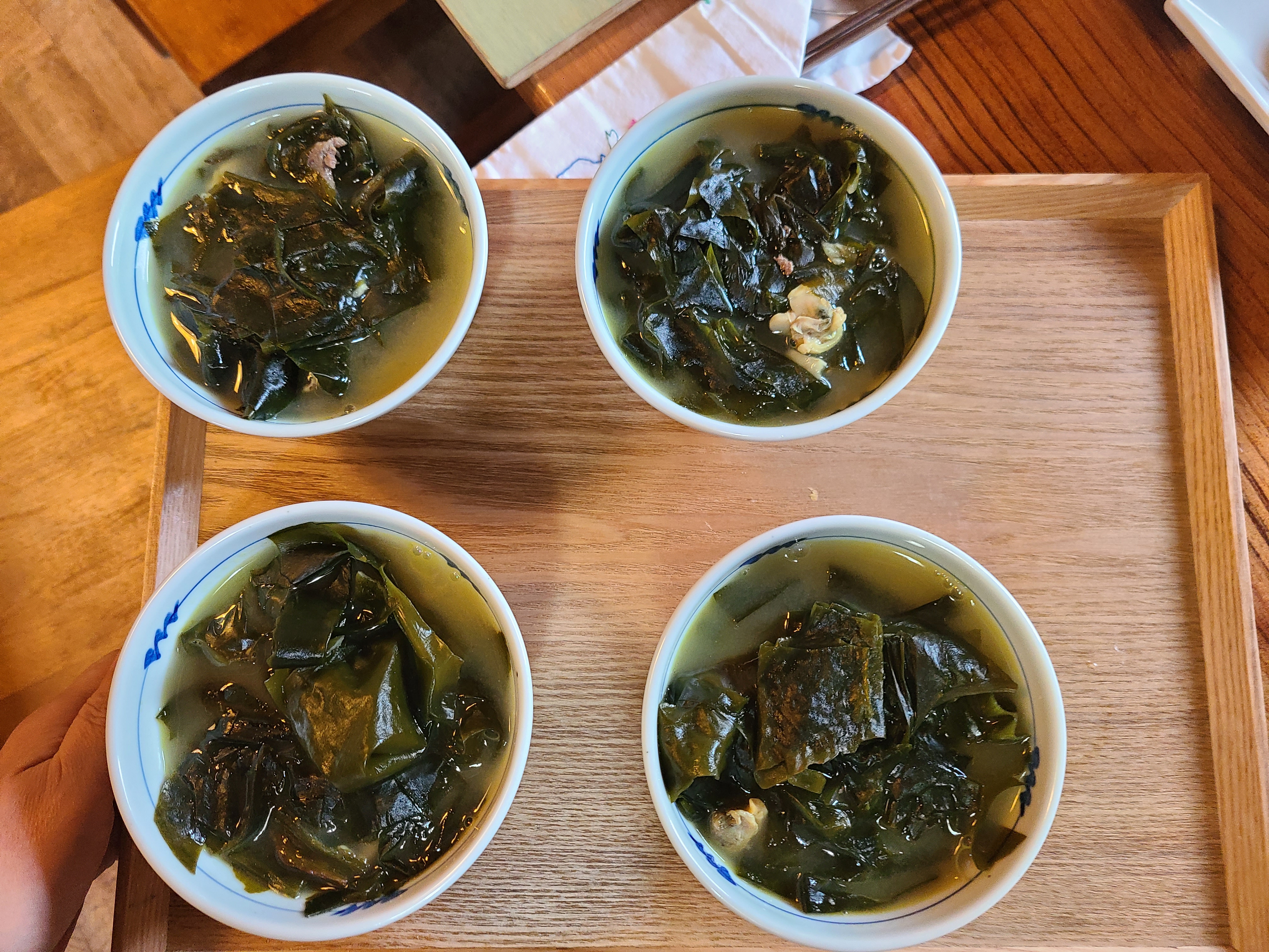 식탁에 앉으니 밥과 바자락을 넣은 소고기 미역국이 함께 나왔다. 정성이 가득한 아침상을 앞에 놓고 감탄을 하면서 너무도 맛있게 아침을 먹었다.