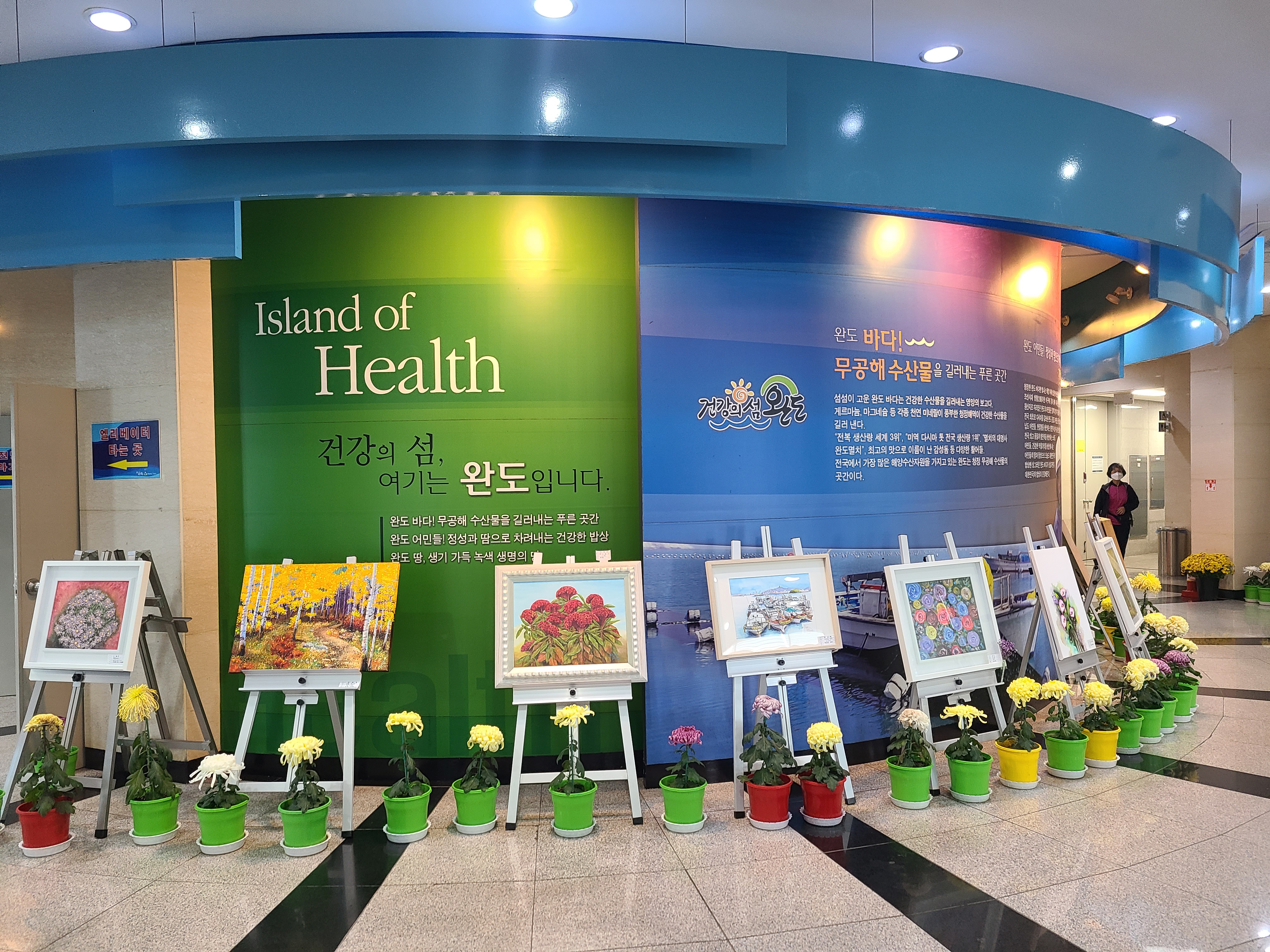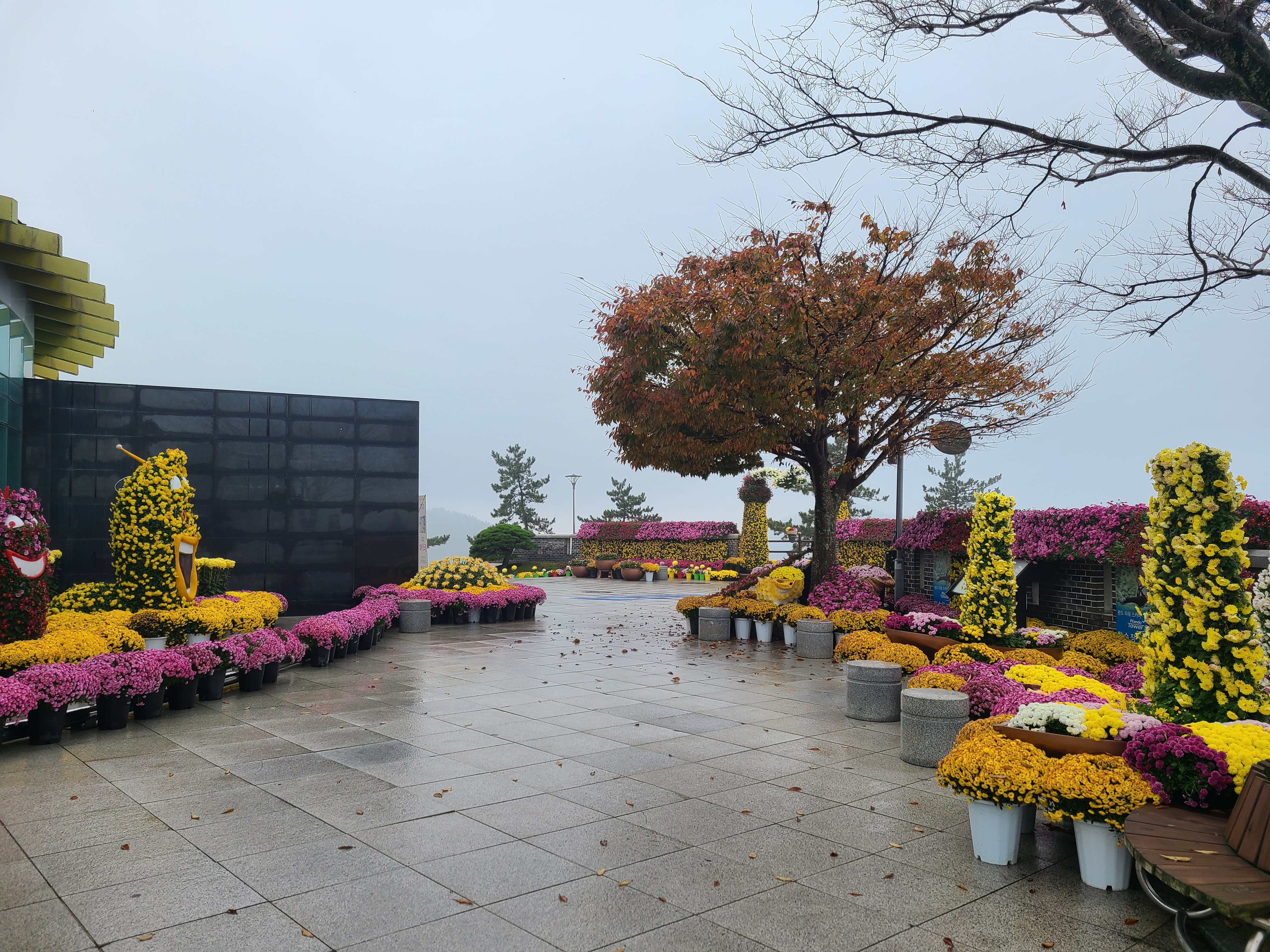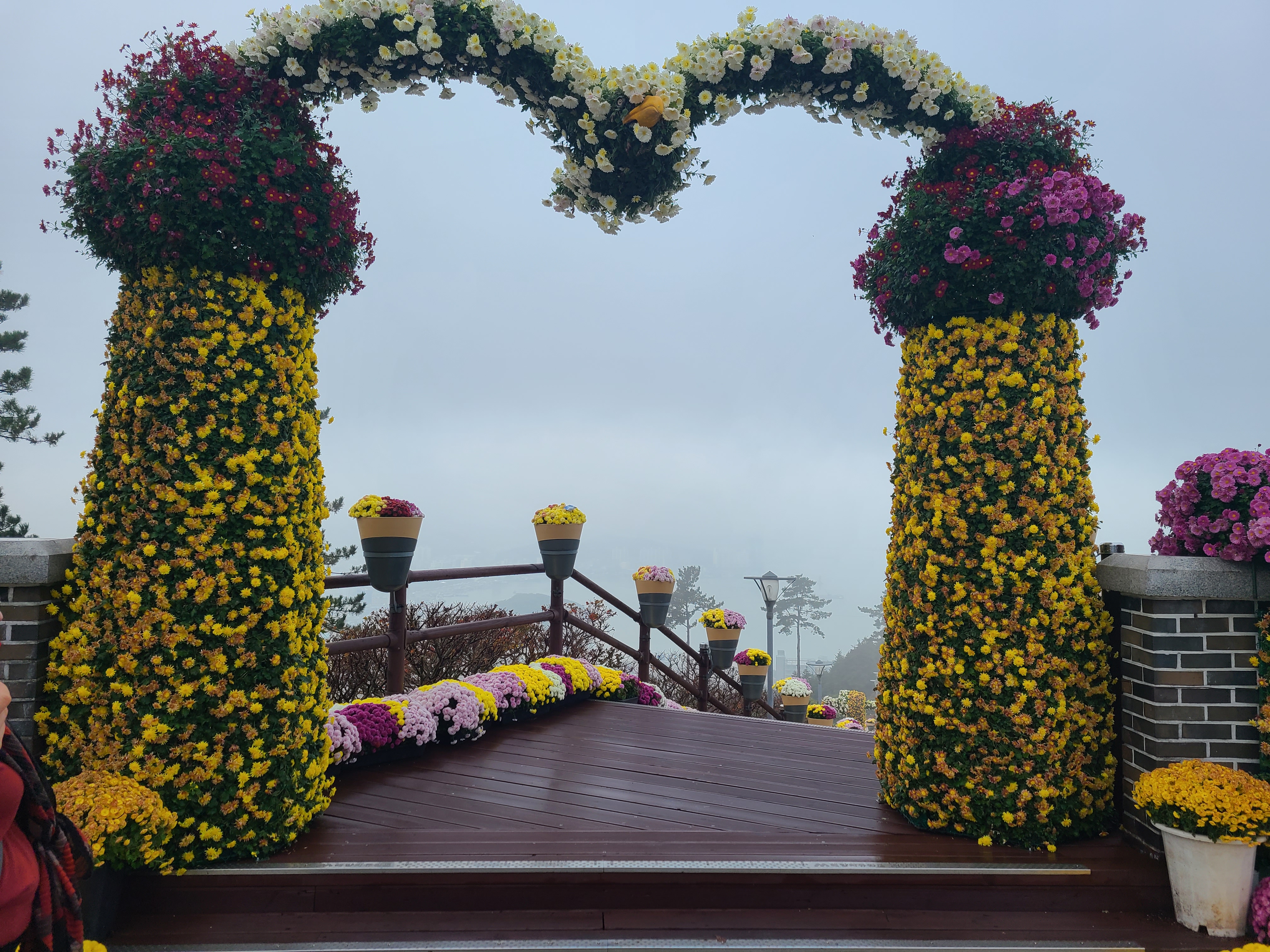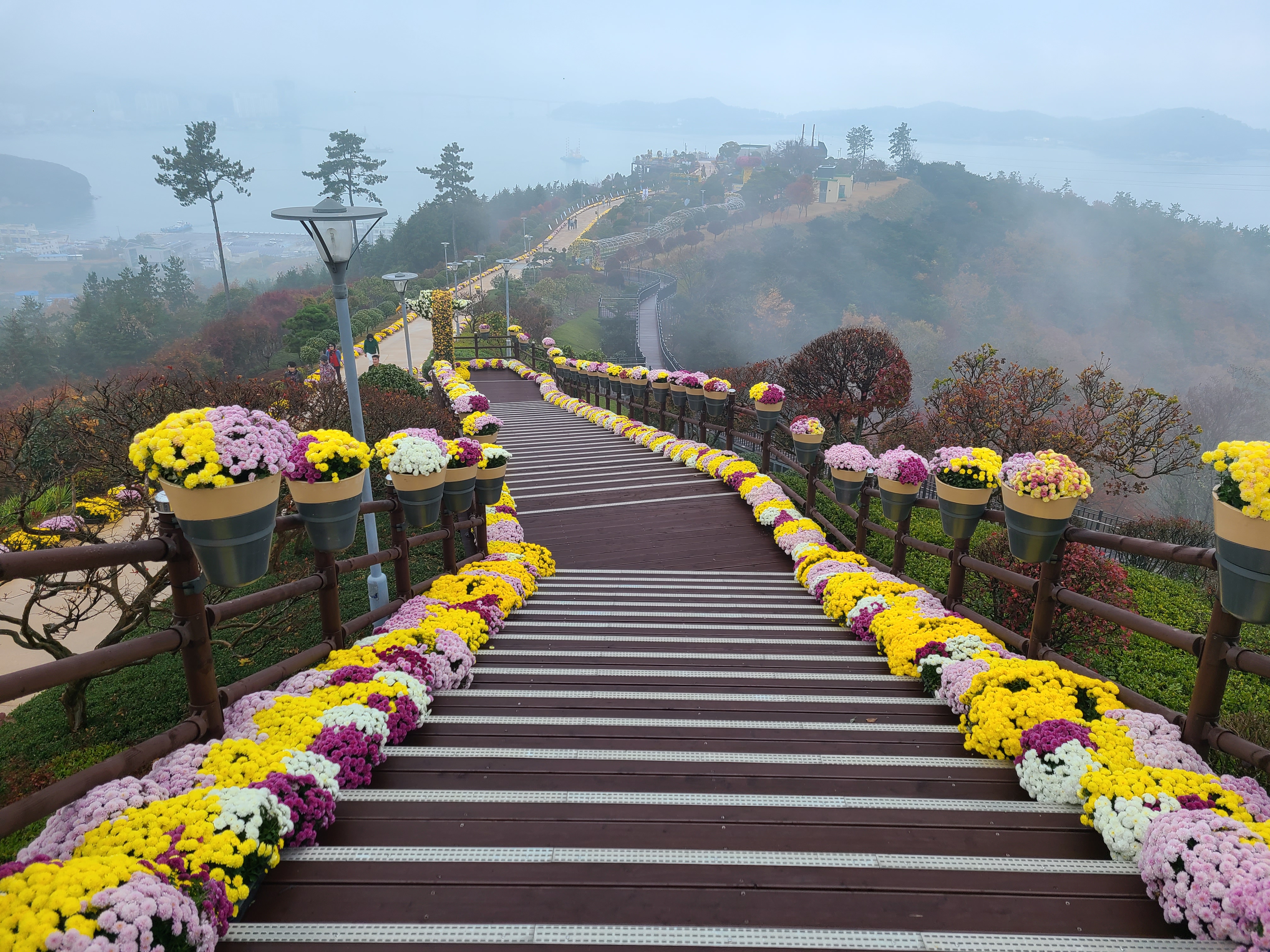 완도타워주차장에 차를 세우고 걸어 올라가는 길에 국화가 가득 있었다.