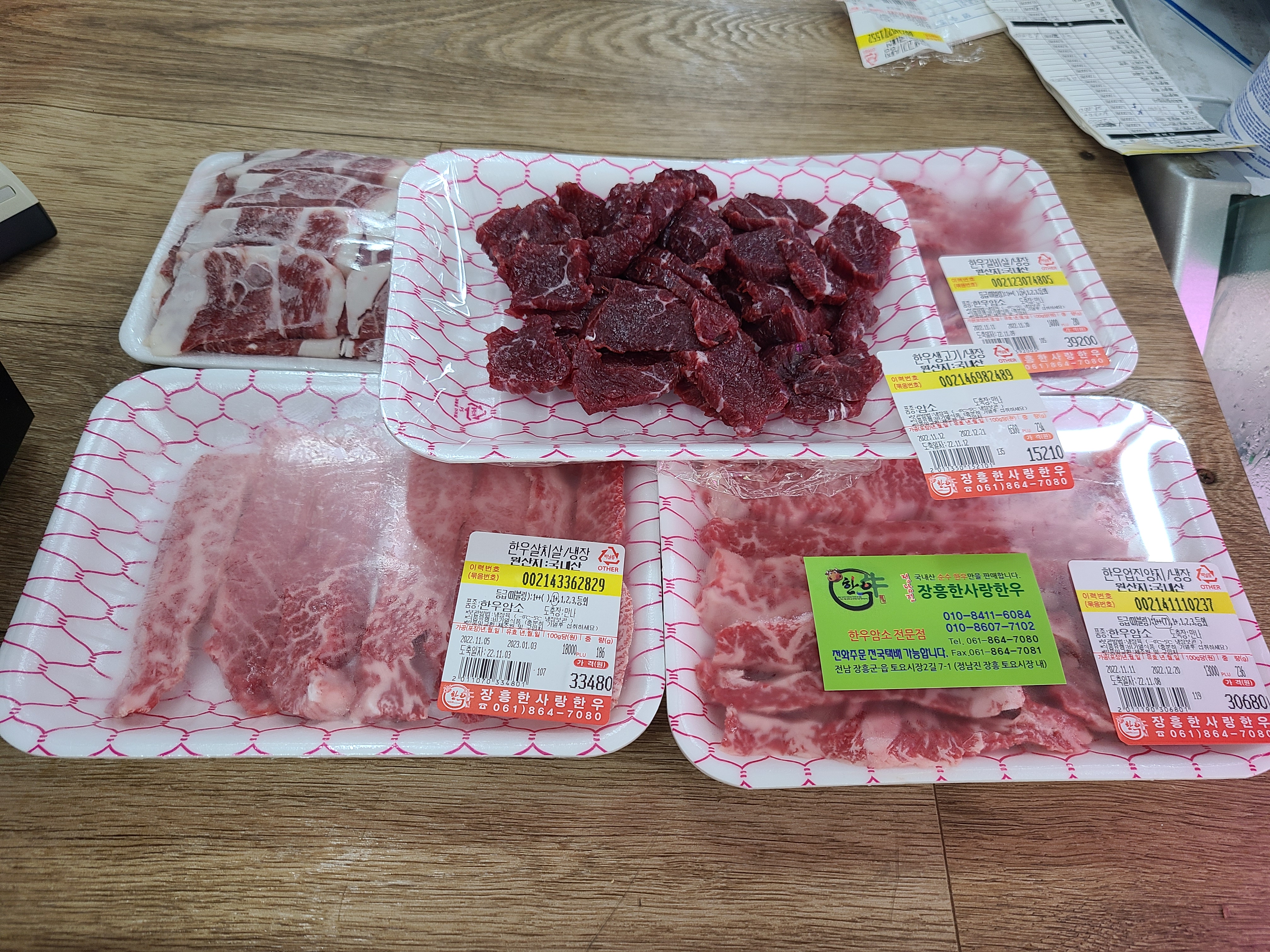 맛있는 소고기를 구입하기 위해서, 현지인에게 장흥 한사랑 한우정육점을 소개받았다. 장흥 한사랑 한우정육점에서 소고기를 구입해서 매번 가는 '끄니 걱정'으로 가서 소고기 삼합을 먹었다.