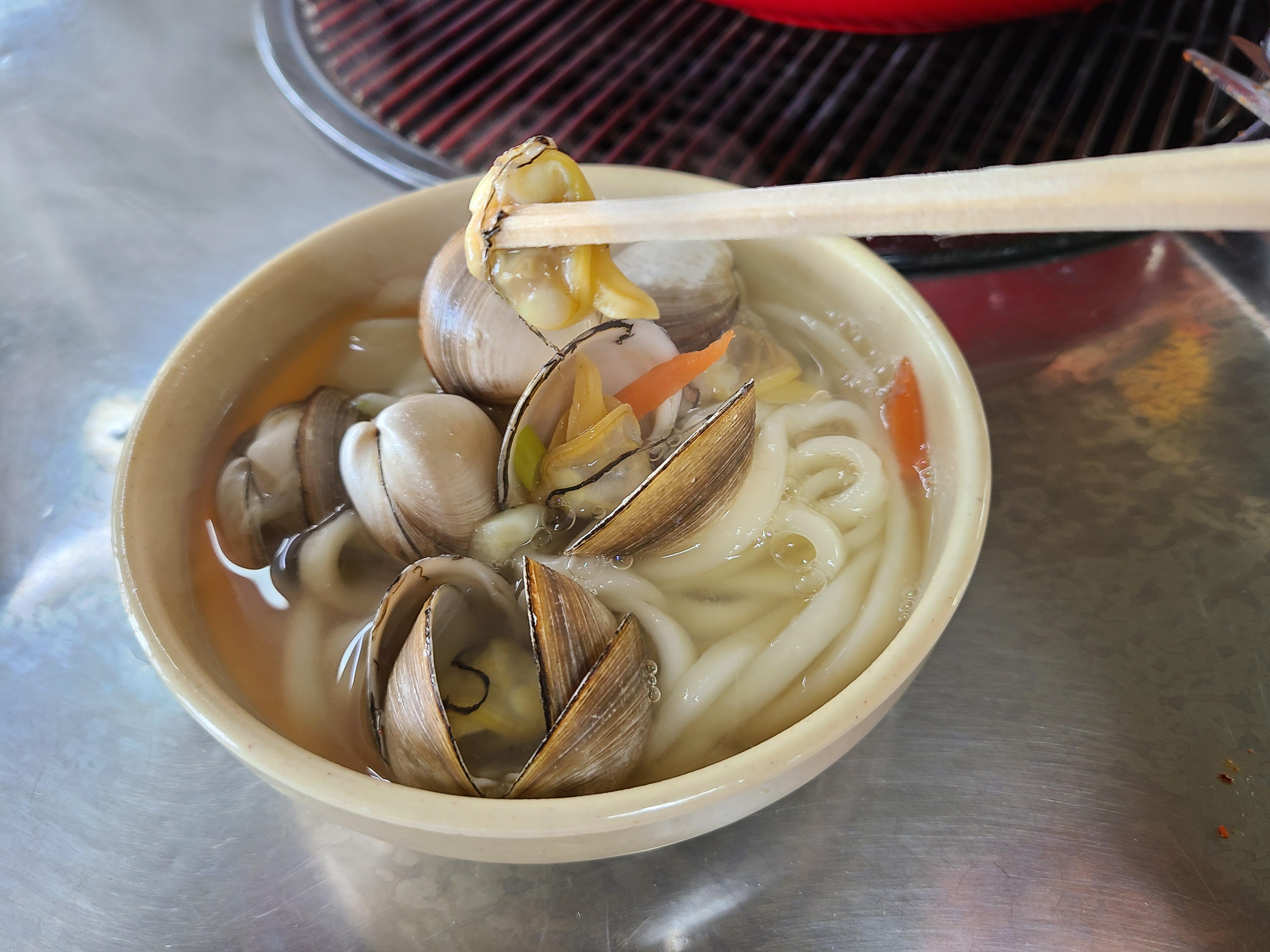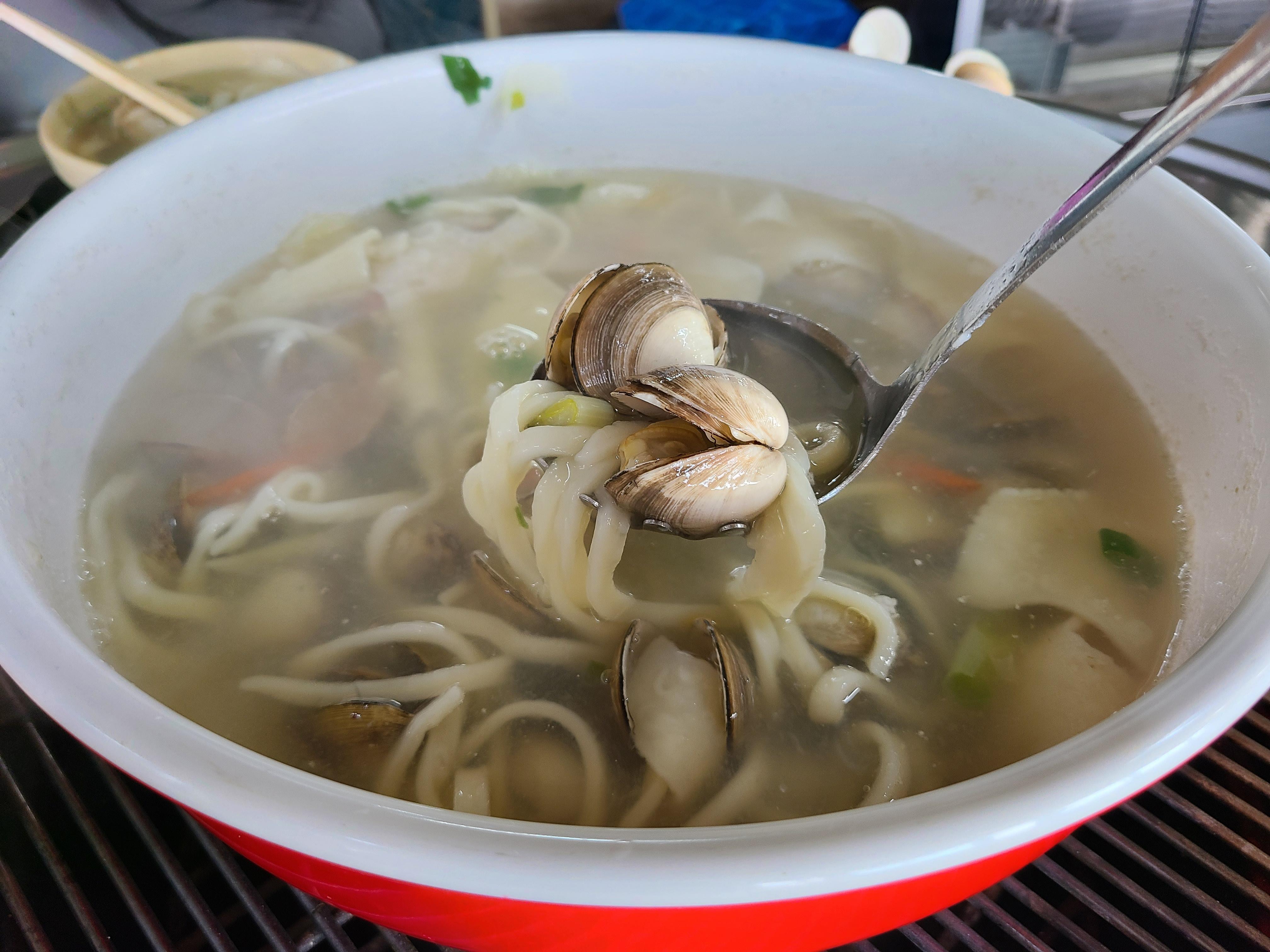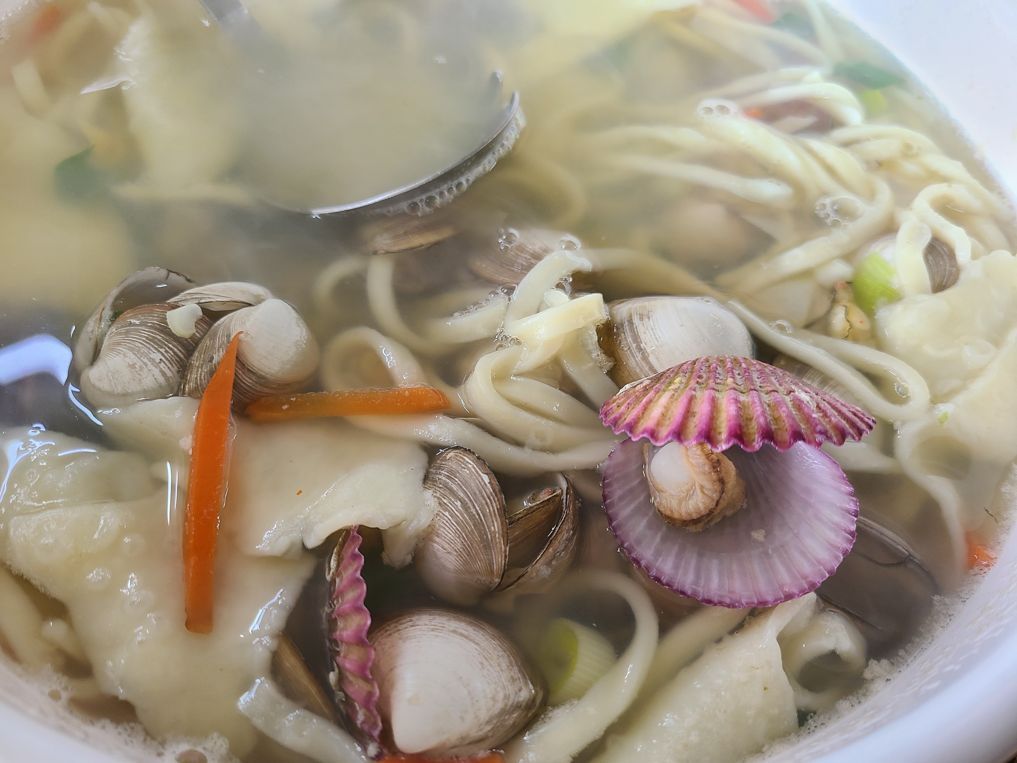 서둘러 면을 담고 국물을 퍼올리는데 동죽과 가리비가 푸짐하게 따라 오른다.