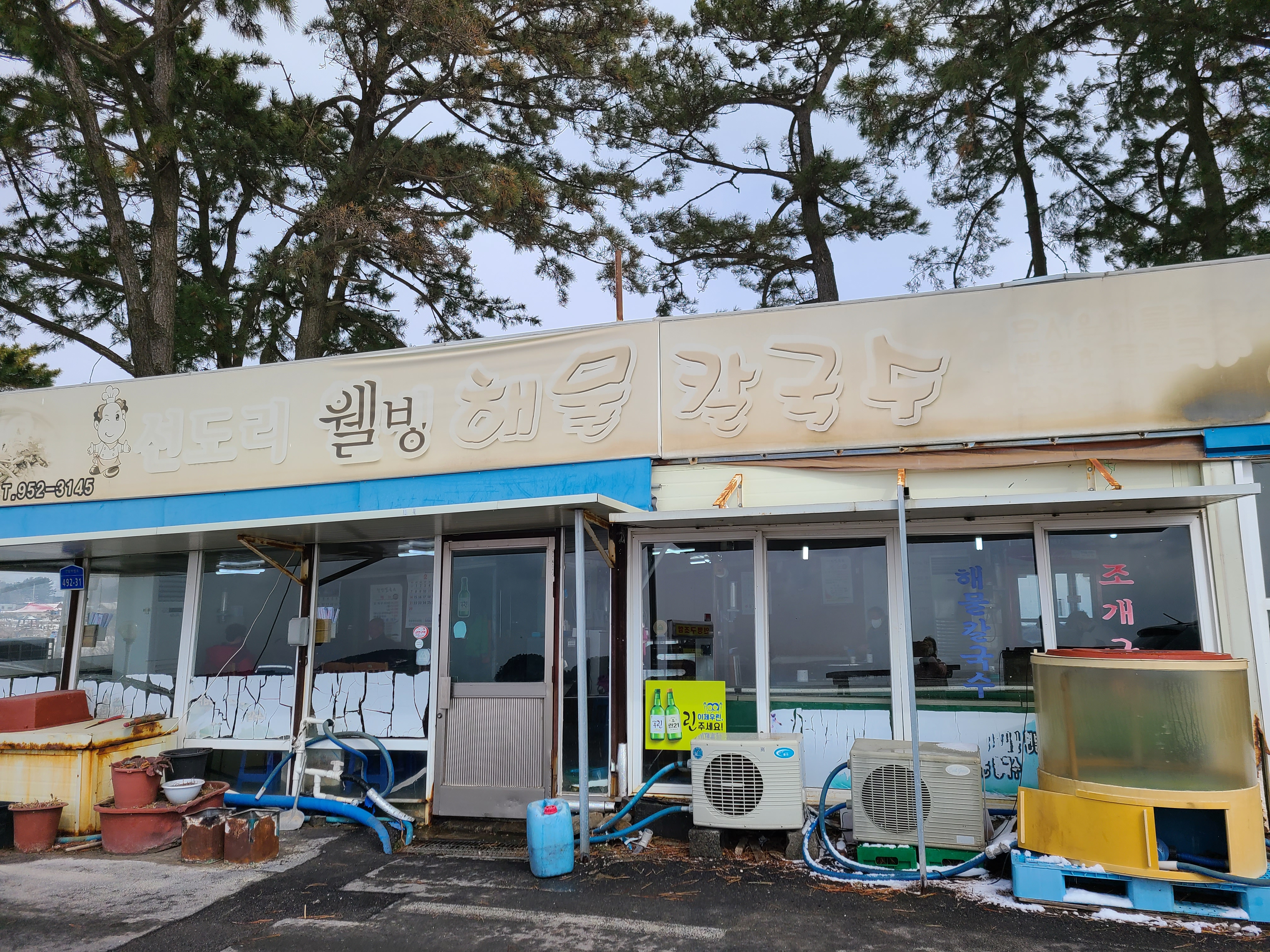 선도리 웰빙 해물칼국수집의 겉모습은 허름하다. 밖에 날씨가 너무 추워 서둘러 가게 안으로 들어갔다.