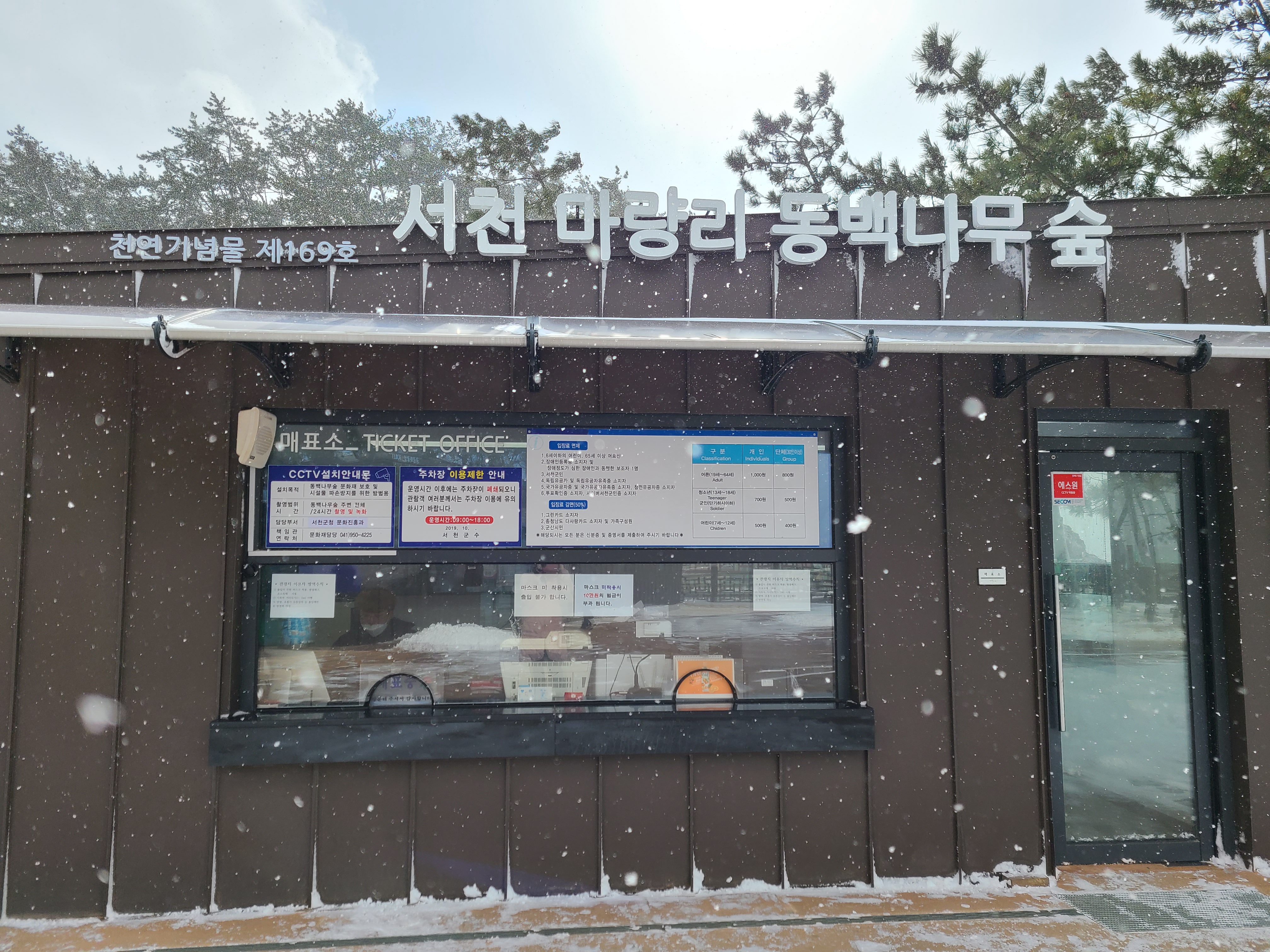 성인 입장료가 1인 1,000원이다. 우리는 입장료를 내고 마량리 동백나무 숲으로 들어갔다. 7년 전 봄에 친구들과 주꾸미 축제에 왔다가 이곳에서 주꾸미를 먹고 동백꽃 구경을 했었다. 그때는 넓은 공터에 주꾸미 축제로 많은 사람들이 북적였는데 꽃이 피기에는 이른 시기여서 사람이 거의 없다. 주변에 서천화력발전소가 있어 예전의 분위기를 느낄 수가 없었다.