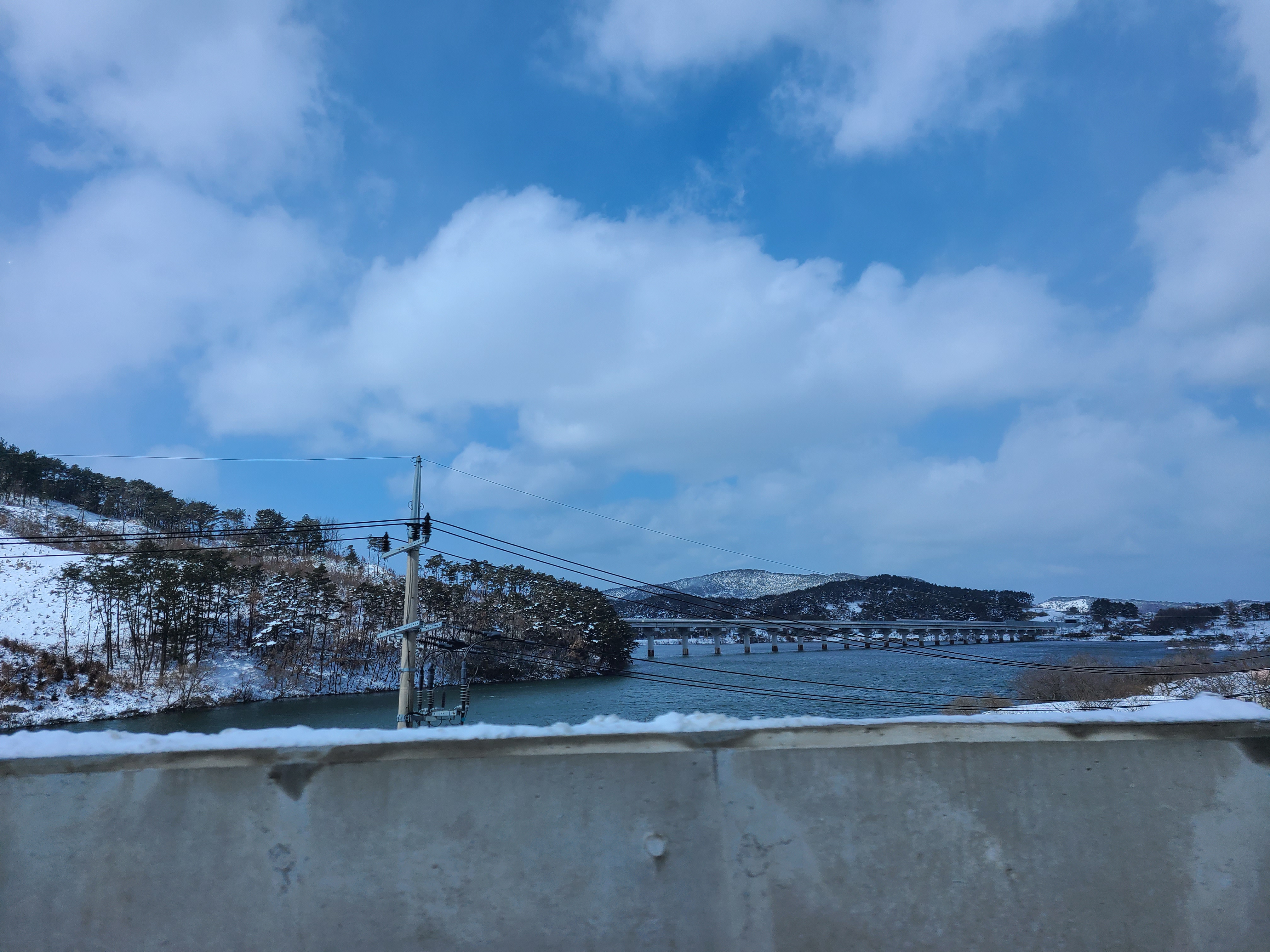 겨울은 한창인데 봄맞이를 하고 싶어 길을 나섰다. 출발하기 전부터 눈이 내렸지만 서천에 있는 희리산 해송 자연휴양림을 한 달 전에 예약을 해놓았기에 망설일 수가 없다. 오랜만에 길을 나서니 그 사실 자체로 만으로도 기분이 좋았다. 창밖으로 보이는 풍경이 시원스레 멋이 있다.