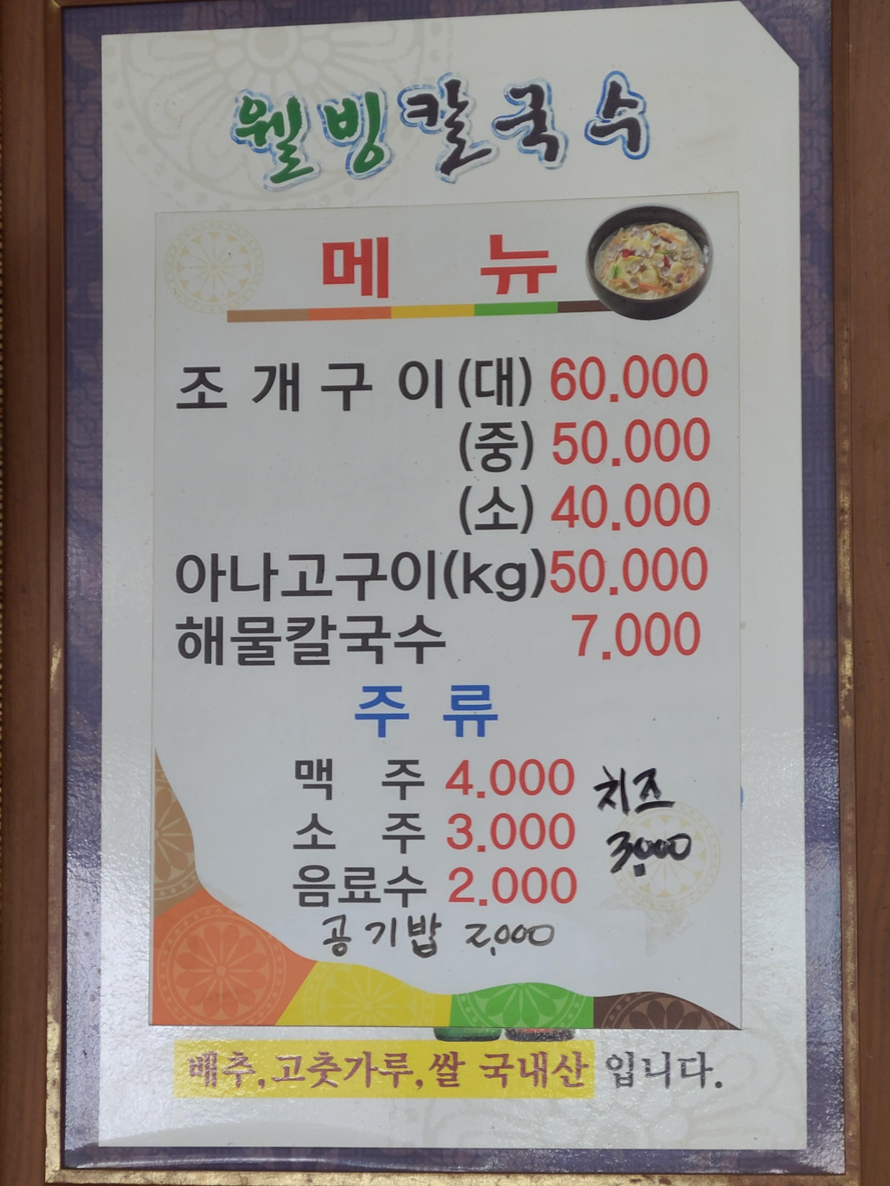 처음에 2인분이 왜 이리 많이 나왔느냐 해놓고 우리는 국물만 조금 남기고 칼국수 면과 수제비 그리고 동죽까지 다 건져먹었다. 계산하면서 "사장님 너무 맛있게 잘 먹었습니다."하고 인사를 했다. 사장님은 남김없이 다 먹어 너무 기분 좋다며 잘 먹어 이쁘다고 하셨다.