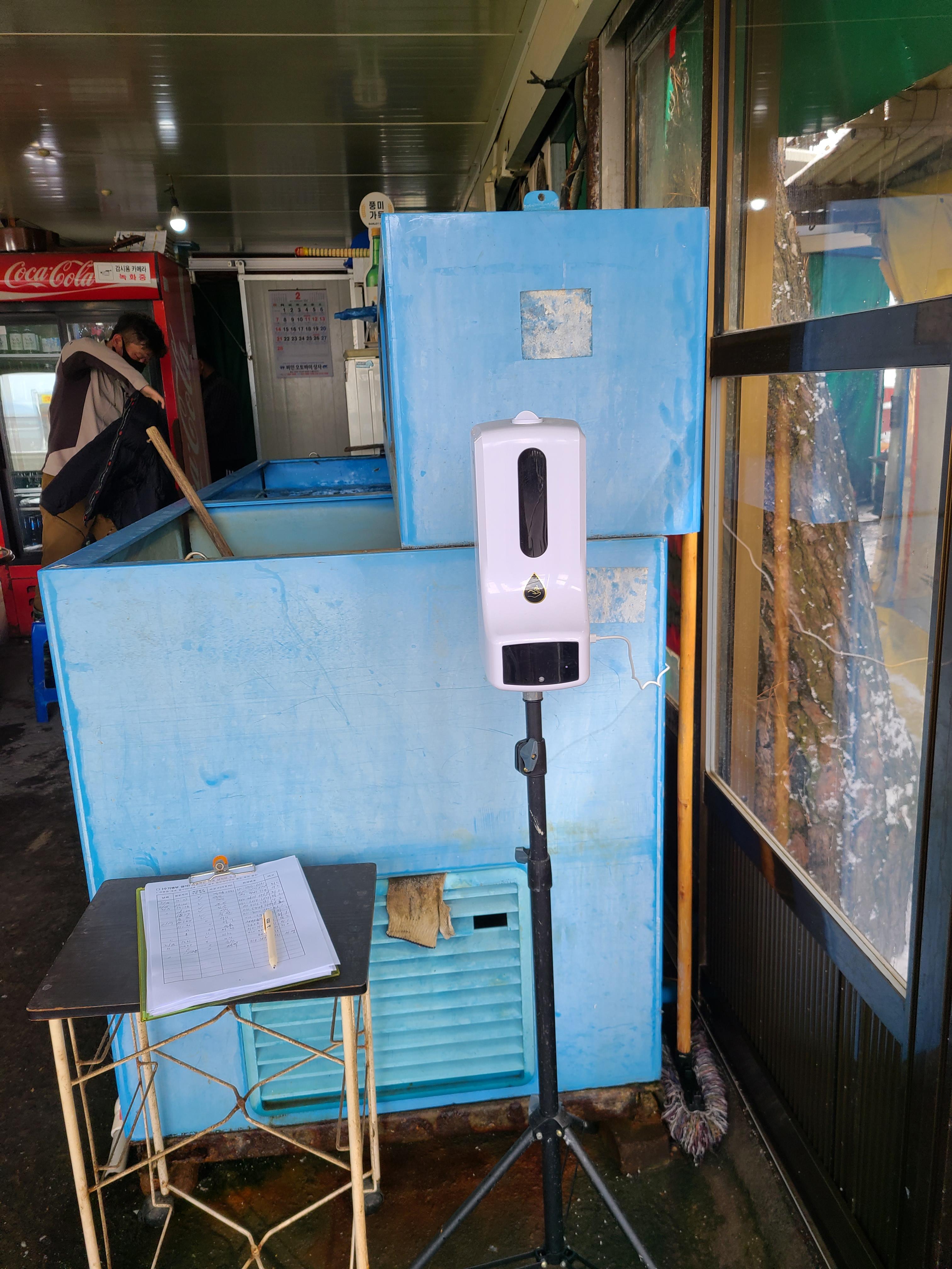 가게 입구로 들어가니 출입 명부와 손소독기가 준비되어있다.