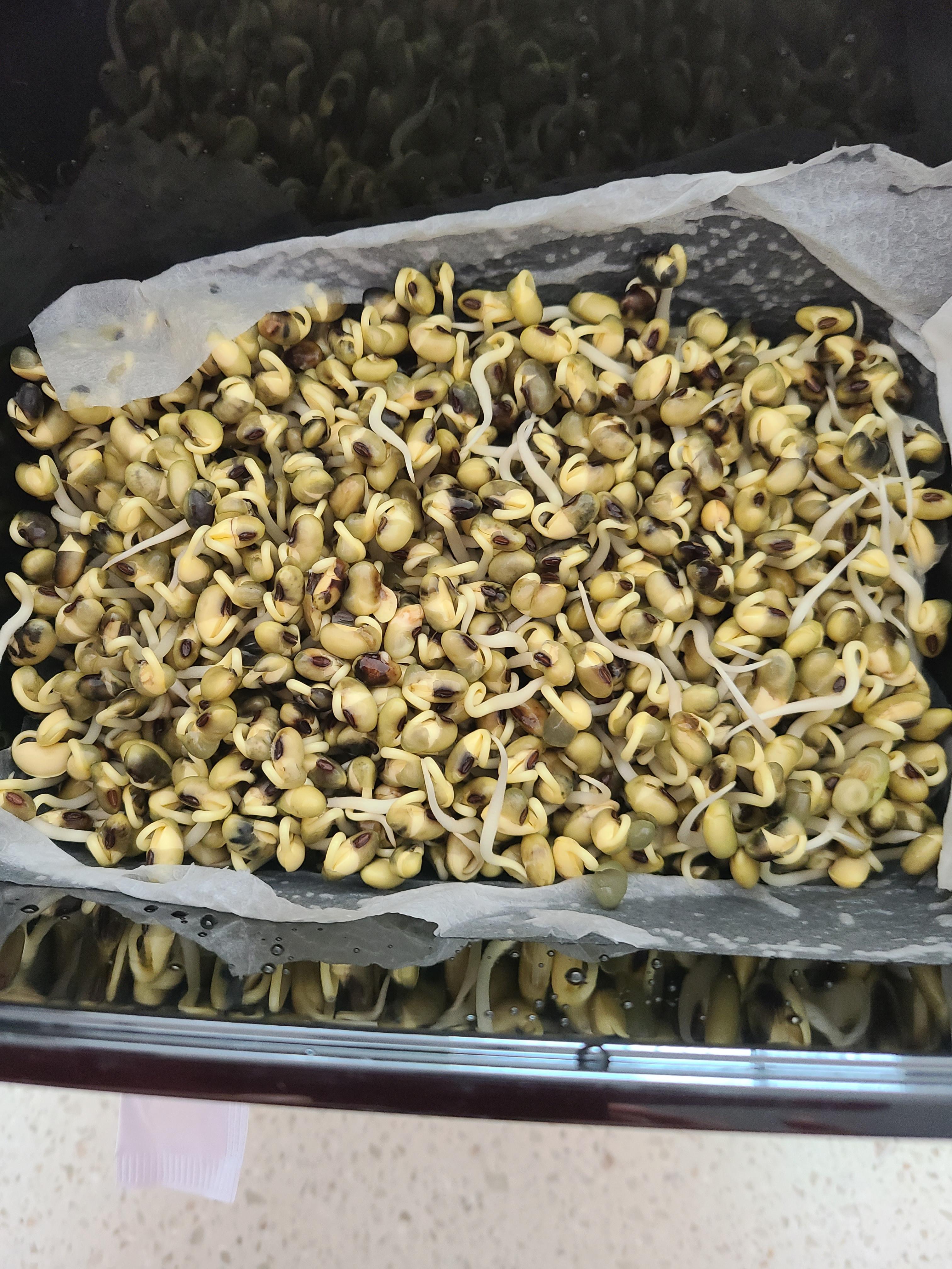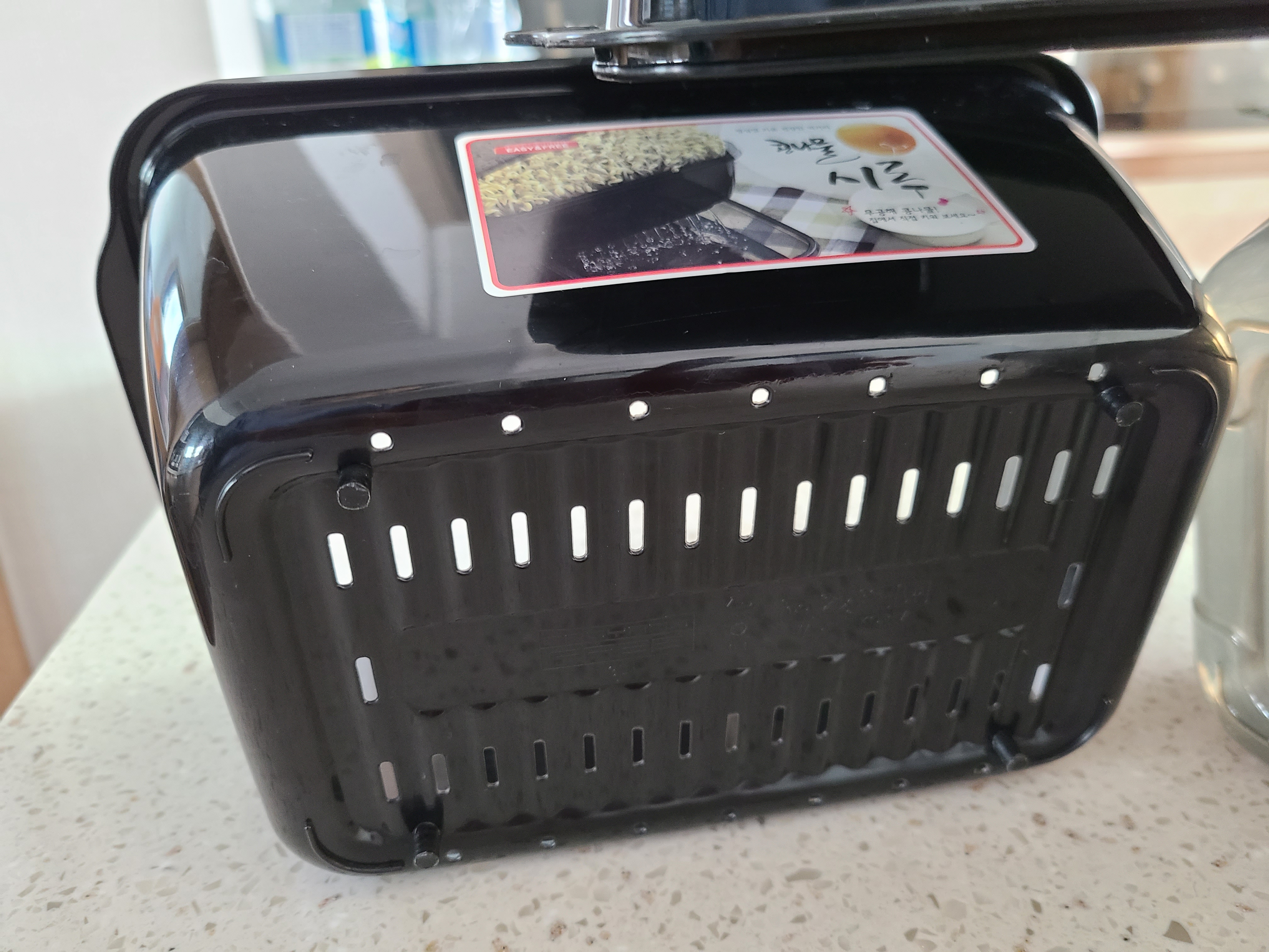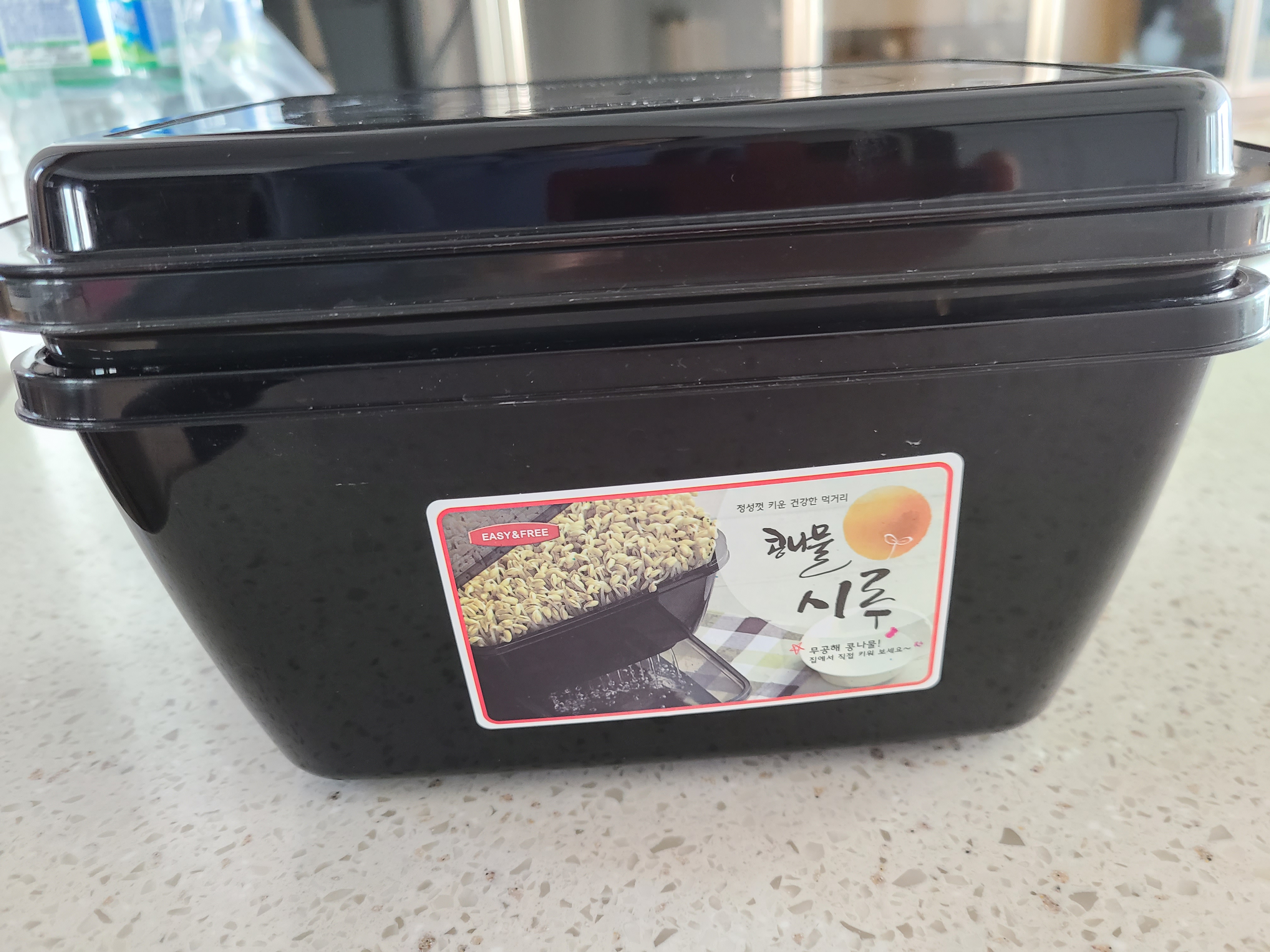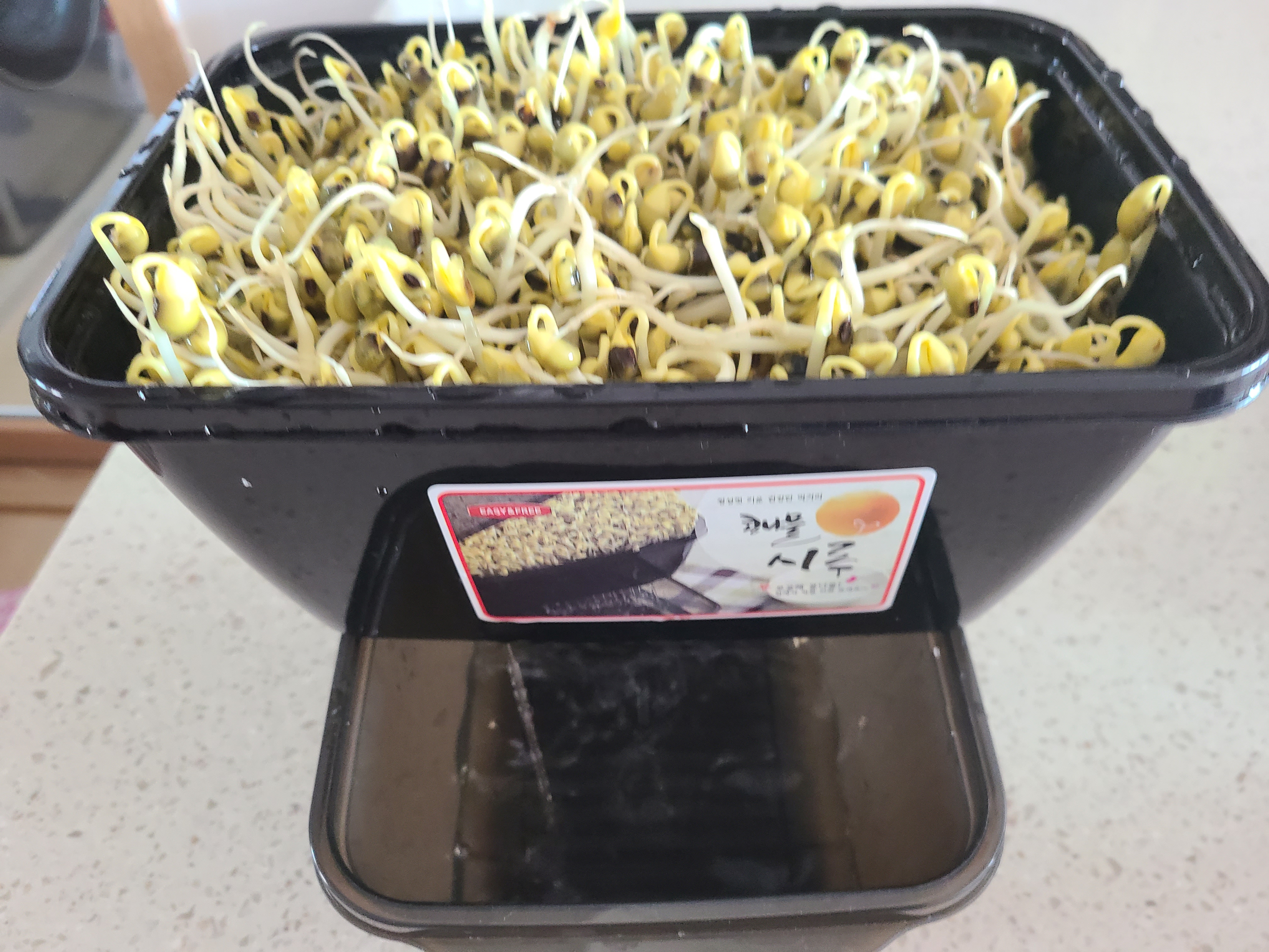 예전에는 어른들이 콩을 씻어 그릇에 담고 어두운 천으로 덮은 후 싹틀 때까지는 따뜻한 곳에 두었던 기억이 나는데 요즘은 실내가 따뜻하니 그럴 필요 없고 통이 검은색이니 어두운 천도 필요 없고 싹틀 때까지 기다리기만 하면 되었다.
